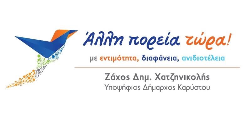 Με ανάρτηση του στα μέσα κοινωνικής δικτύωσης ο υποψήφιος δήμαρχος Καρύστου κ. Ζάχος Χατζηνικολής ανακοίνωσε το όνομα του συνδυασμού του, εξηγώντας και το λόγο που επιλέχθηκε αυτό το όνομα αναφέροντας: «Μετά από καθημερινές επαφές και συζητήσεις απ’ άκρη σ’ άκρη του δήμου μας, αποτυπώσαμε στο όνομα του συνδυασμού, λέξη προς λέξη,το ζητούμενο των συνδημοτών μας και αυτό είναι: