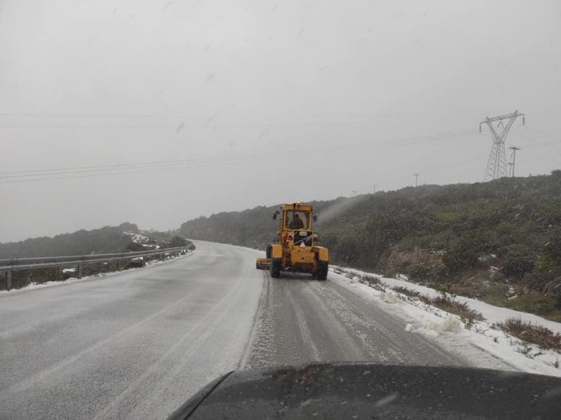 Απο νωρίς το πρωί τα εκχιονιστικά μηχανήματα βρίσκονταν σε επιφυλακή προκειμένου να παραμείνει ανοικτή η επαρχιακή οδός Καρύστου Χαλκίδας λόγω της χιονόπτωσης που επικρατούσε στη περιοχή.