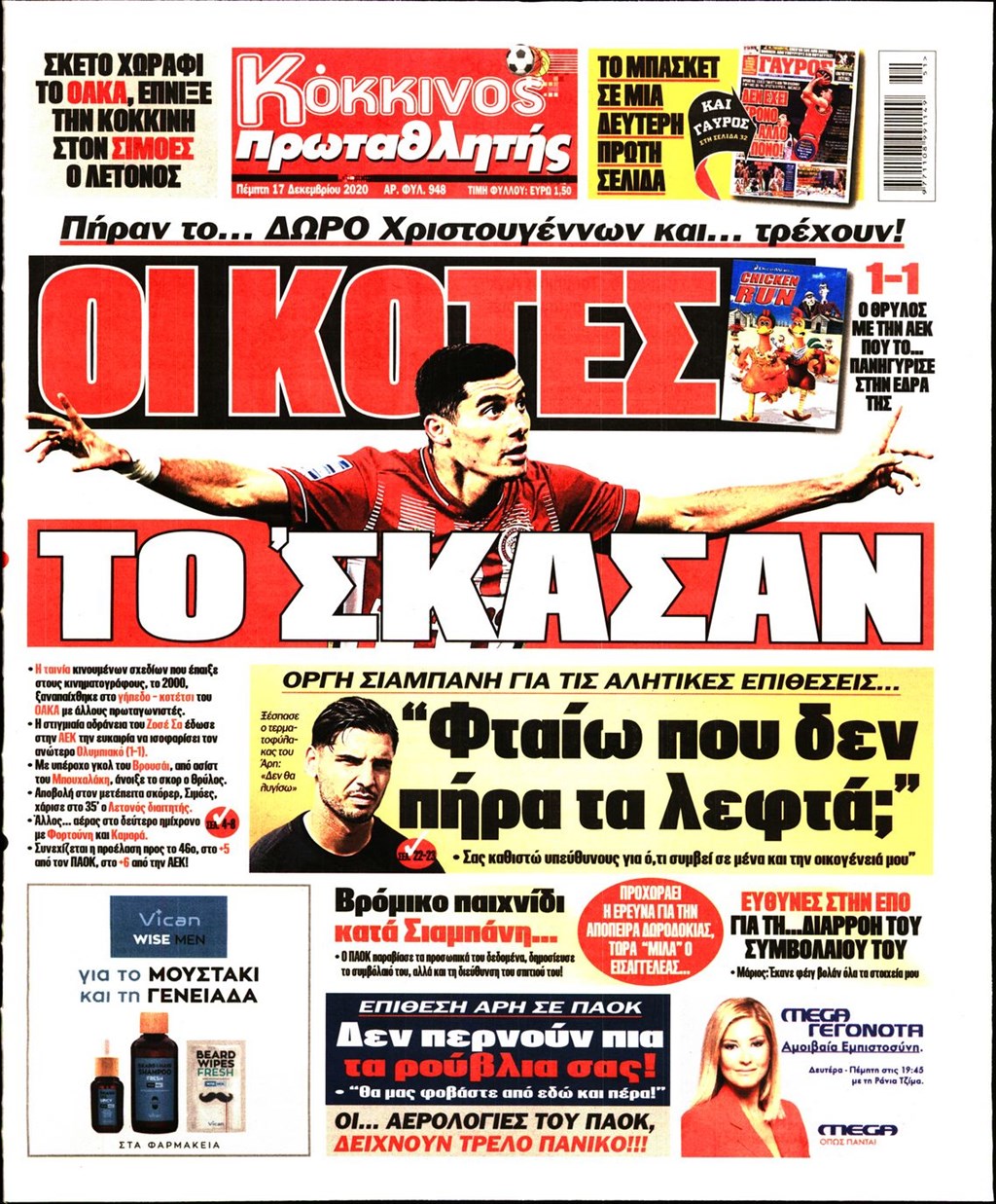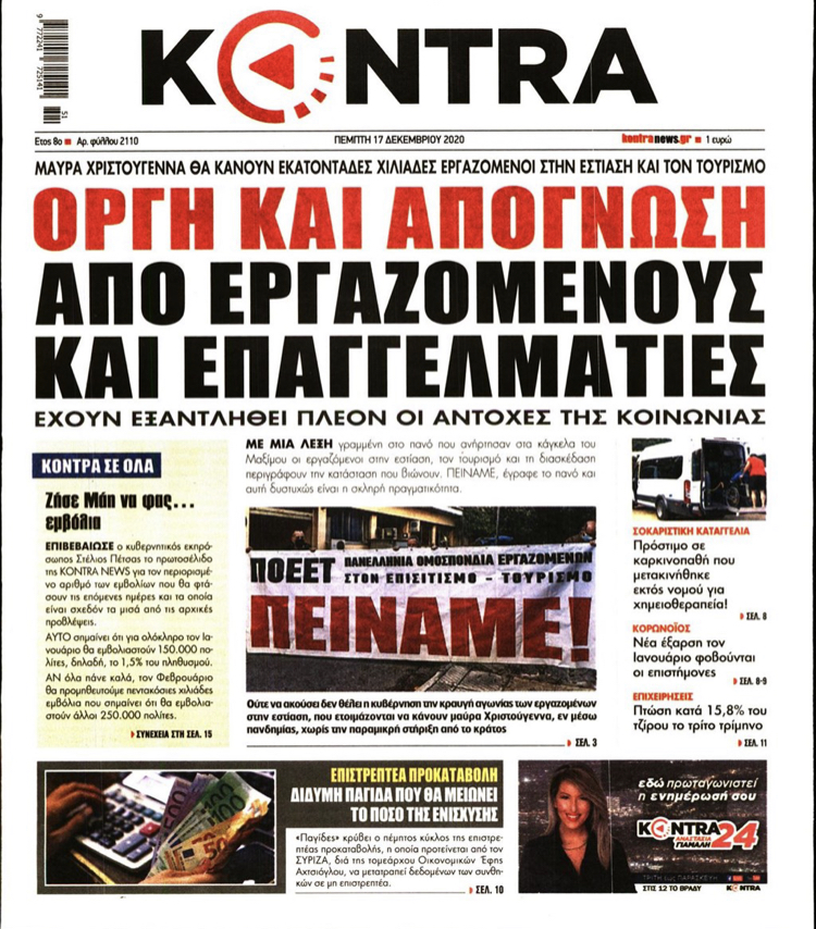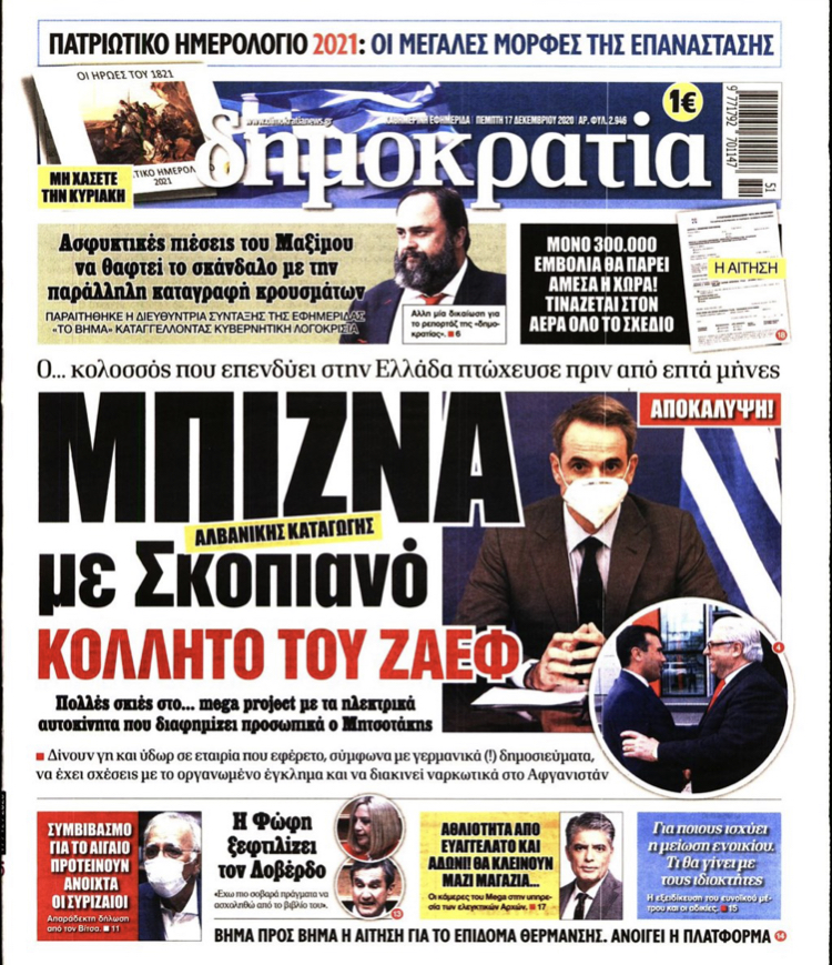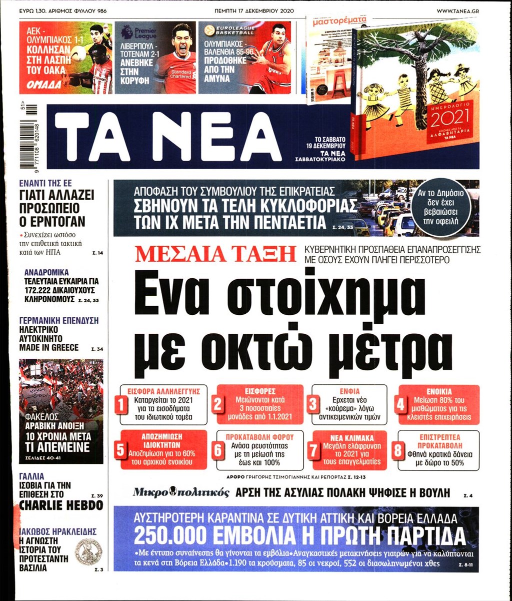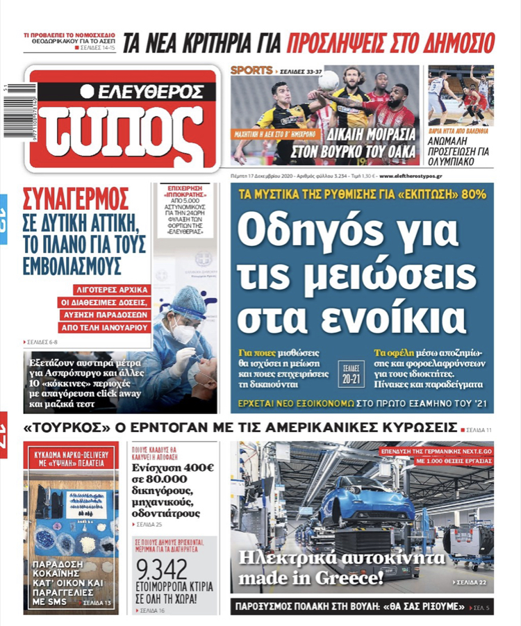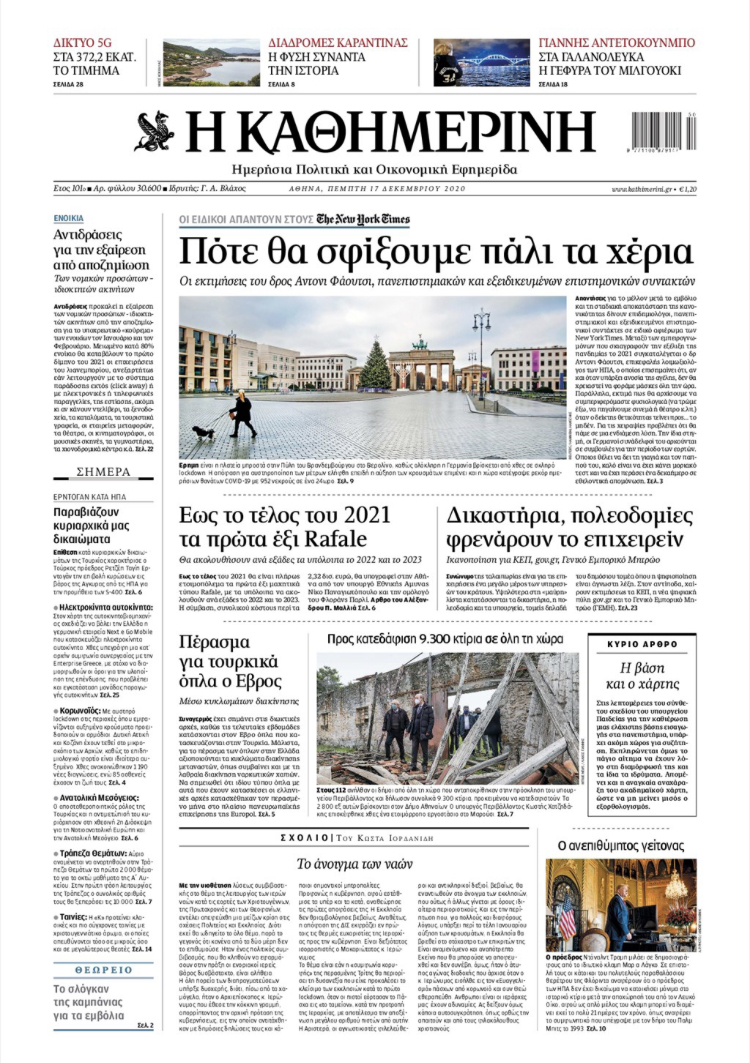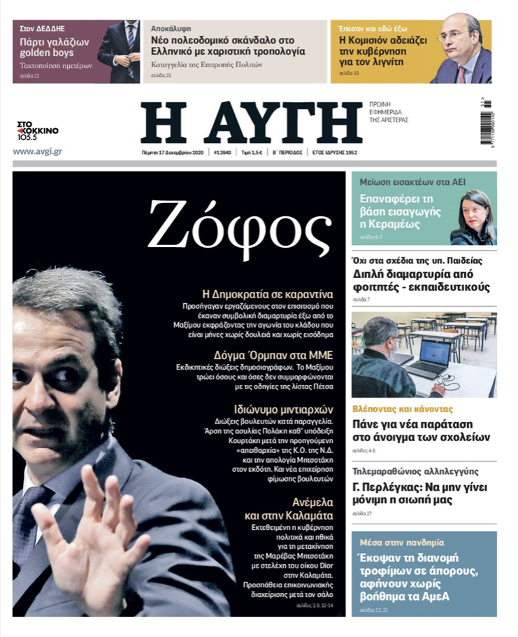 Διαβάστε τα πρωτοσέλιδα των εφημερίδων 17 Δεκεμβρίου