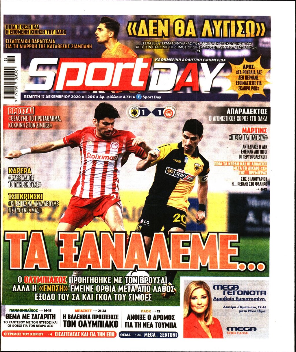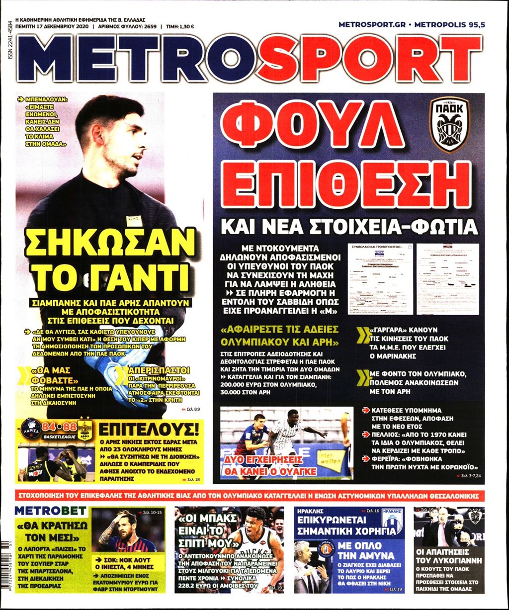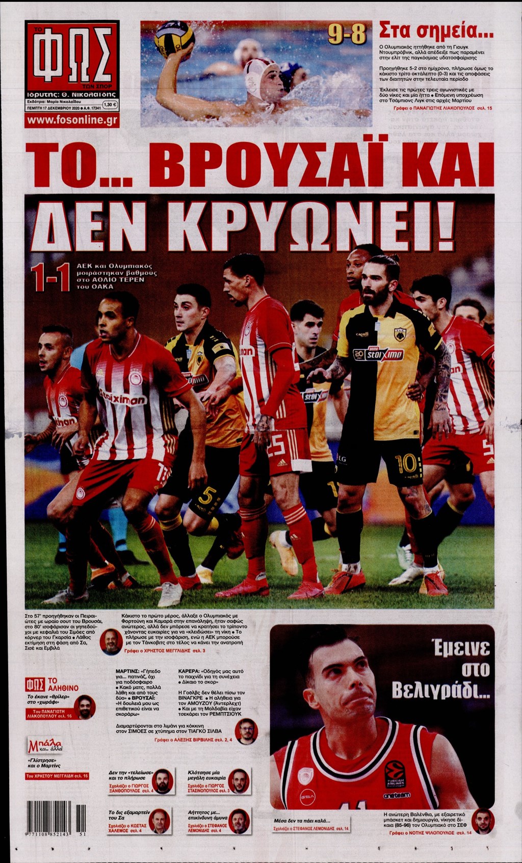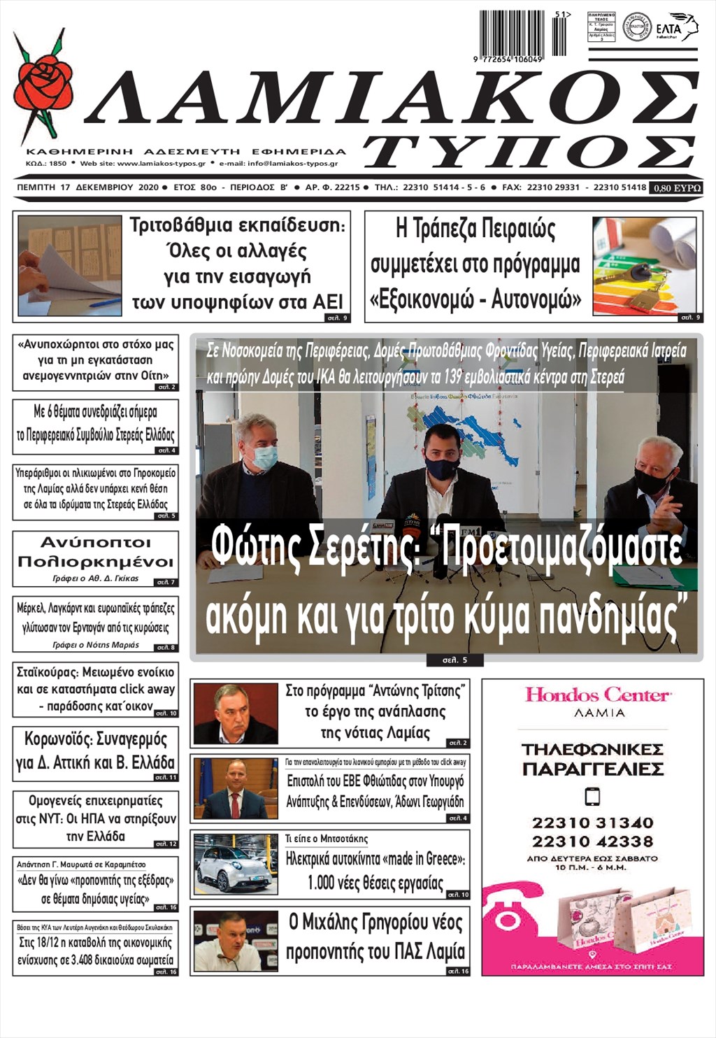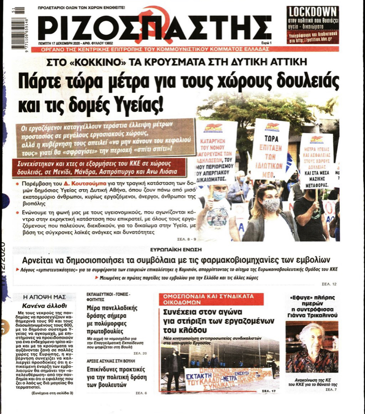 Διαβάστε τα πρωτοσέλιδα των εφημερίδων 17 Δεκεμβρίου