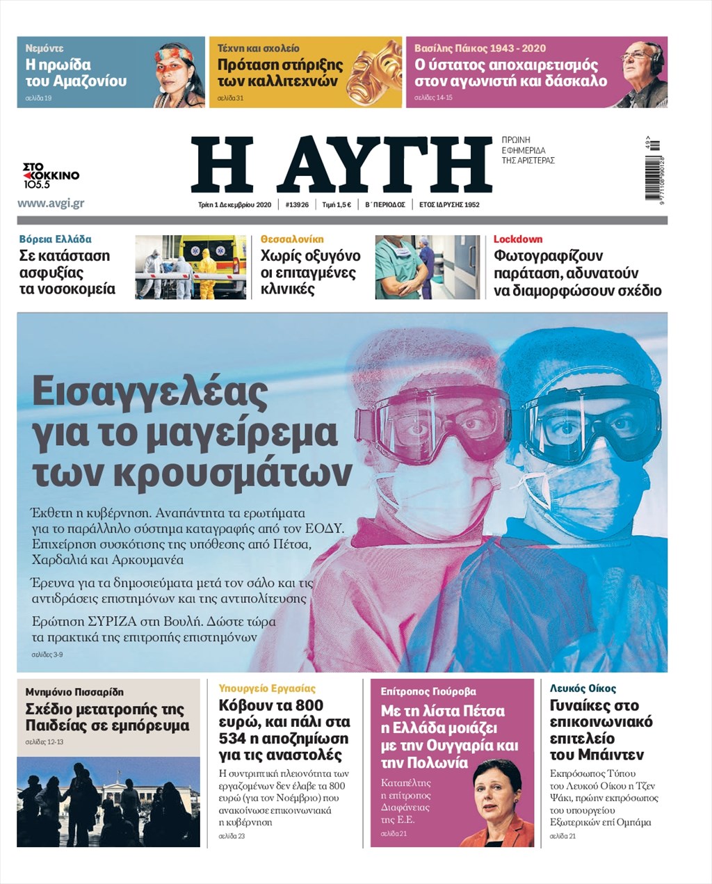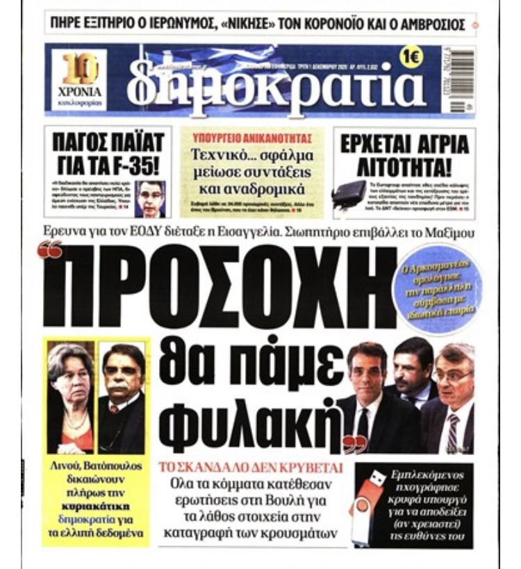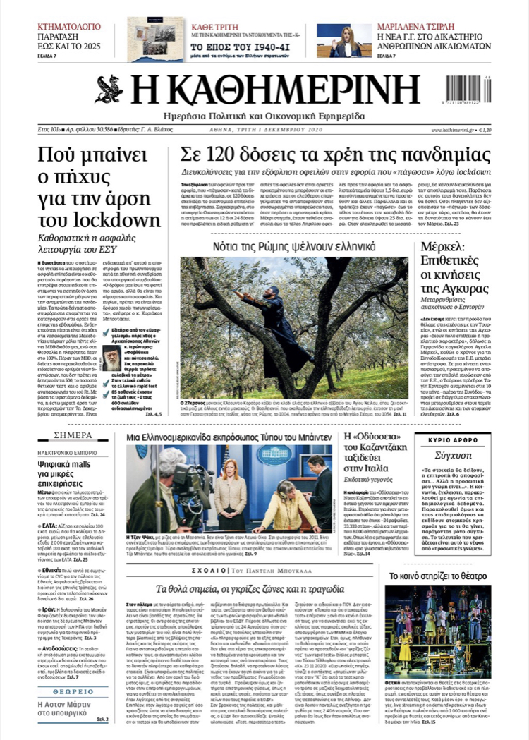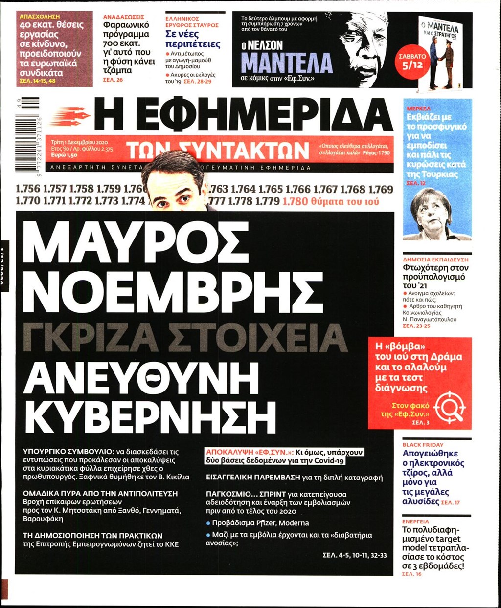 Διαβάστε τα πρωτοσέλιδα των εφημερίδων 1 Δεκεμβρίου