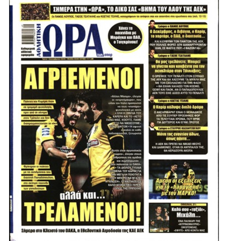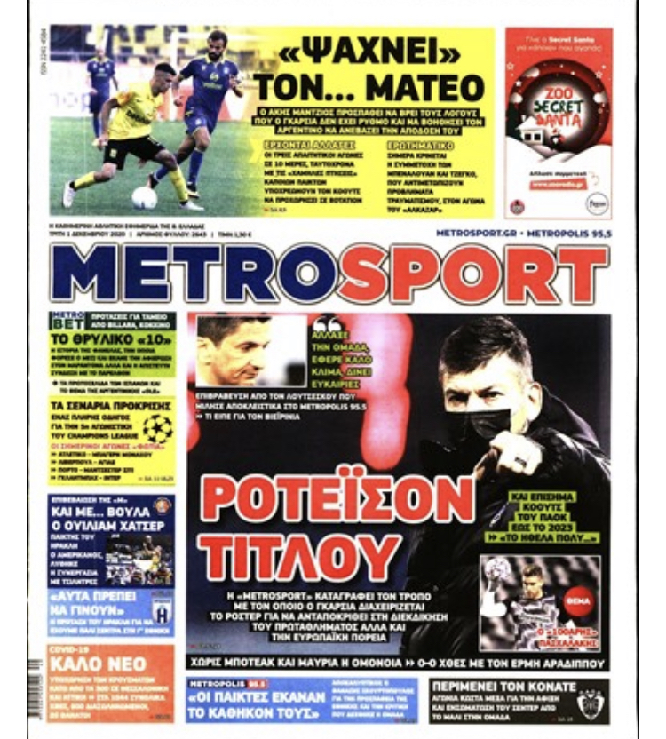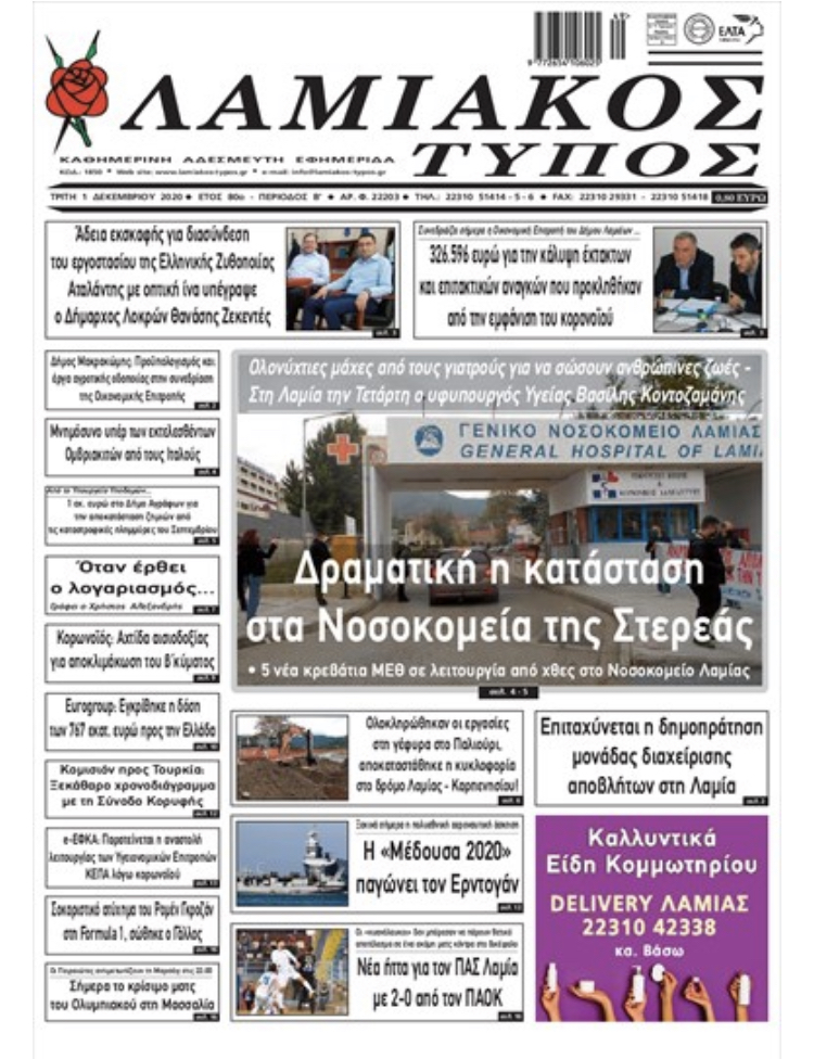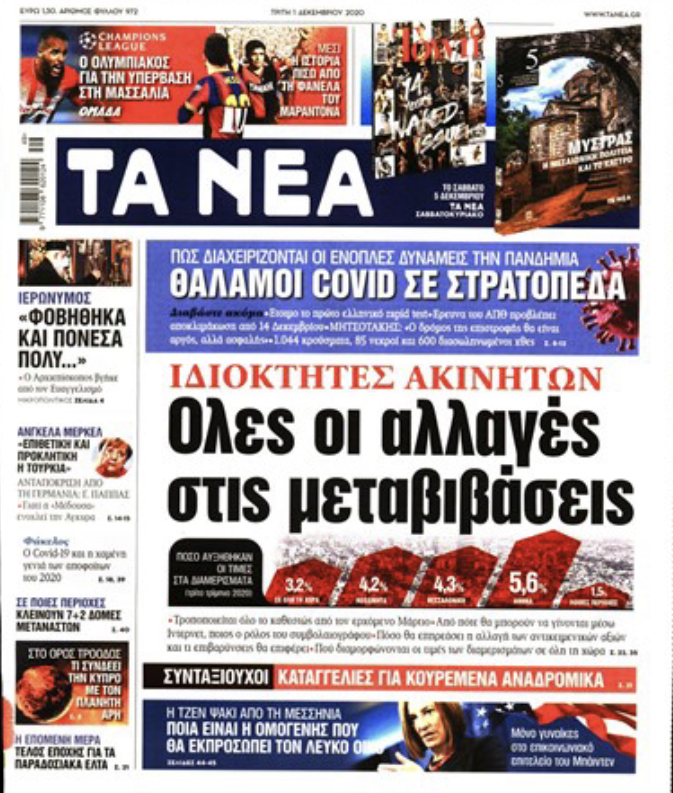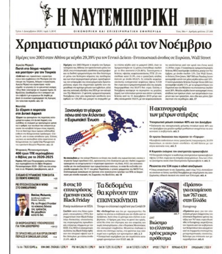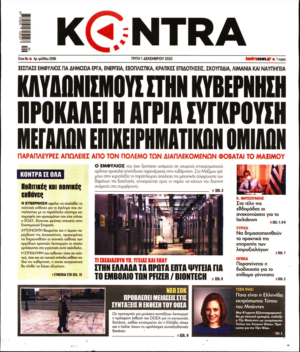 Διαβάστε τα πρωτοσέλιδα των εφημερίδων 1 Δεκεμβρίου