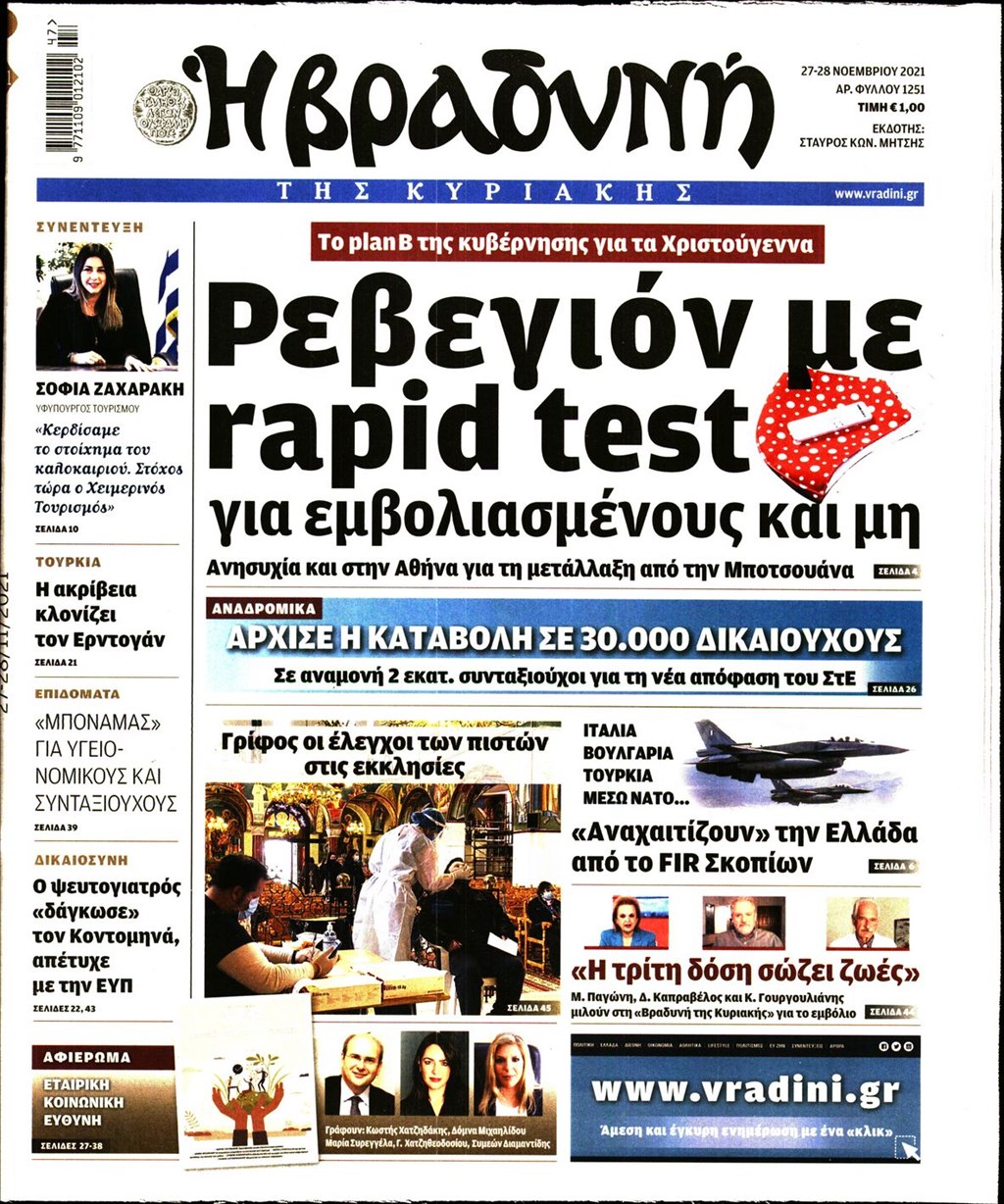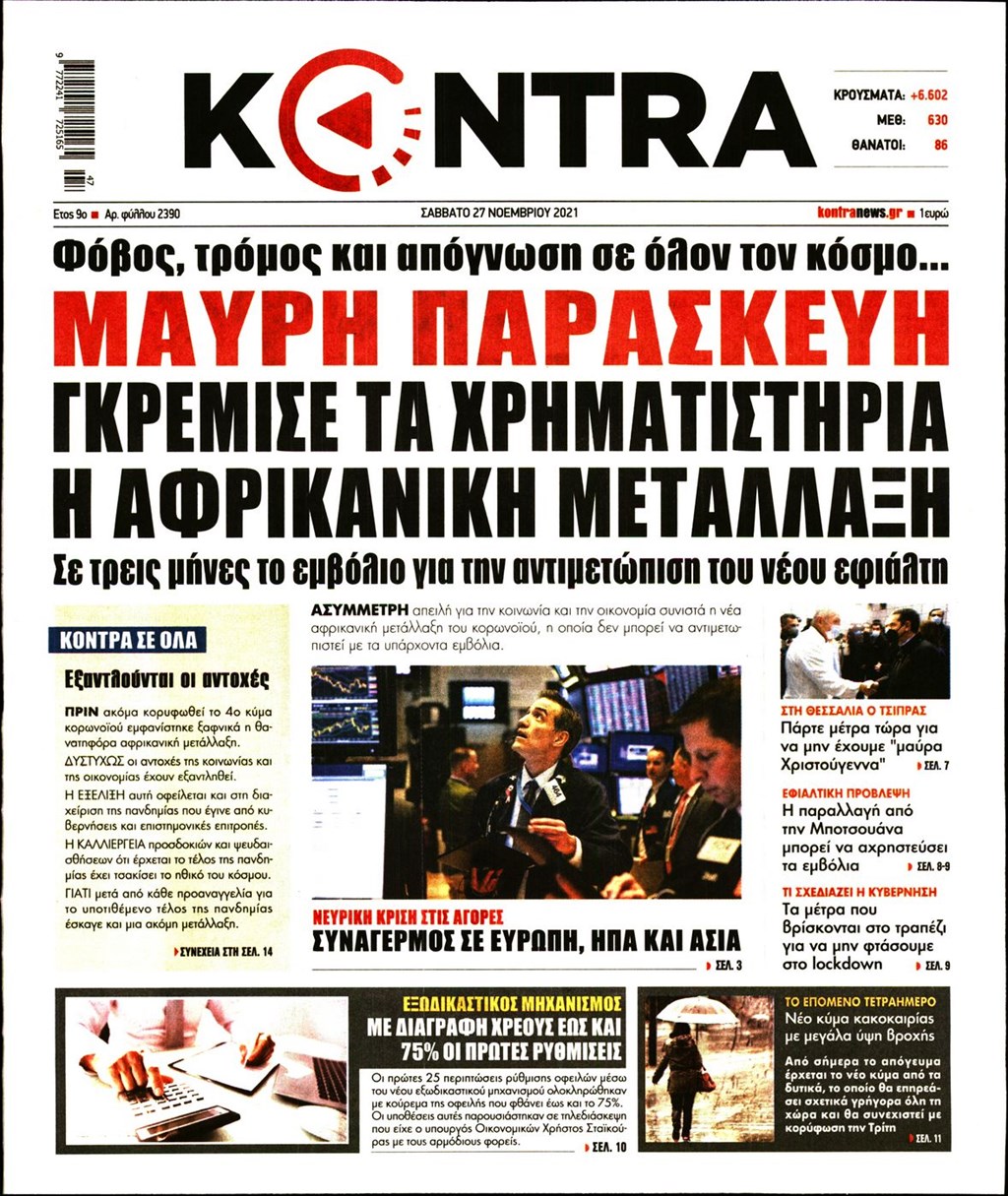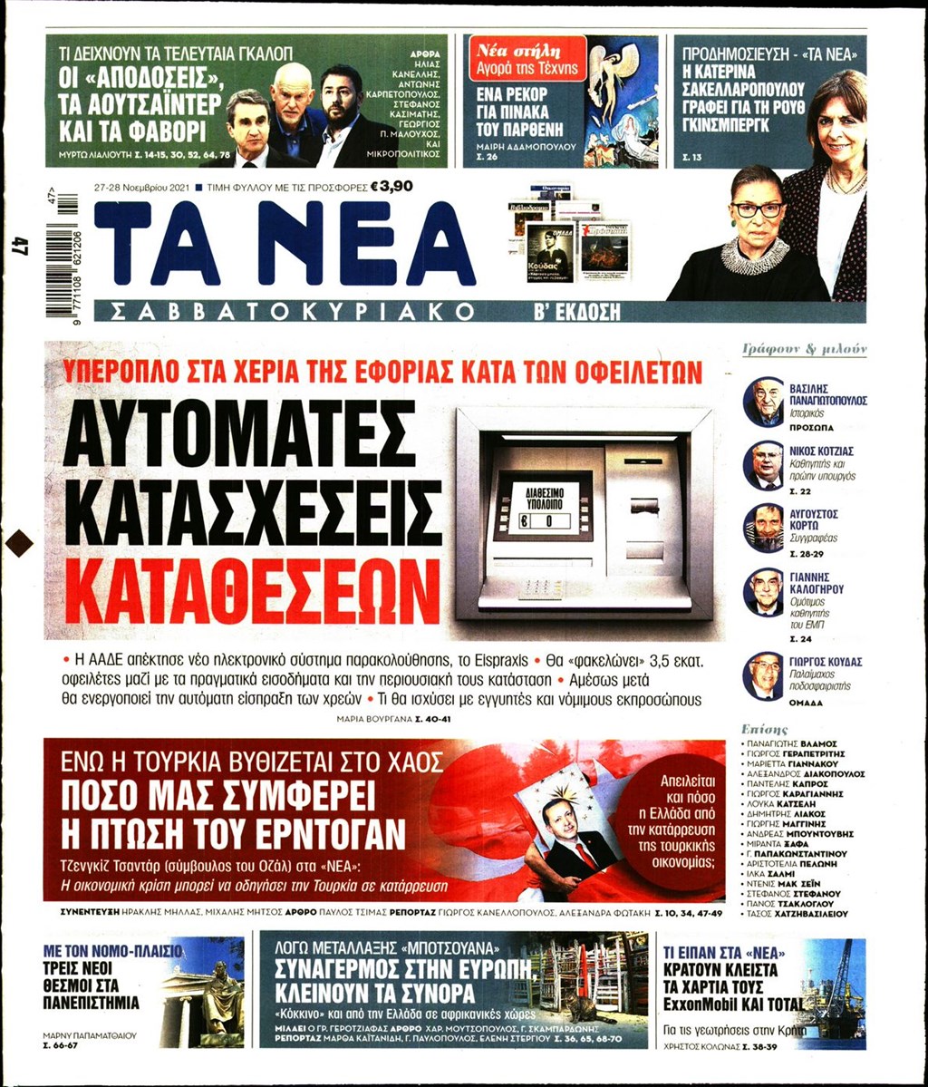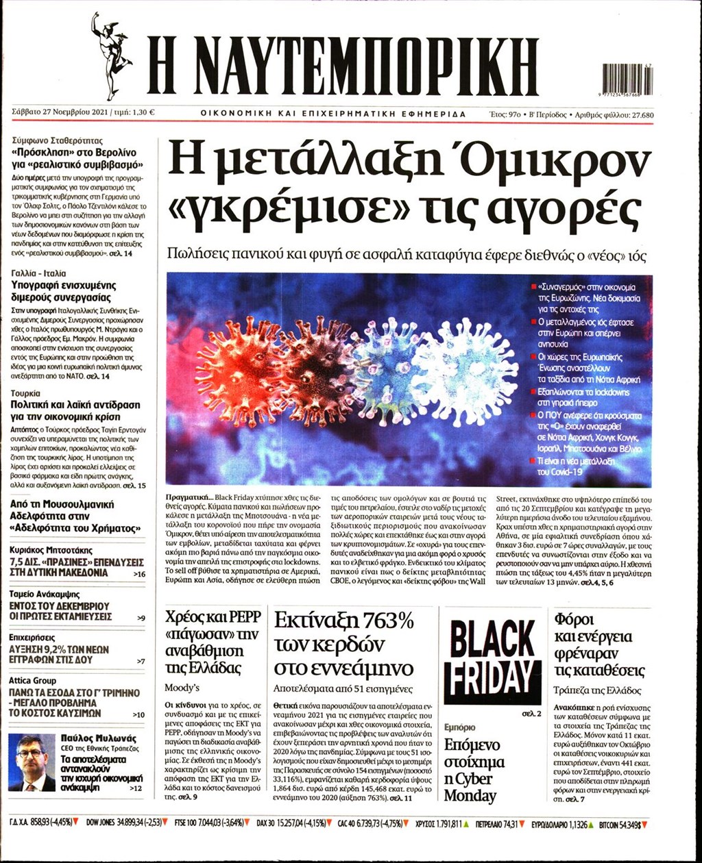 Διαβάστε τα πρωτοσέλιδα των εφημερίδων 27 Νοεμβρίου