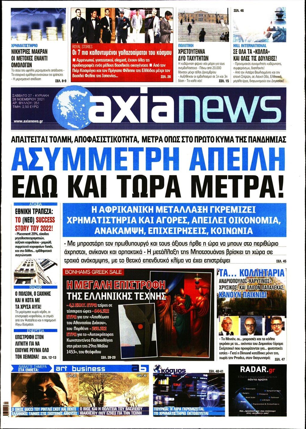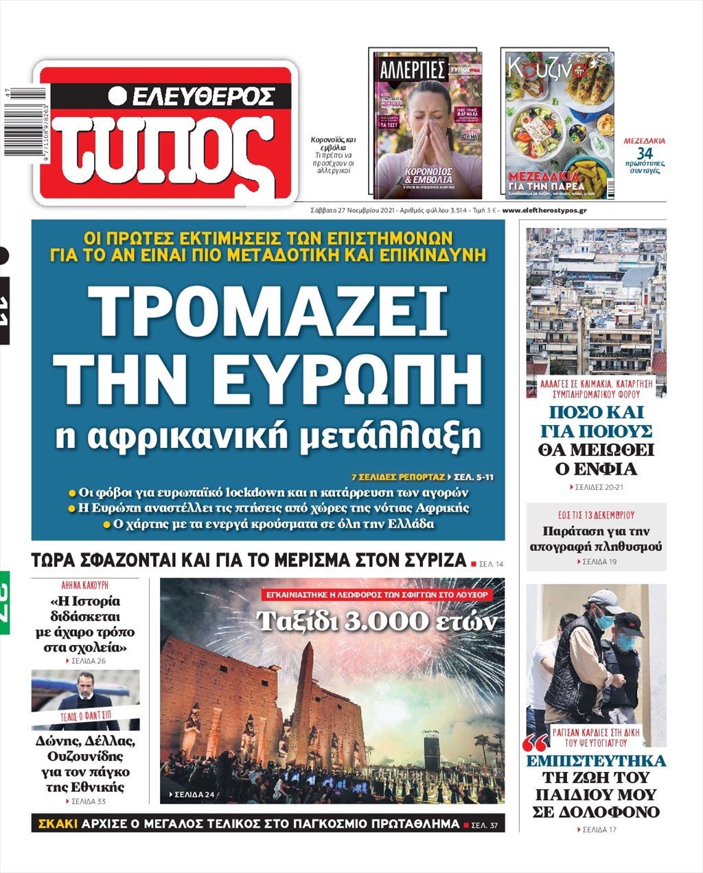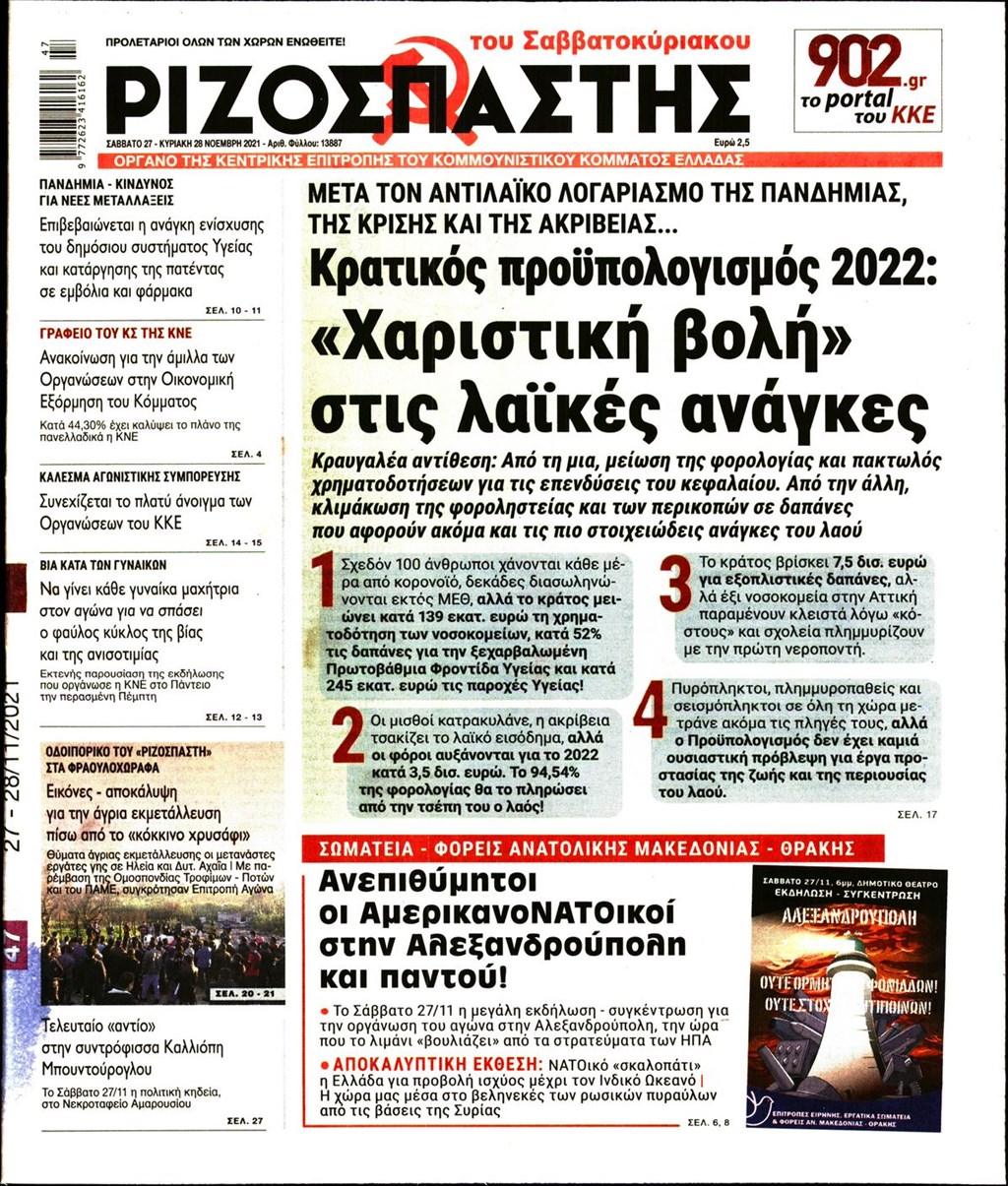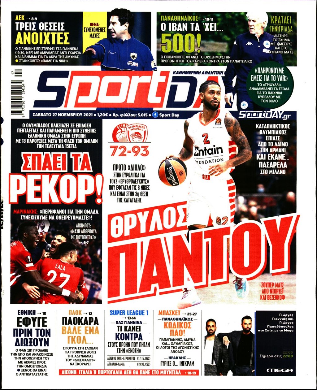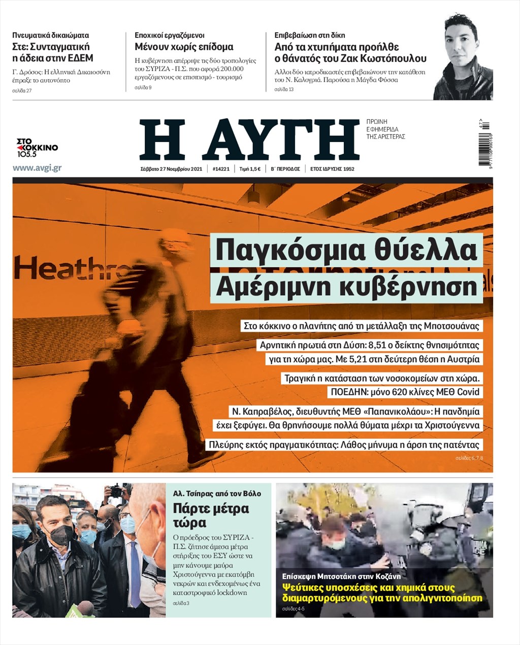 Διαβάστε τα πρωτοσέλιδα των εφημερίδων 27 Νοεμβρίου