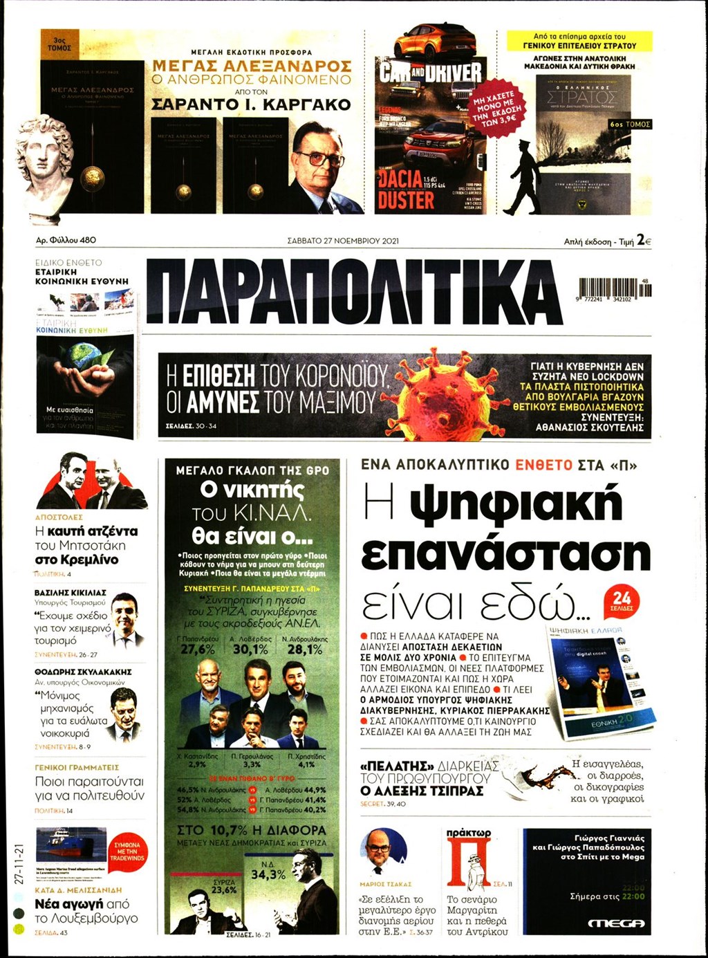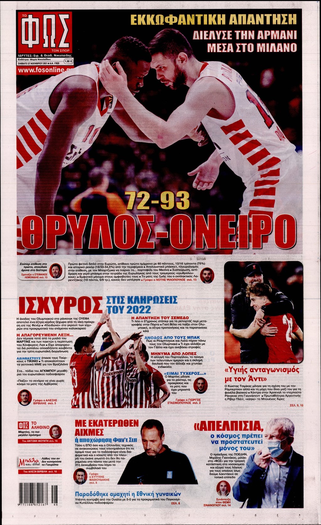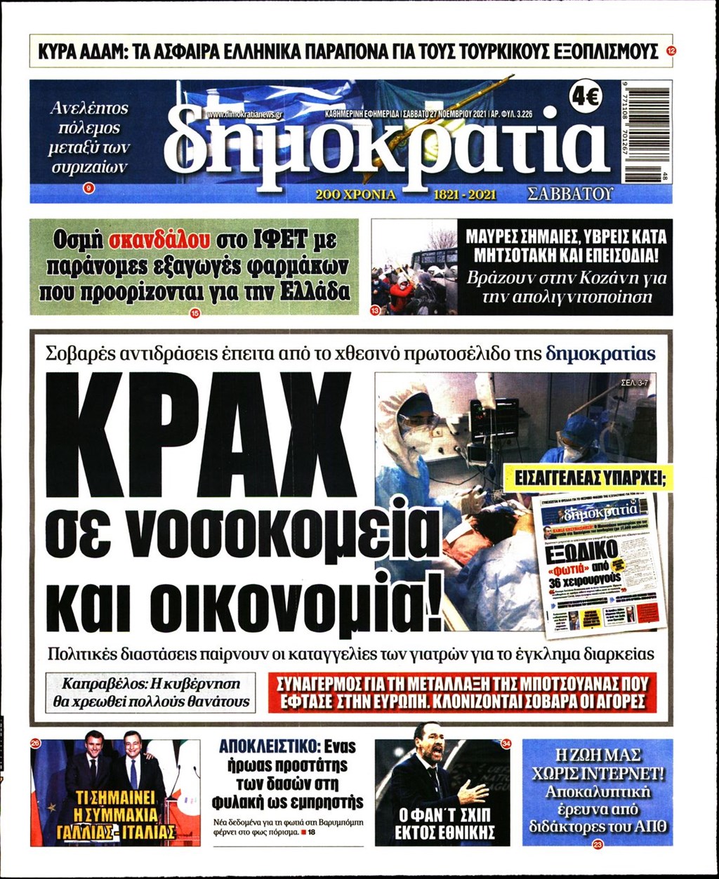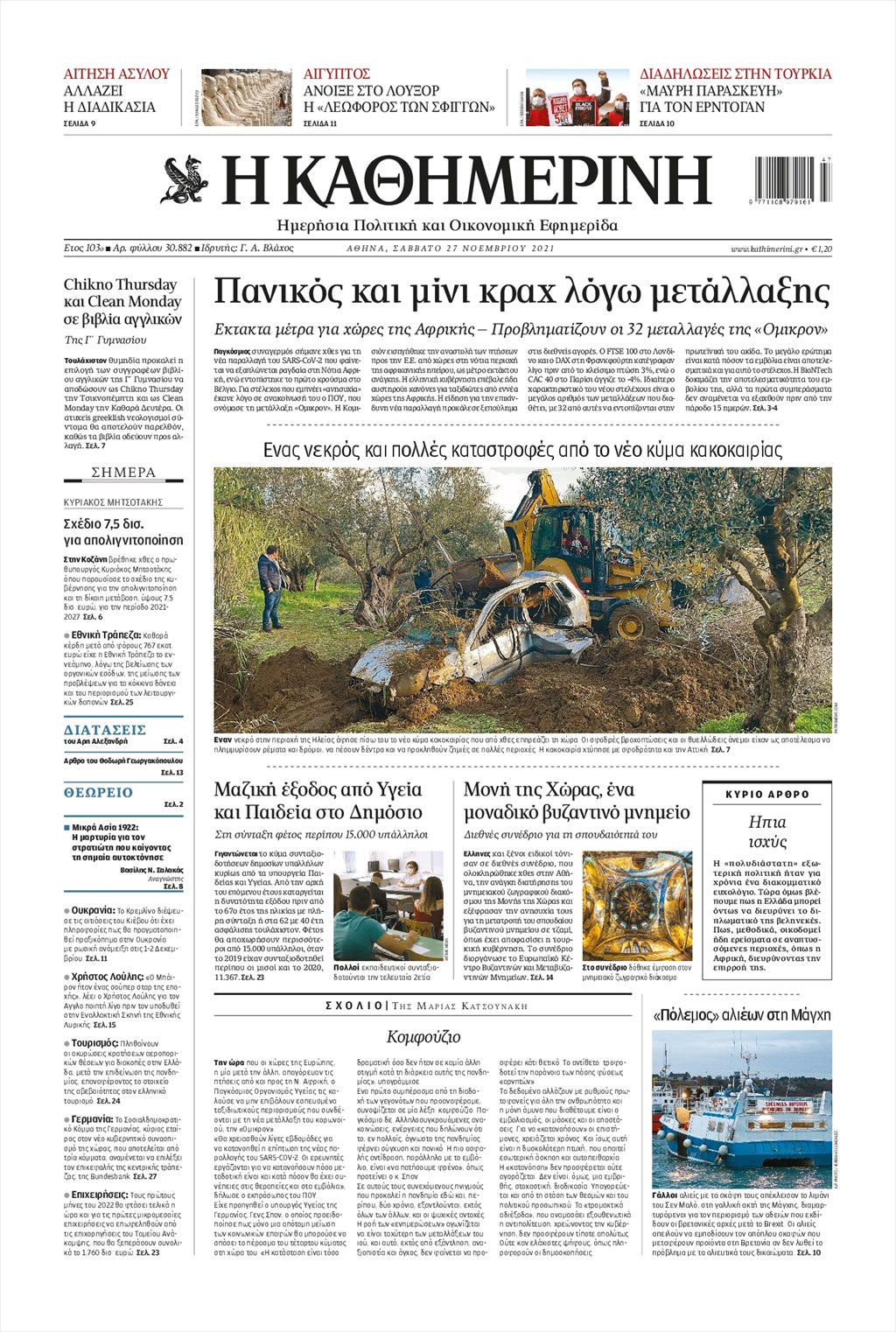 Διαβάστε τα πρωτοσέλιδα των εφημερίδων 27 Νοεμβρίου
