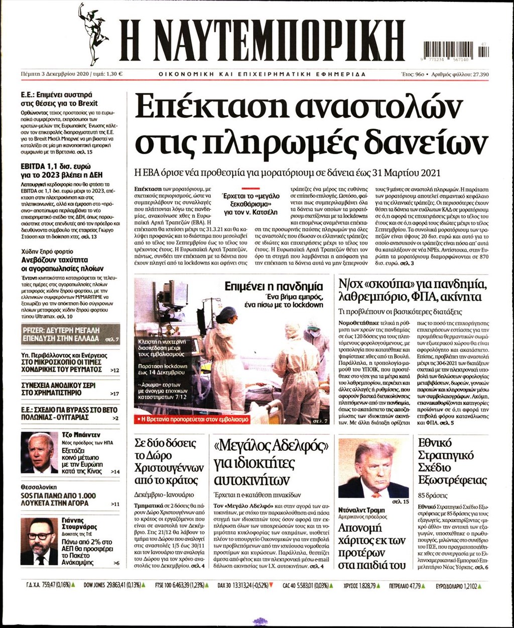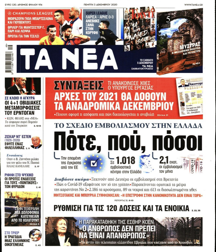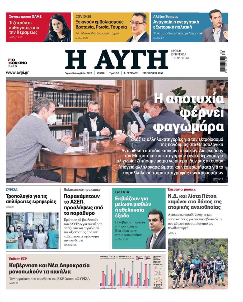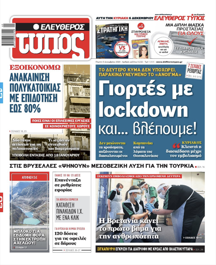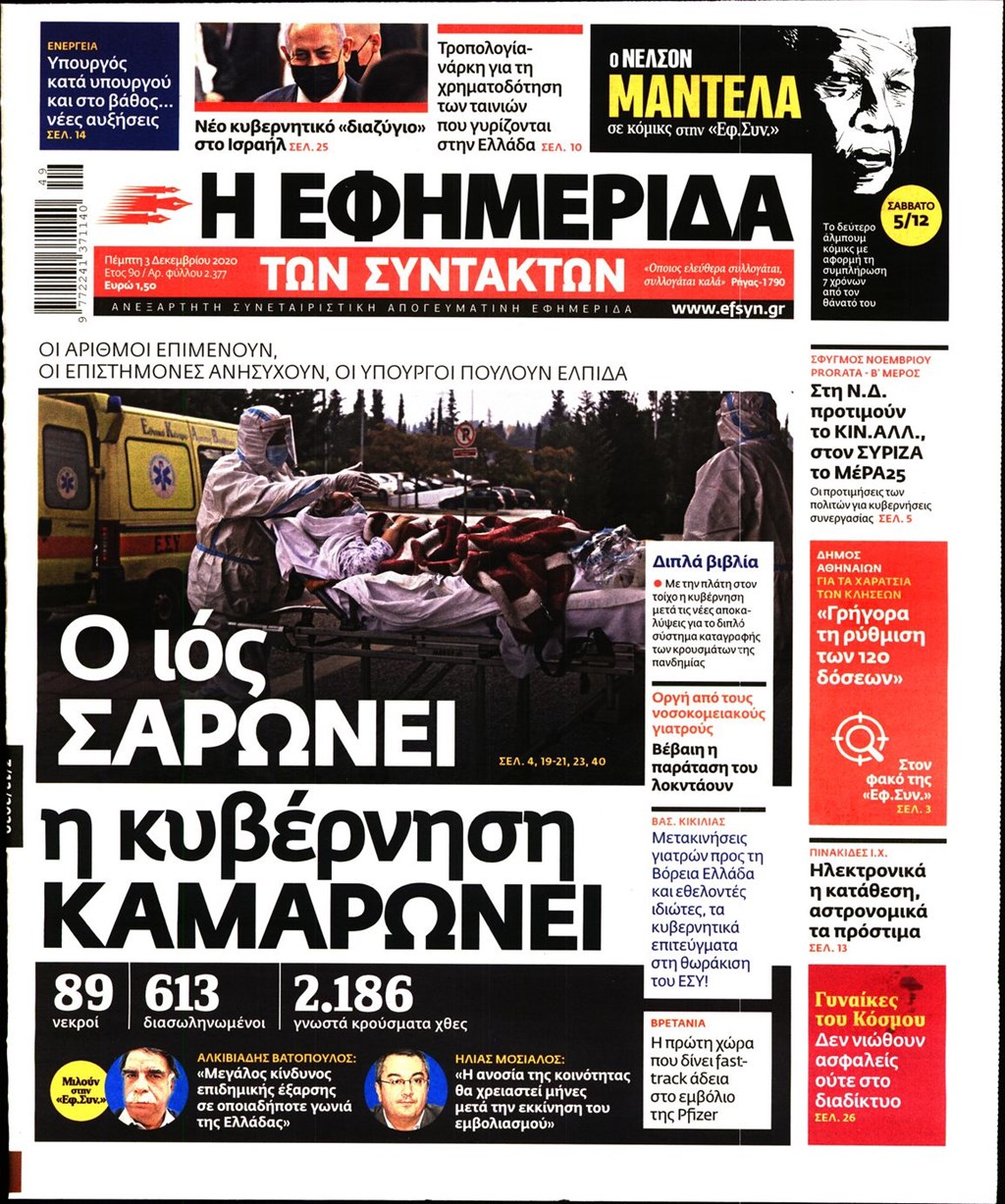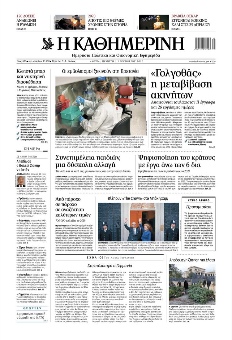 Διαβάστε τα πρωτοσέλιδα των εφημερίδων 3 Δεκεμβρίου
