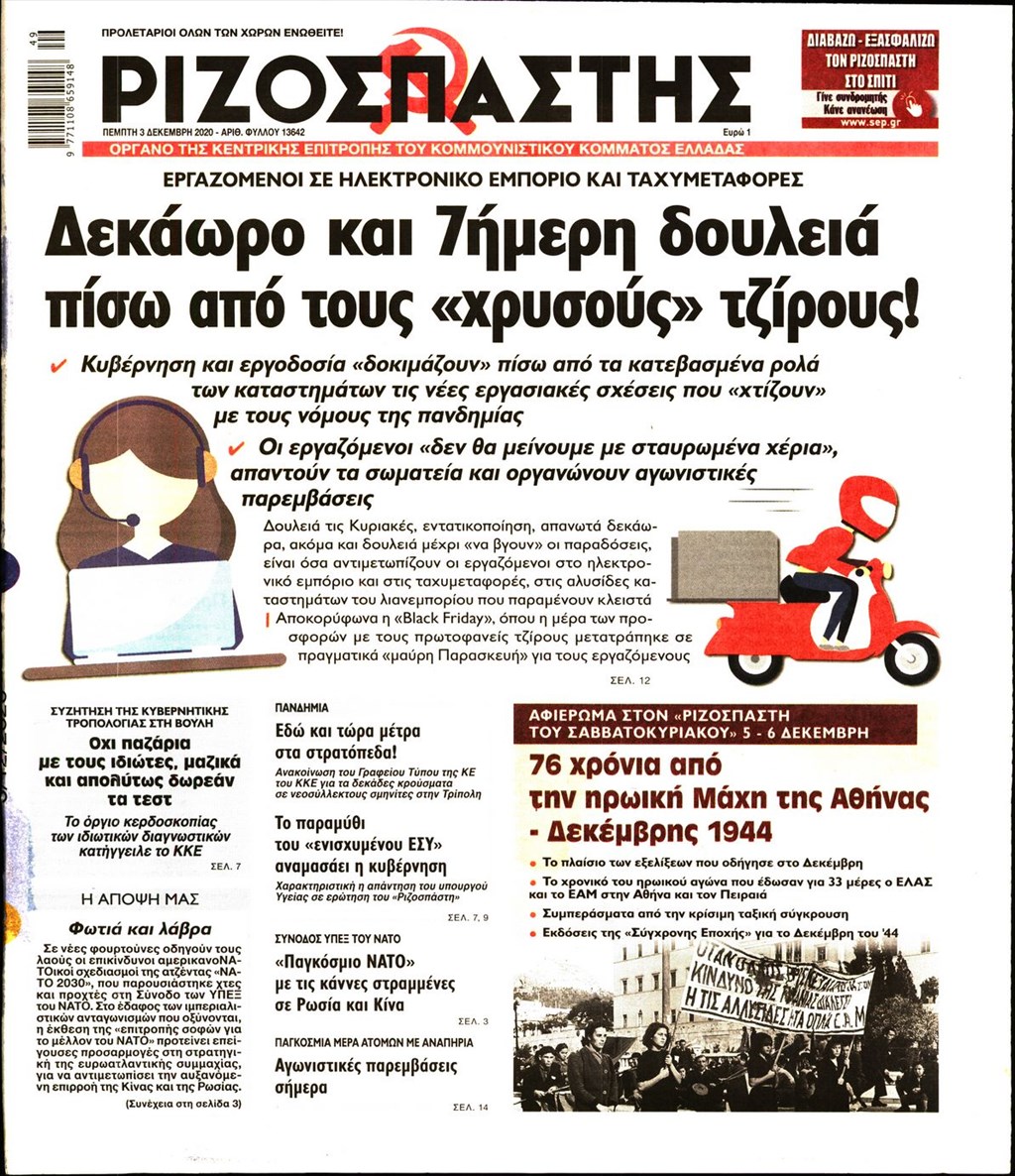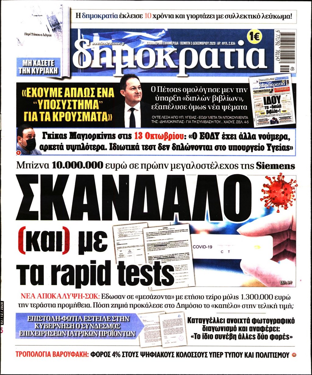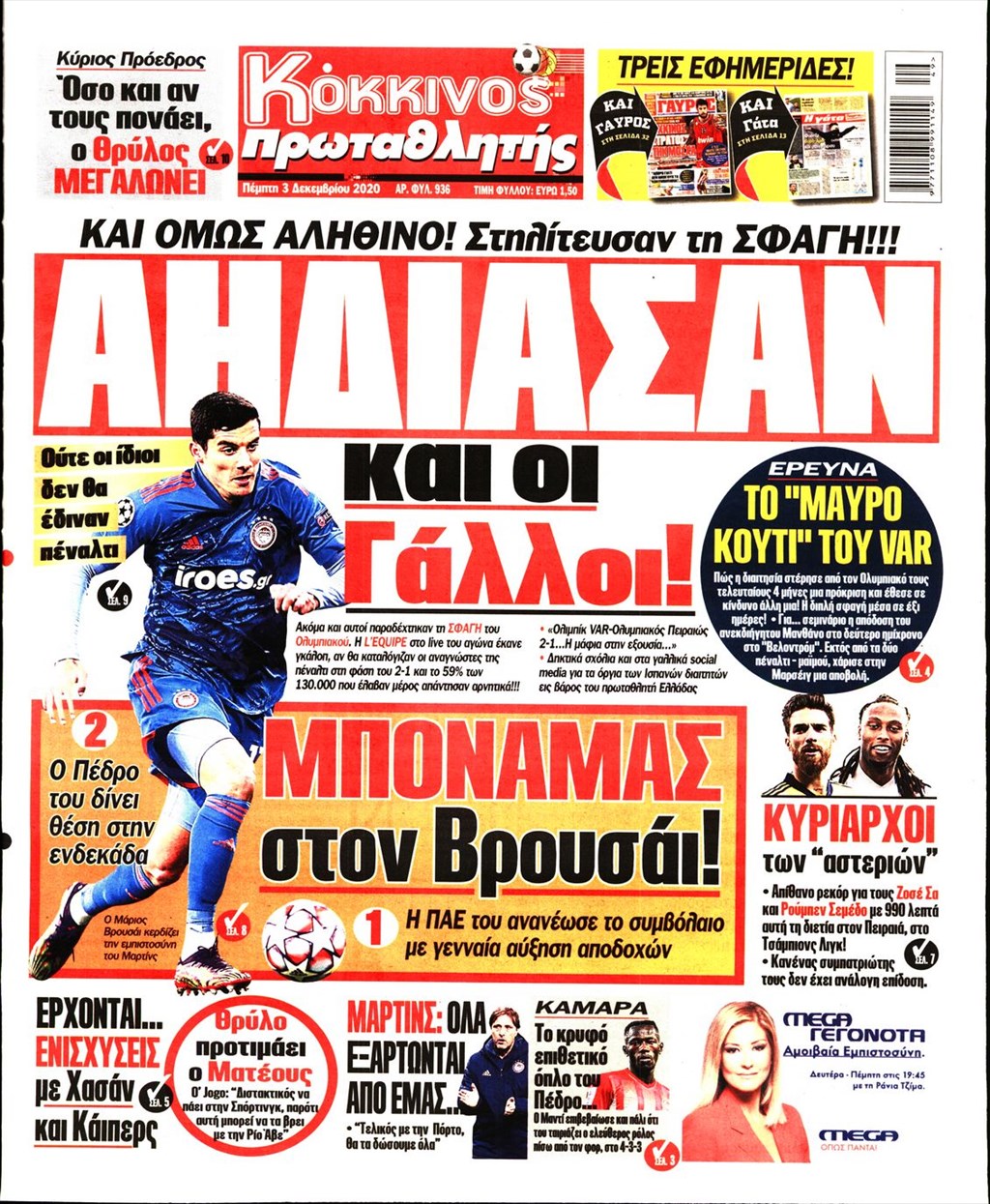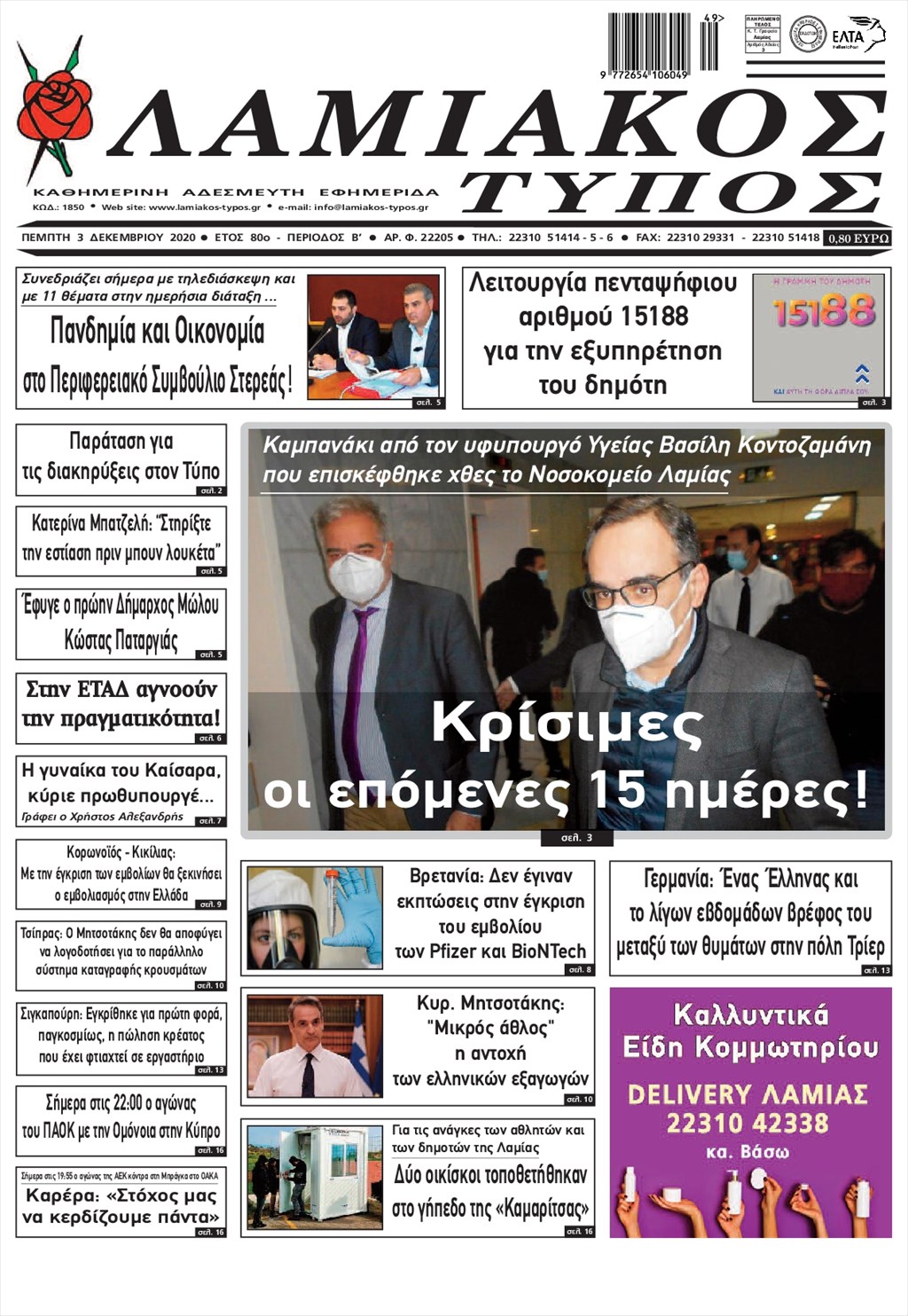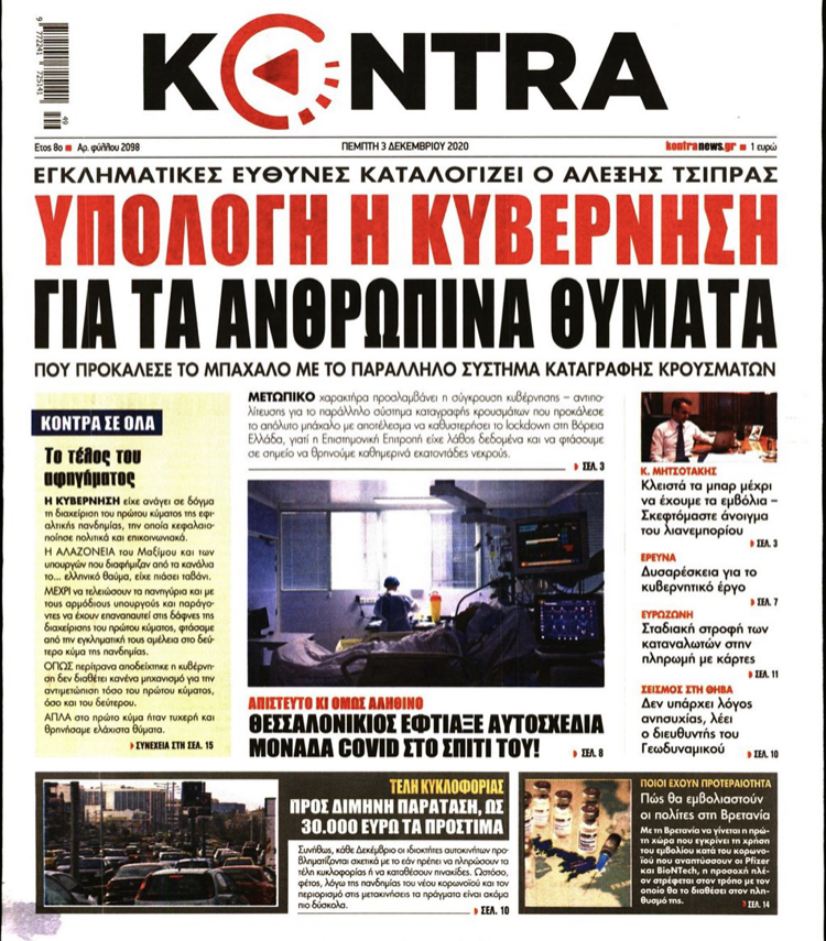 Διαβάστε τα πρωτοσέλιδα των εφημερίδων 3 Δεκεμβρίου