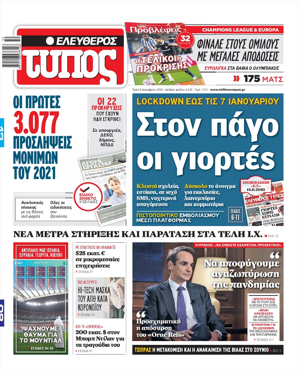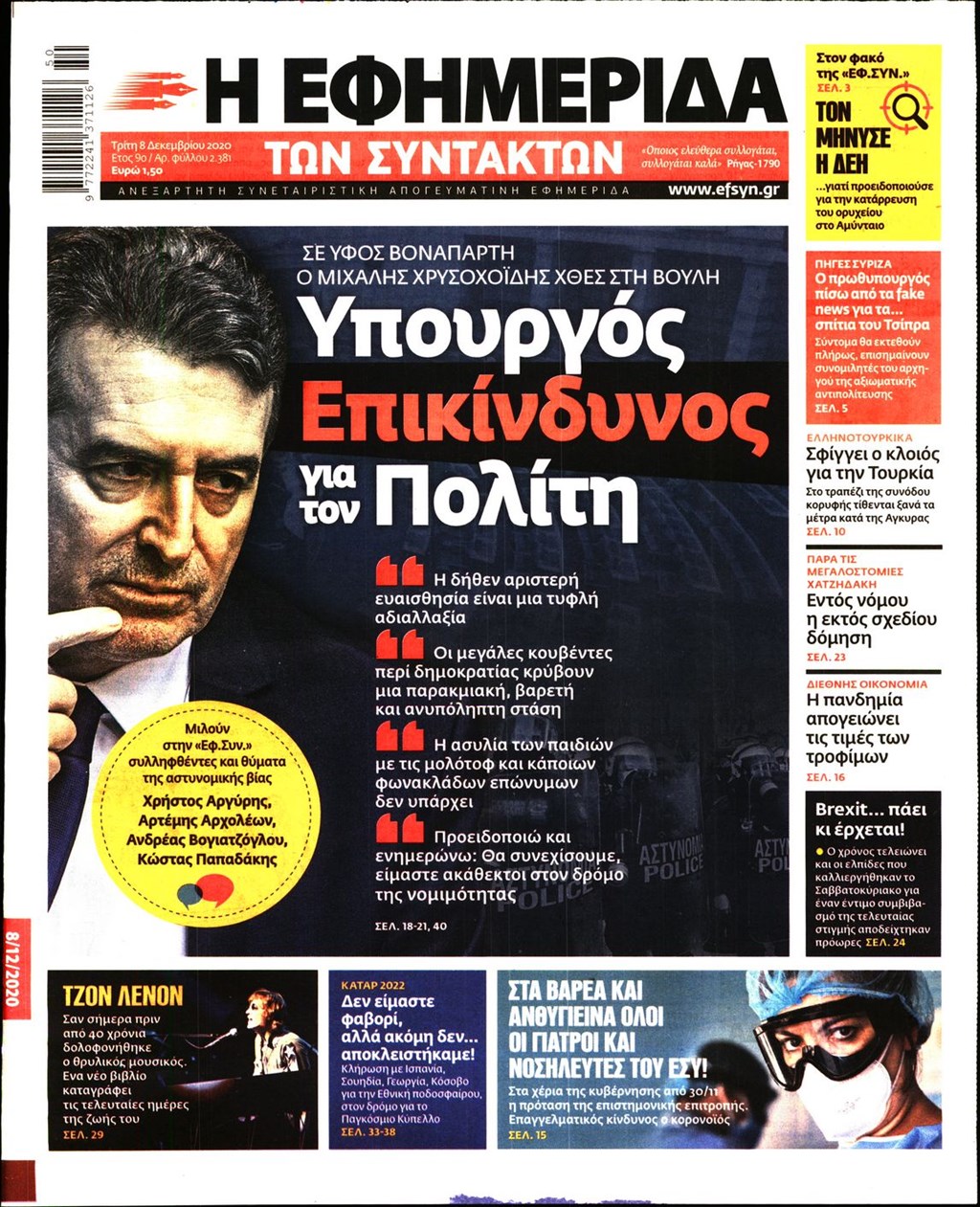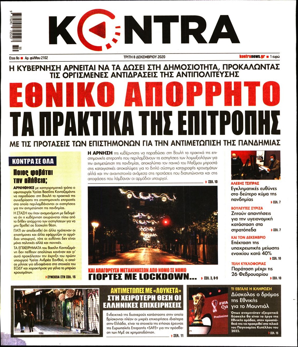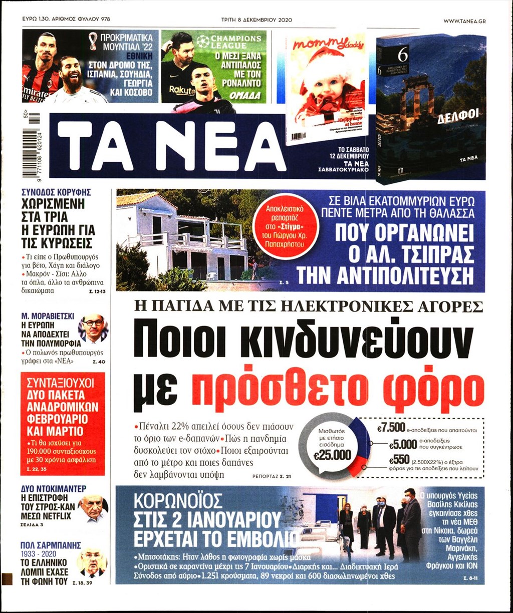 Διαβάστε τα πρωτοσέλιδα των εφημερίδων 8 Δεκεμβρίου