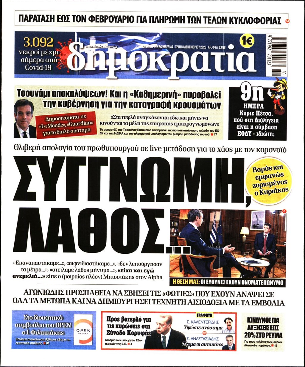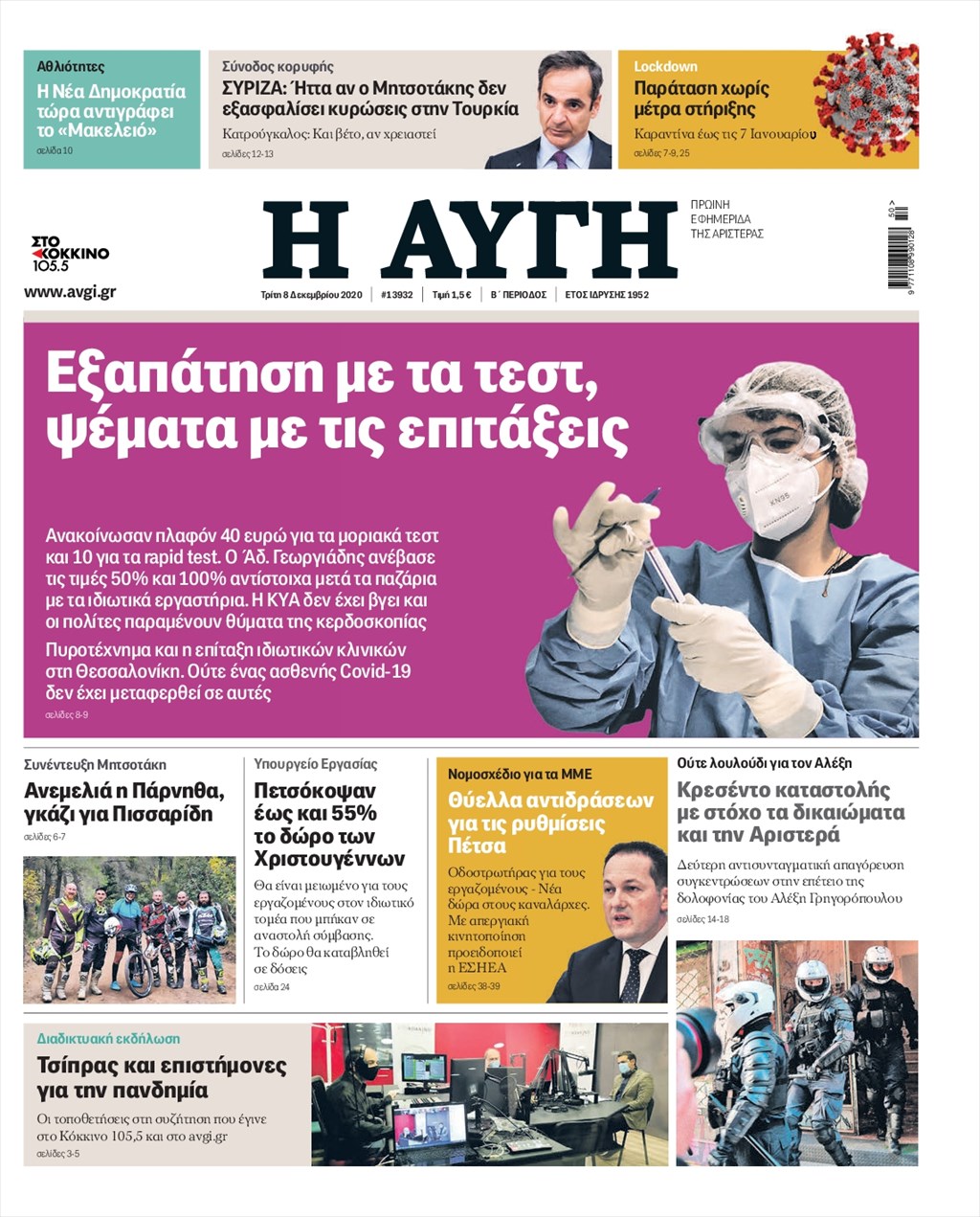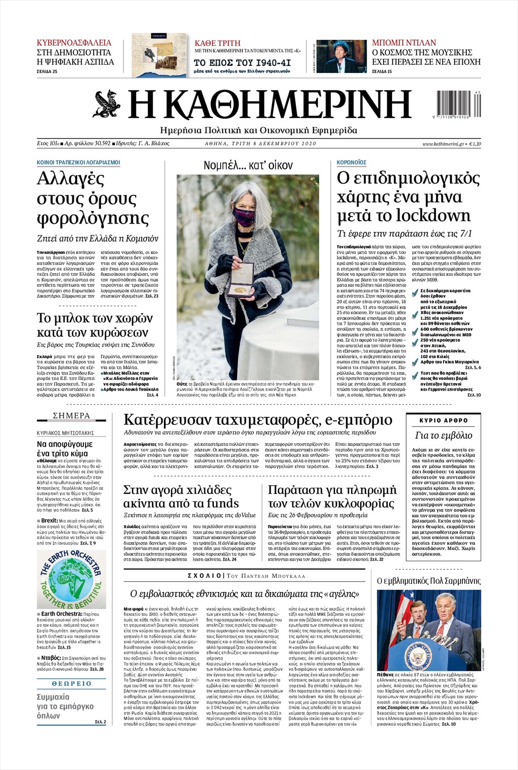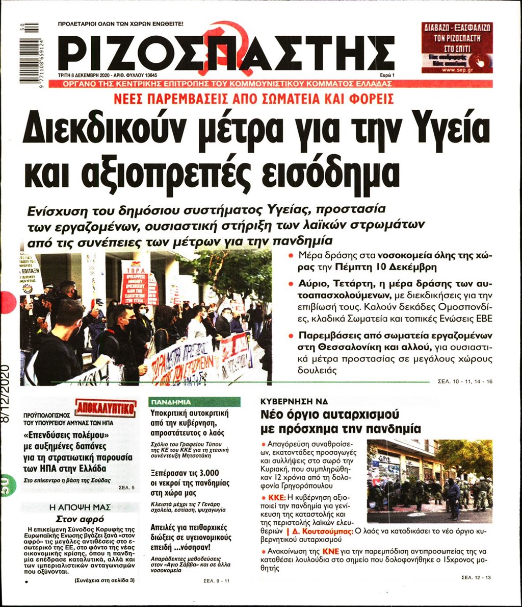 Διαβάστε τα πρωτοσέλιδα των εφημερίδων 8 Δεκεμβρίου