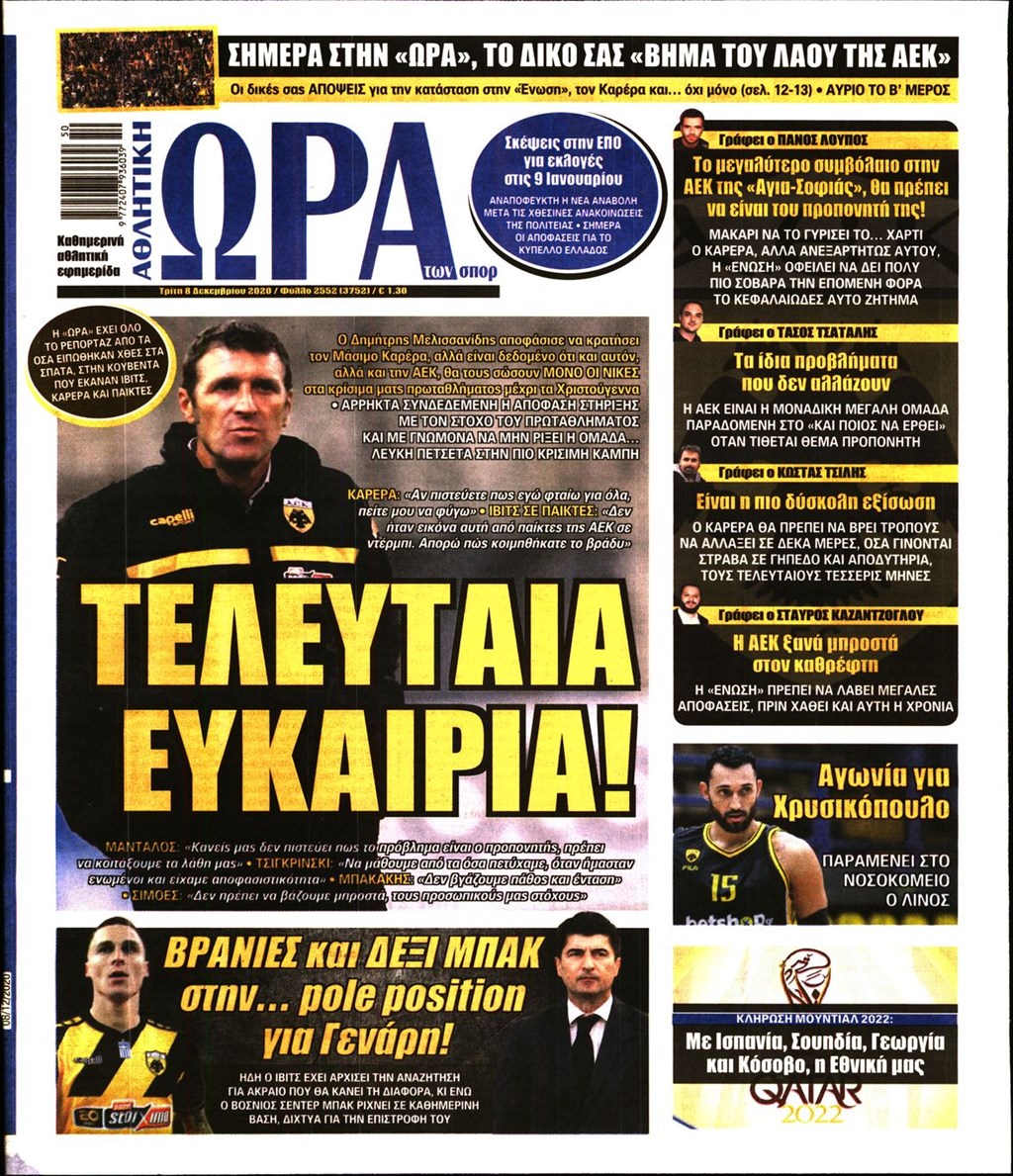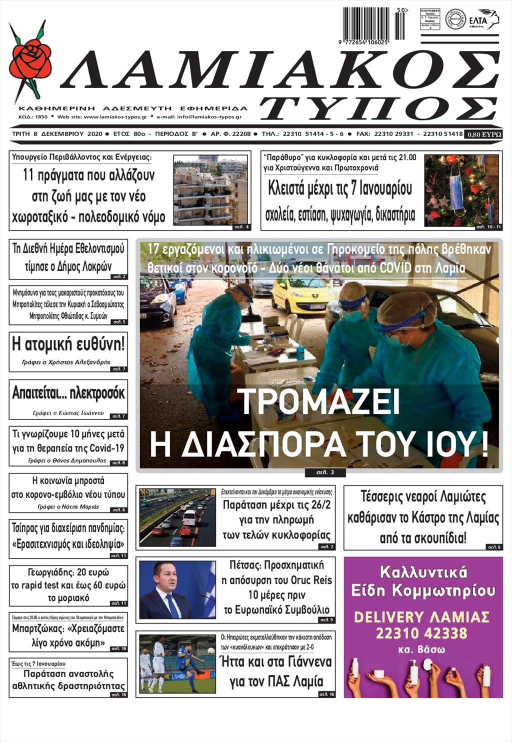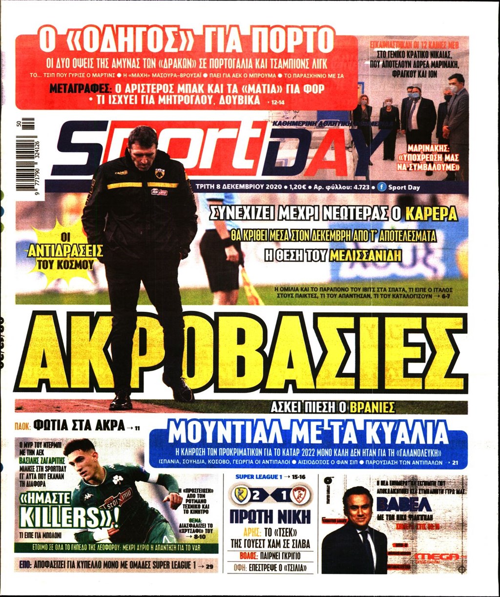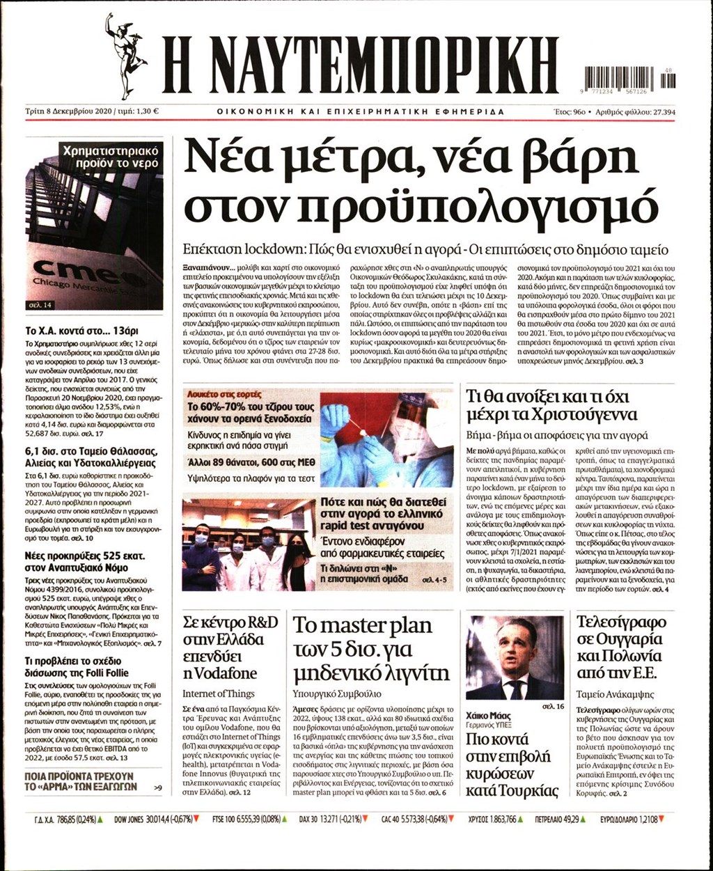Διαβάστε τα πρωτοσέλιδα των εφημερίδων 8 Δεκεμβρίου