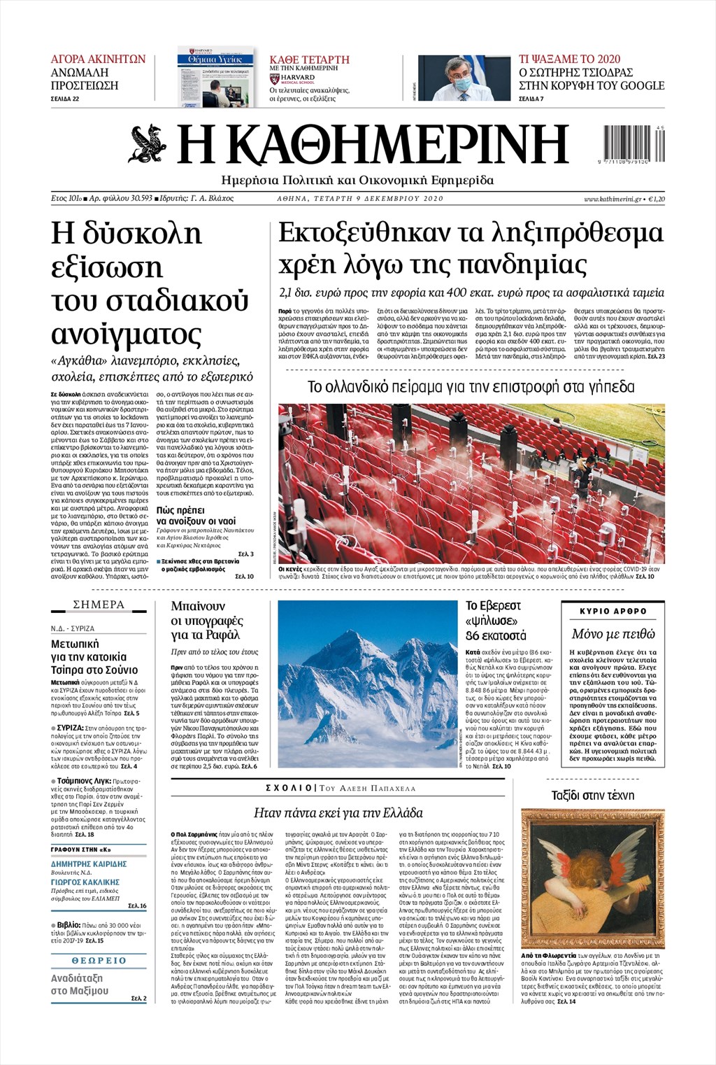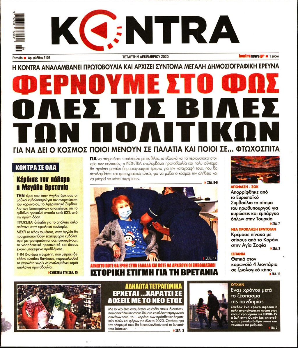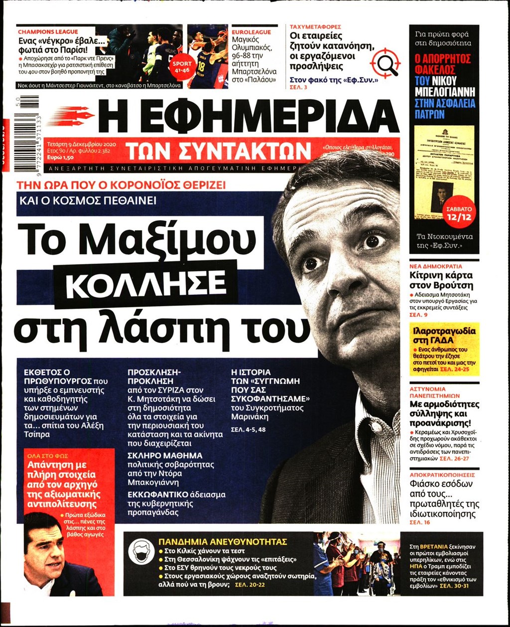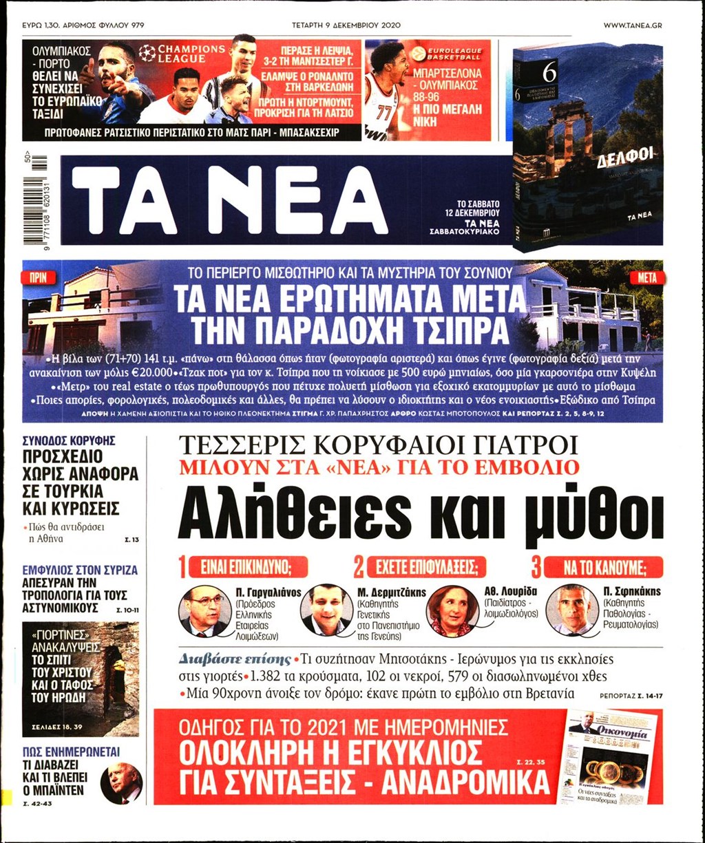 Διαβάστε τα πρωτοσέλιδα των εφημερίδων 9 Δεκεμβρίου
