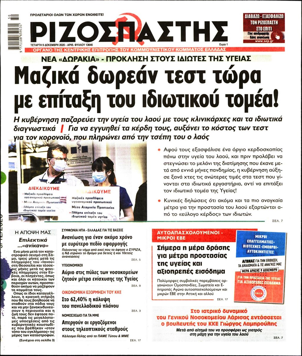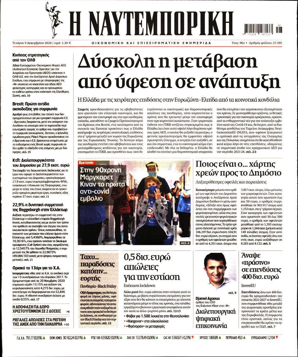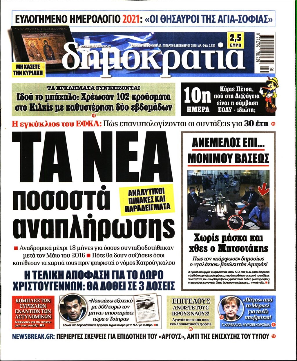Διαβάστε τα πρωτοσέλιδα των εφημερίδων 9 Δεκεμβρίου