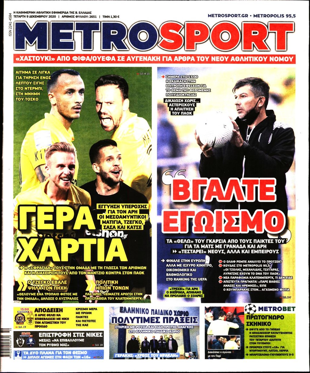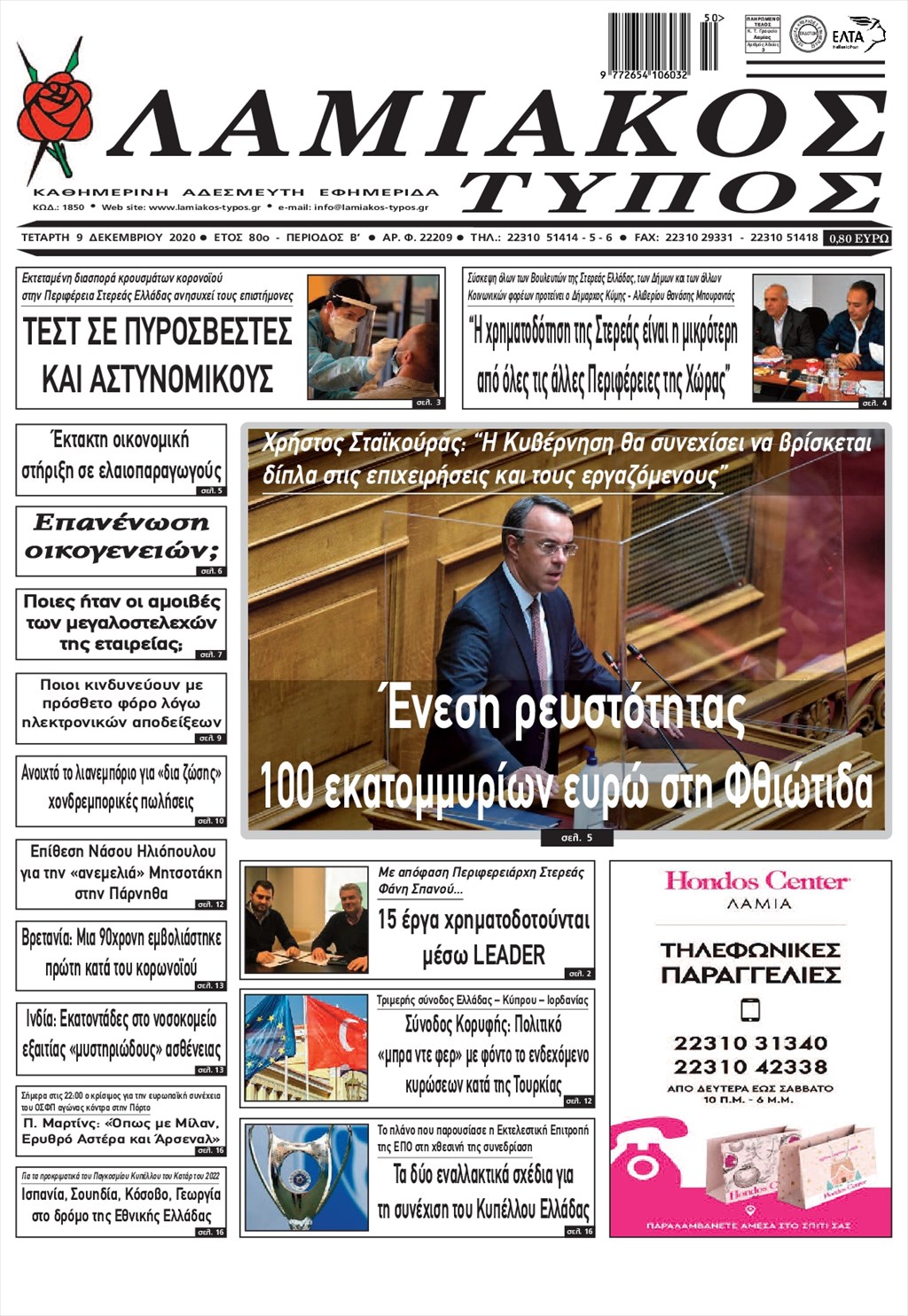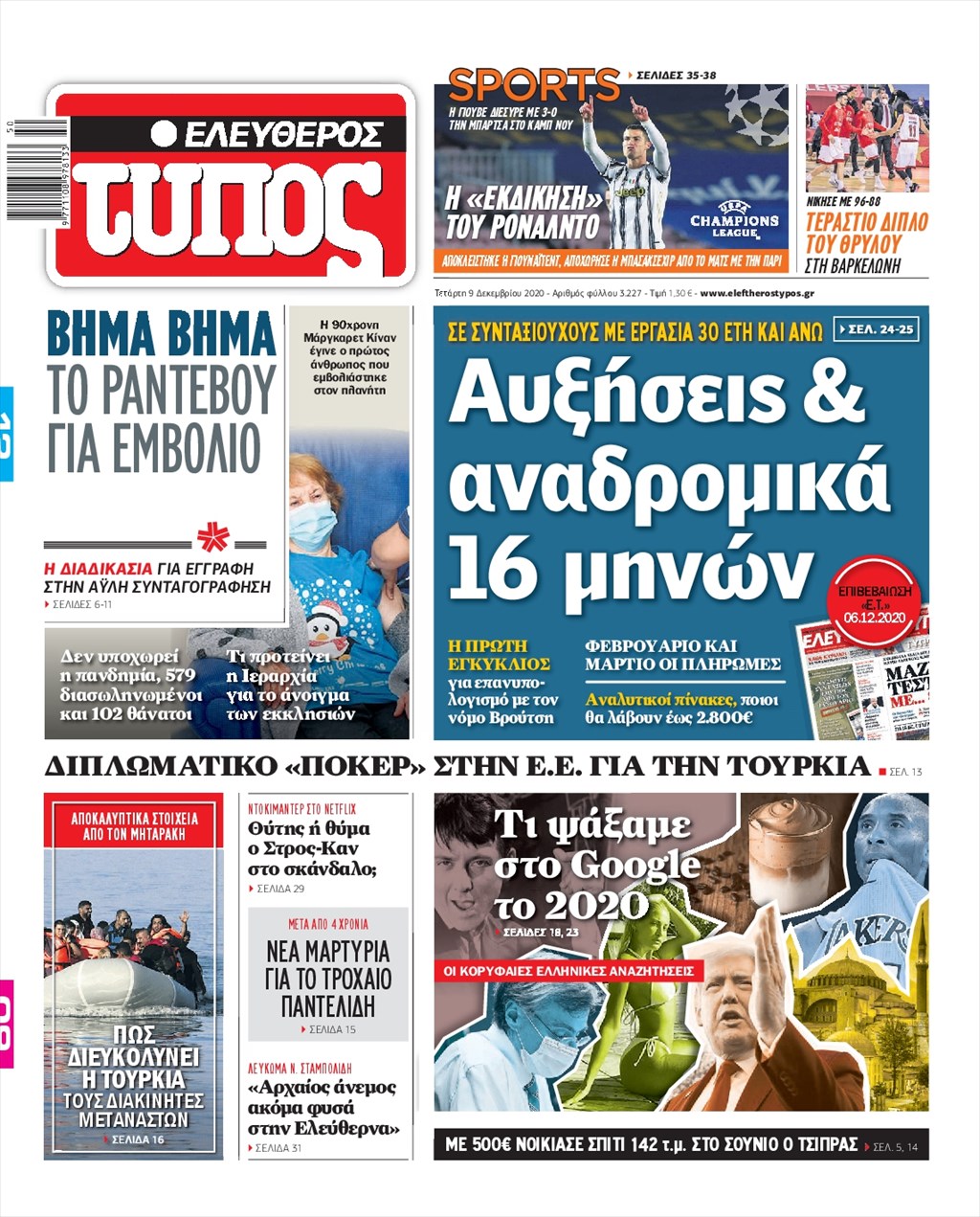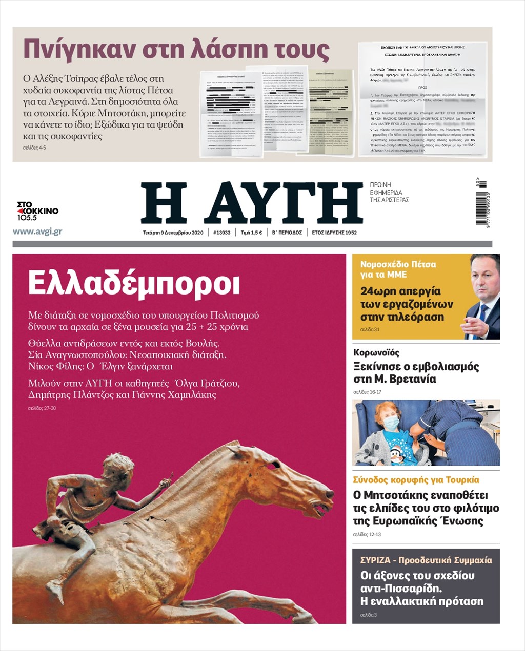 Διαβάστε τα πρωτοσέλιδα των εφημερίδων 9 Δεκεμβρίου