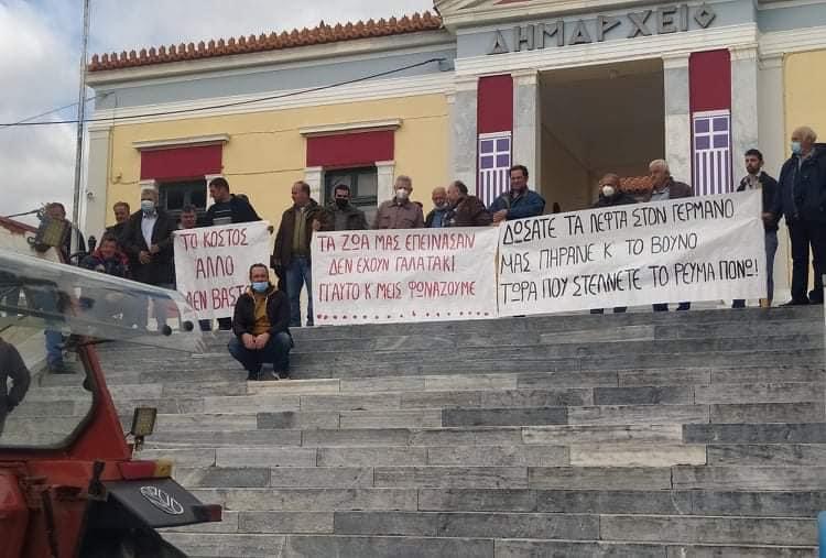 Μέλη του Αγροτοκτηνοτροφικού Συλλόγου Νότιας Καρυστίας συγκεντρώθηκαν χθες 14 Φεβρουαρίου στην πόλη της Καρύστου διαμαρτυρόμενοι για το υψηλό κόστος παραγωγής που έχει ως αποτέλεσμα την μείωση των εισοδημάτων τους.
