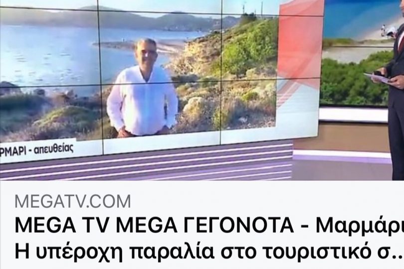 Ο δήμαρχος Καρύστου, με φόντο την μαγευτική παραλία της Μεγάλης Άμμου στο Μαρμάρι πρωταγωνίστρια στην επικαιρότητα των ημερών, βρέθηκε καλεσμένος στο κεντρικό δελτίο ειδήσεων του ΜEGA TV και μίλησε για τις ομορφιές του τόπους μας και για την τουριστική κίνηση στην Κάρυστο.