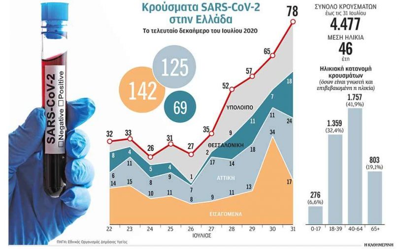 Υπό τον φόβο η κατάσταση να ξεφύγει από τον έλεγχο, την περασμένη Πέμπτη ο πρωθυπουργός Κυριάκος Μητσοτάκης, προέτρεψε τους επιστήμονες της Επιτροπής Εμπειρογνωμόνων να μη διστάσουν να ζητήσουν εγκαίρως νέα μέτρα περιορισμού της διασποράς. Αυτό έγινε αμέσως την επόμενη ημέρα. Υποχρέωση της χρήσης μάσκας σε κλειστούς δημόσιους χώρους, ισχυρή σύσταση για χρήση μάσκας σε ανοικτούς χώρους, πλαφόν στους καλεσμένους σε γάμους, απαγόρευση επισκεπτηρίων σε χώρους φροντίδας ευάλωτων ομάδων και έστω και για μία εβδομάδα, αλλαγή στον τρόπο νυκτερινής διασκέδασης. Για τους ειδικούς προέχει η αυστηρή επιτήρηση της τήρησης των μέτρων. «Είναι η ώρα των εντατικών ελέγχων από την πολιτεία», σημειώνει στην «Κ» ο καθηγητής Παθολογικής Φυσιολογίας Λοιμώξεων του ΕΚΠΑ Νικόλαος Σύψας, που προσθέτει ότι «πρέπει και οι πολίτες να αποφεύγουν επικίνδυνες καταστάσεις συνωστισμού». Οπως ανέφερε, «είναι σαν να βρισκόμαστε σε έναν λεπτό πάγο που μπορεί ανά πάσα στιγμή να σπάσει. Ειδικά εάν συνεχιστούν τα φαινόμενα συνωστισμού που παρατηρούνται κυρίως από νέους».