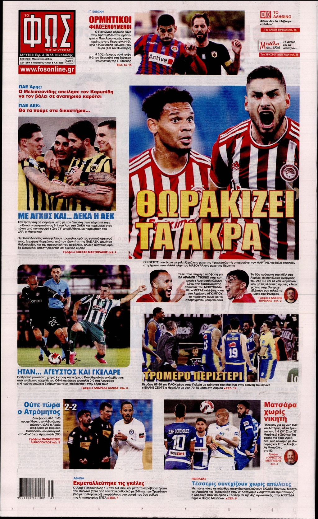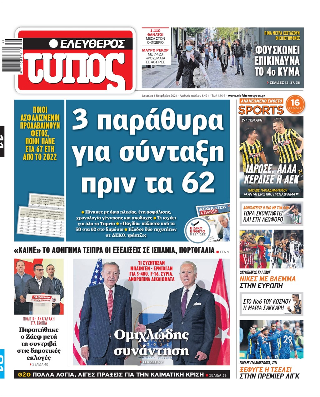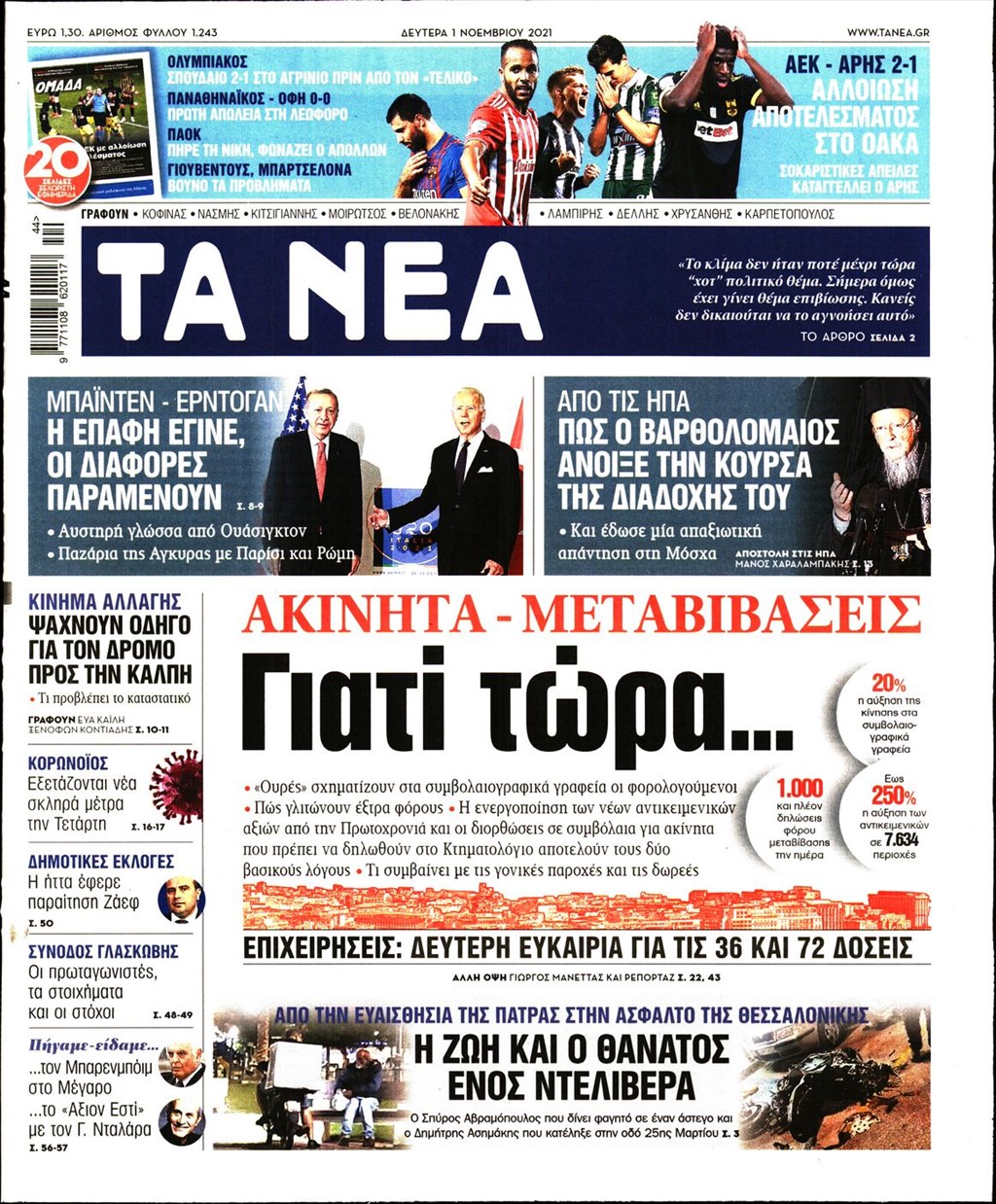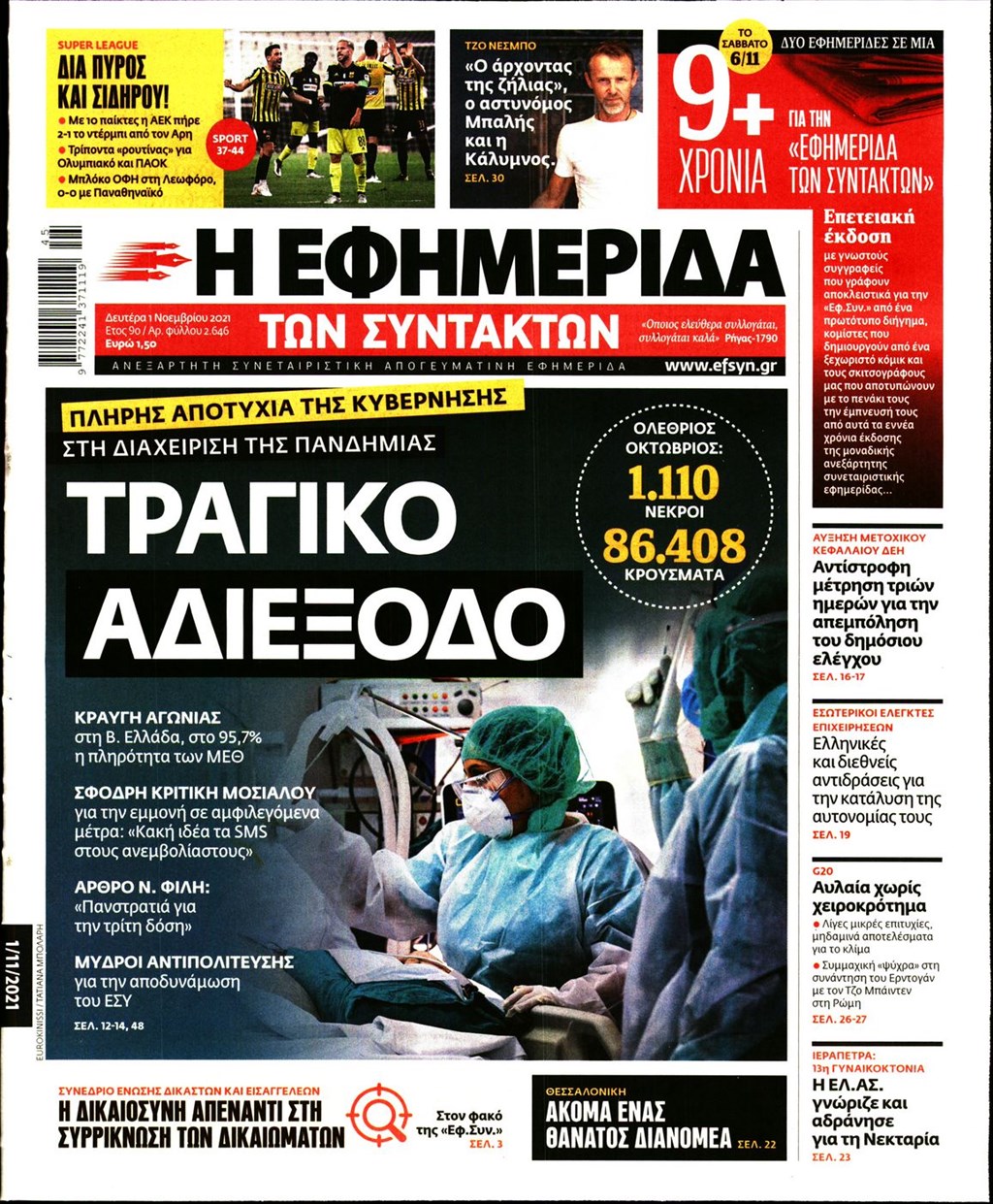 Τα πρωτοσέλιδα των εφημερίδων 1 Νοεμβρίου