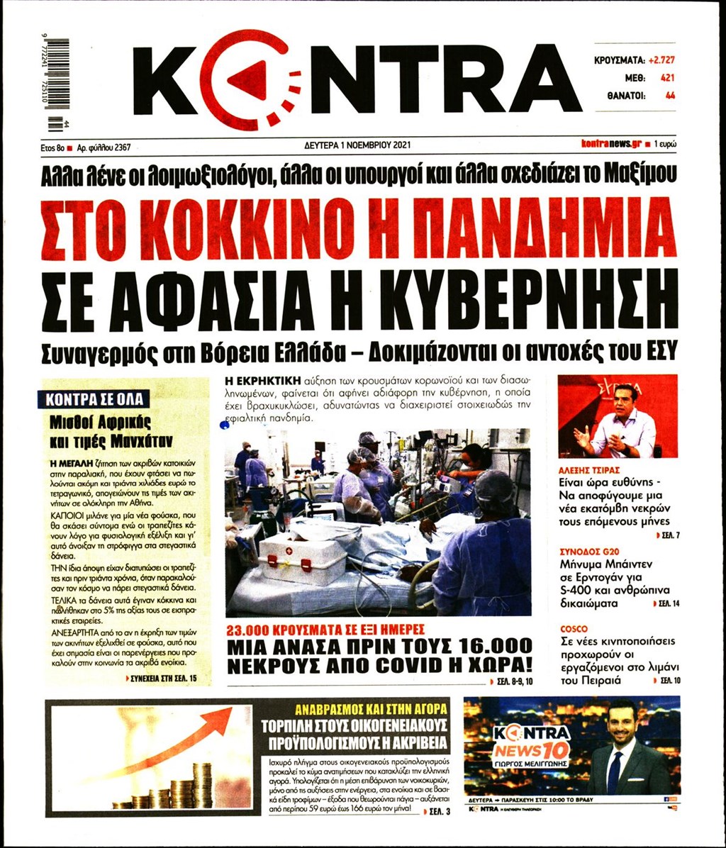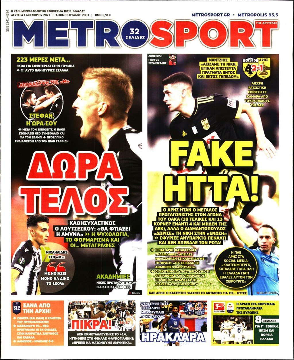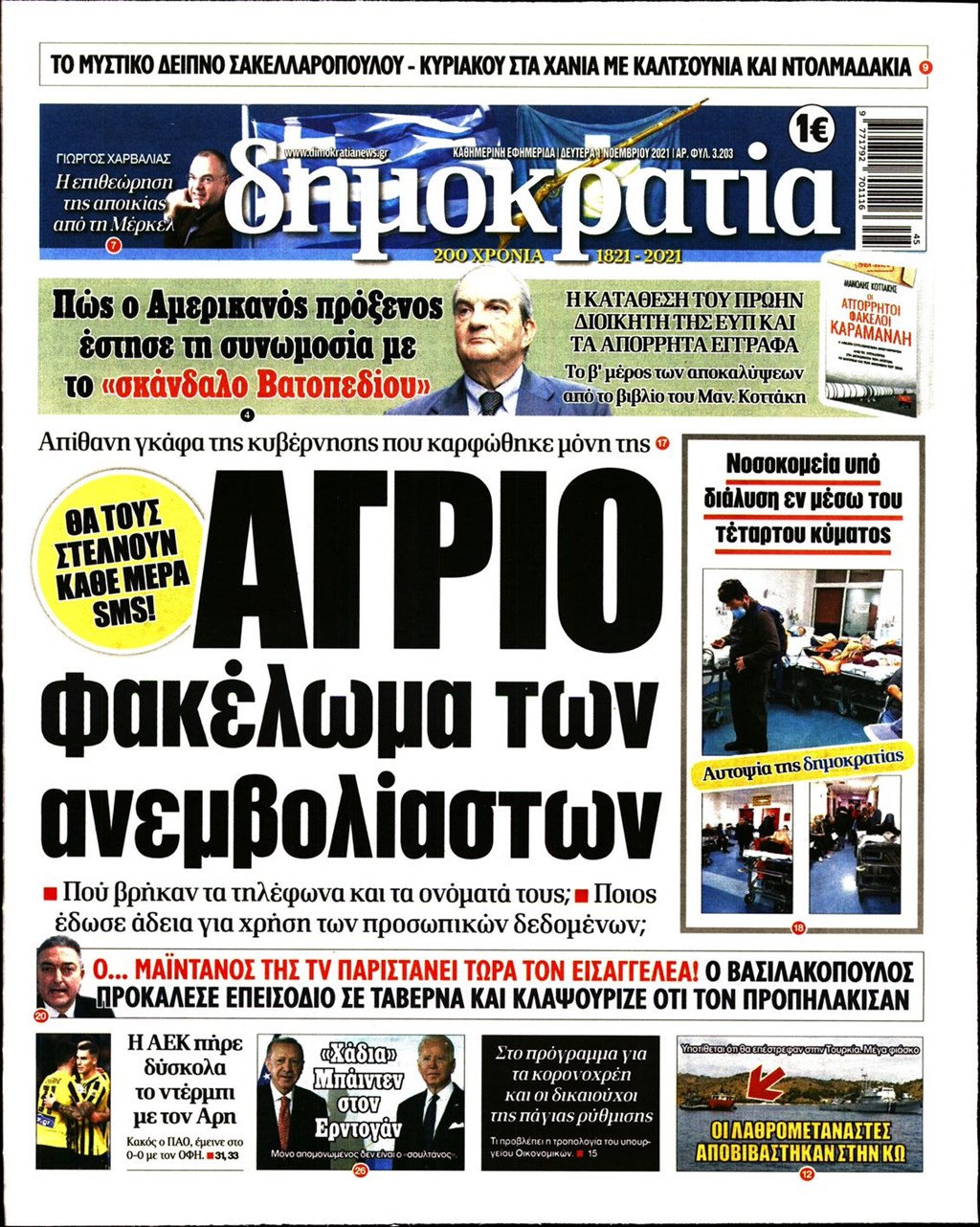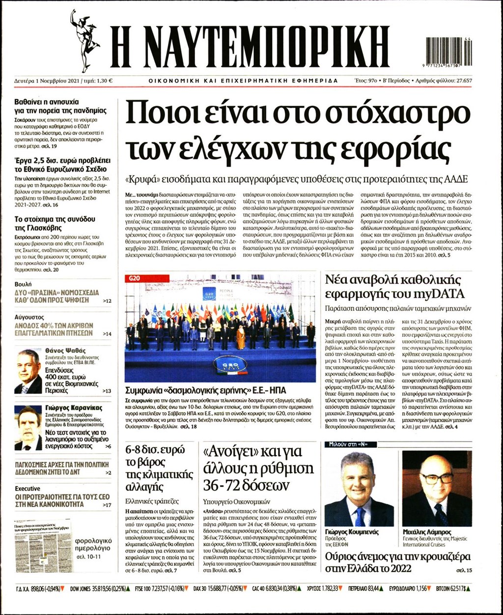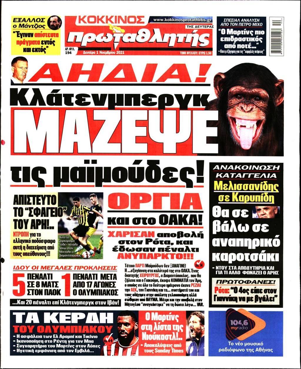 Τα πρωτοσέλιδα των εφημερίδων 1 Νοεμβρίου