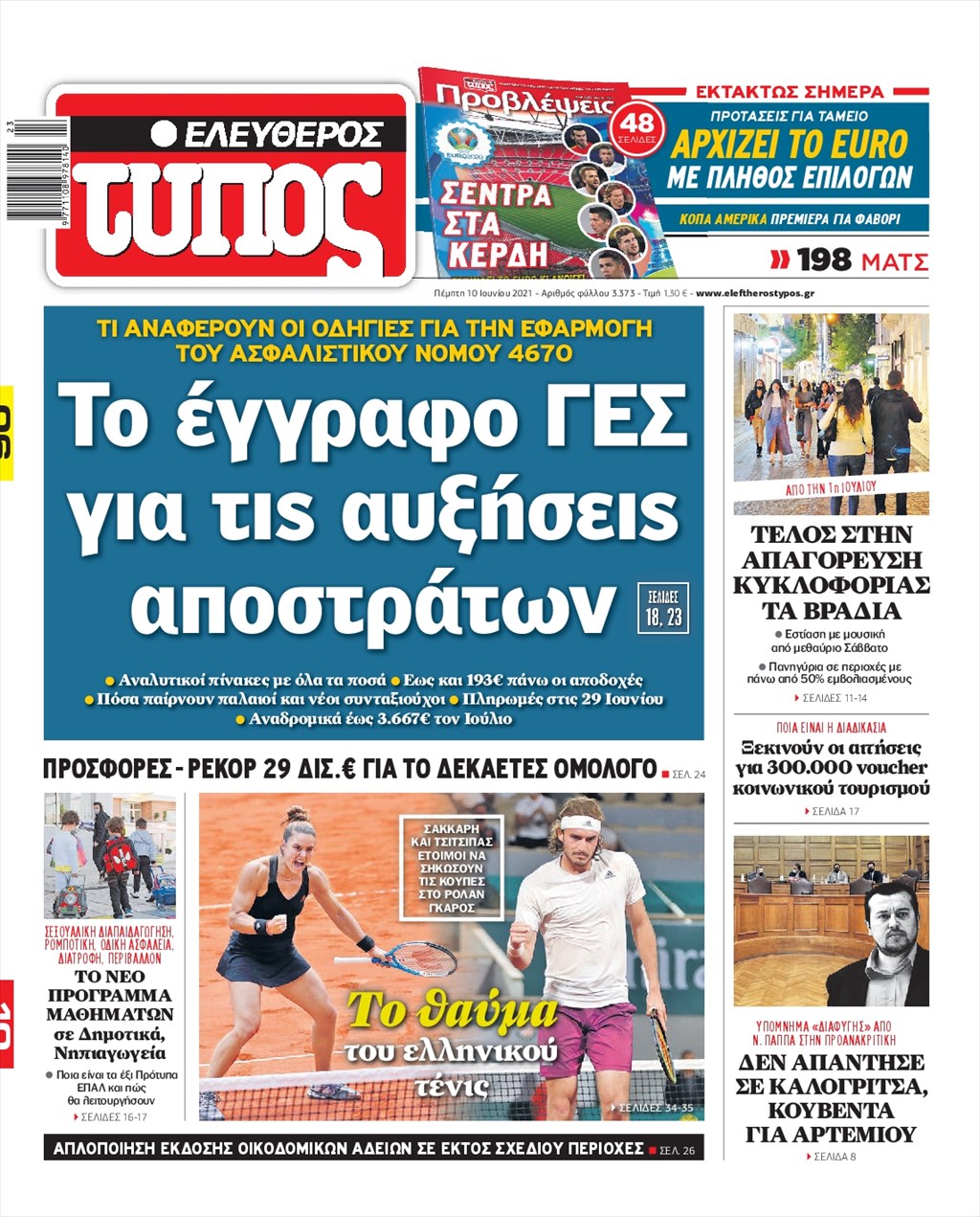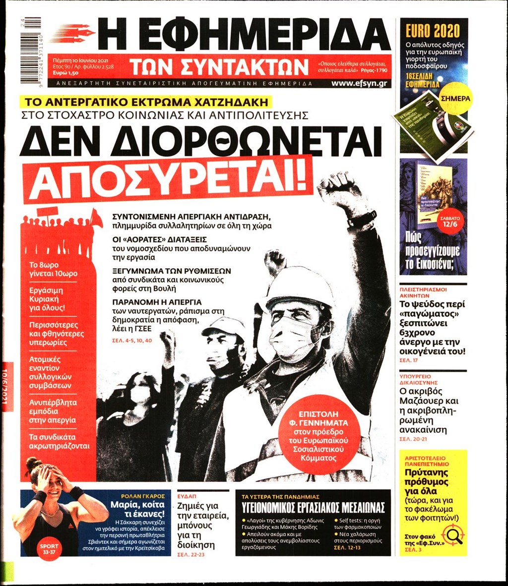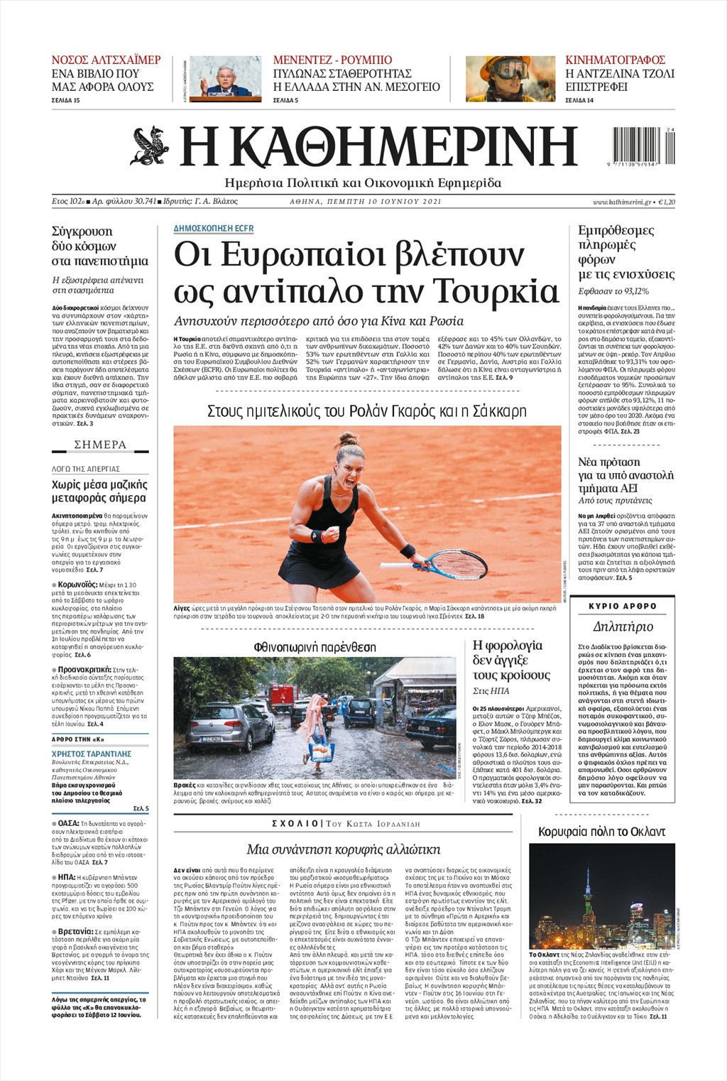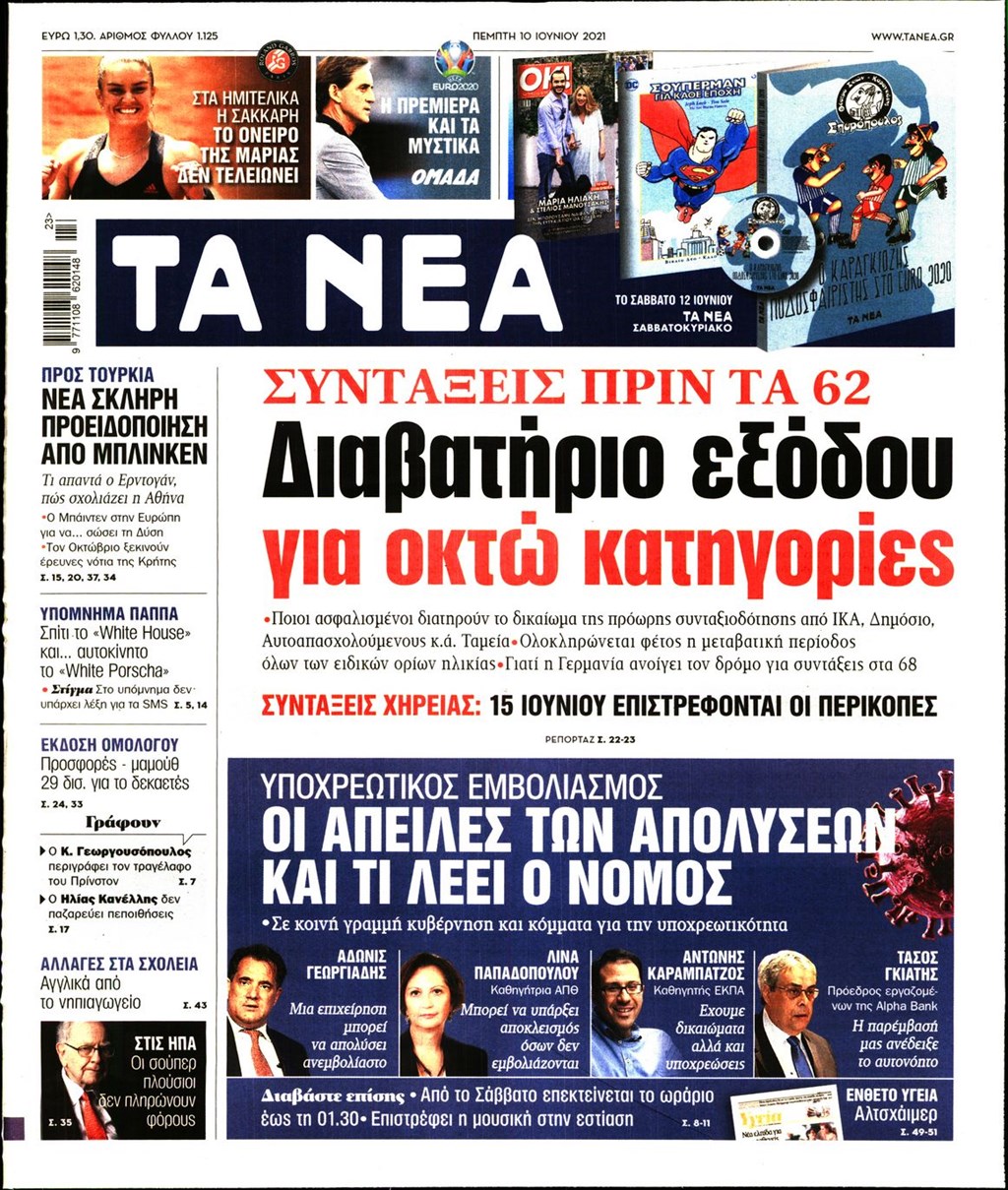 Τα πρωτοσέλιδα των εφημερίδων 10 Ιουνίου