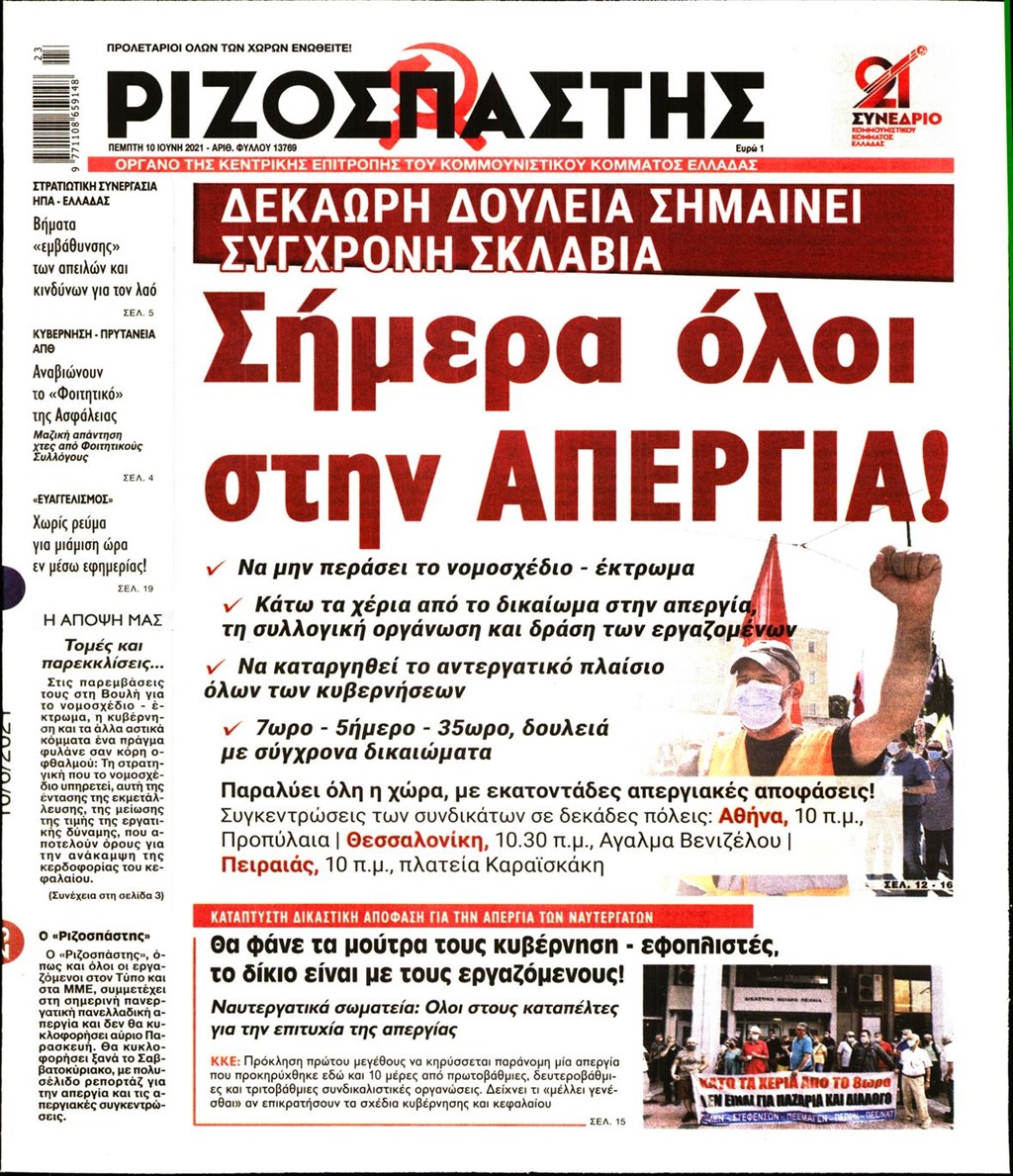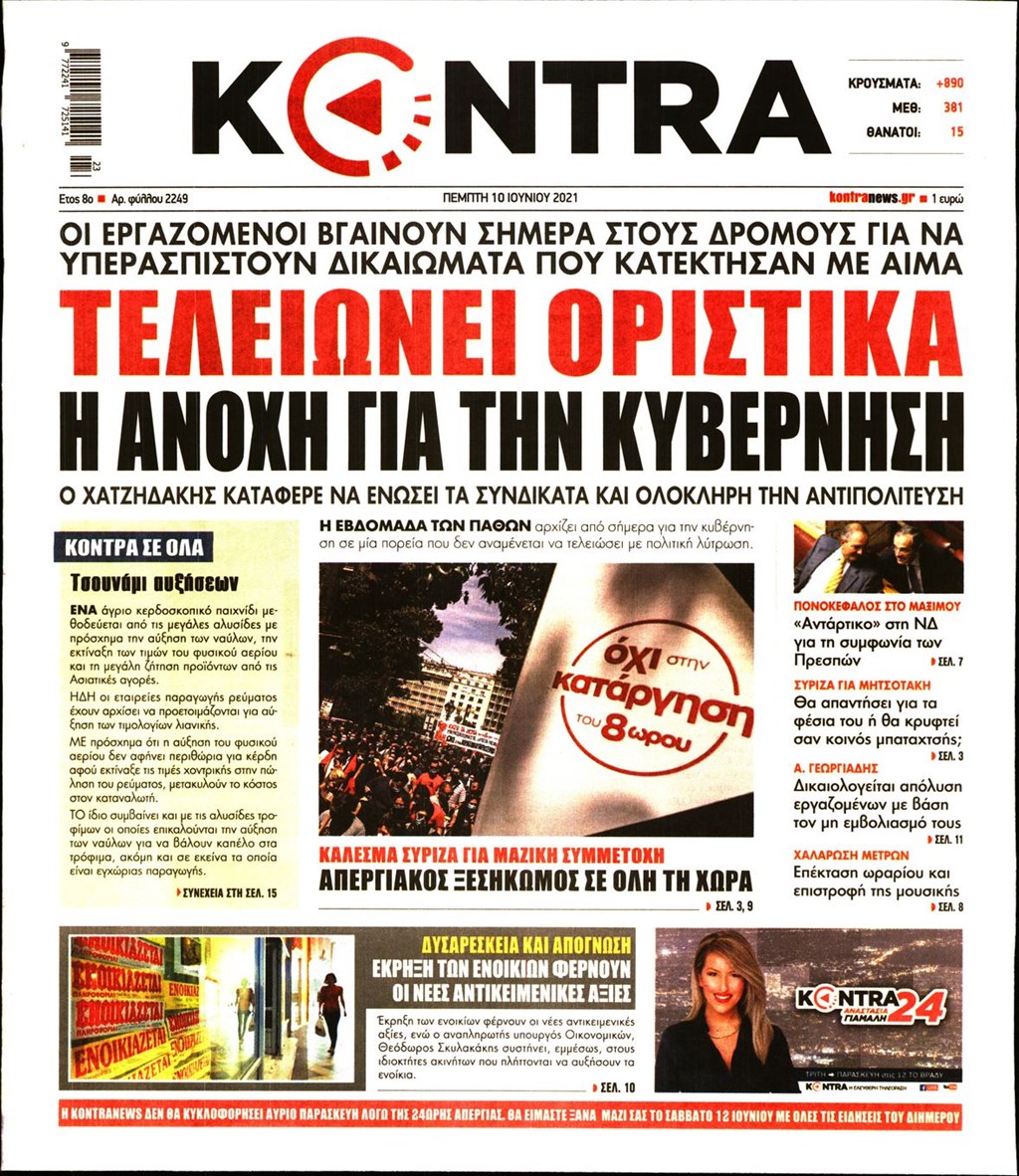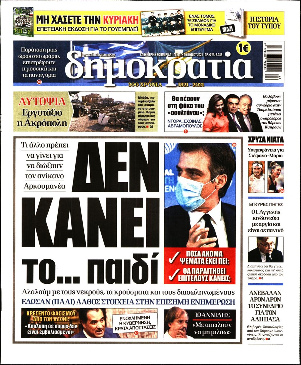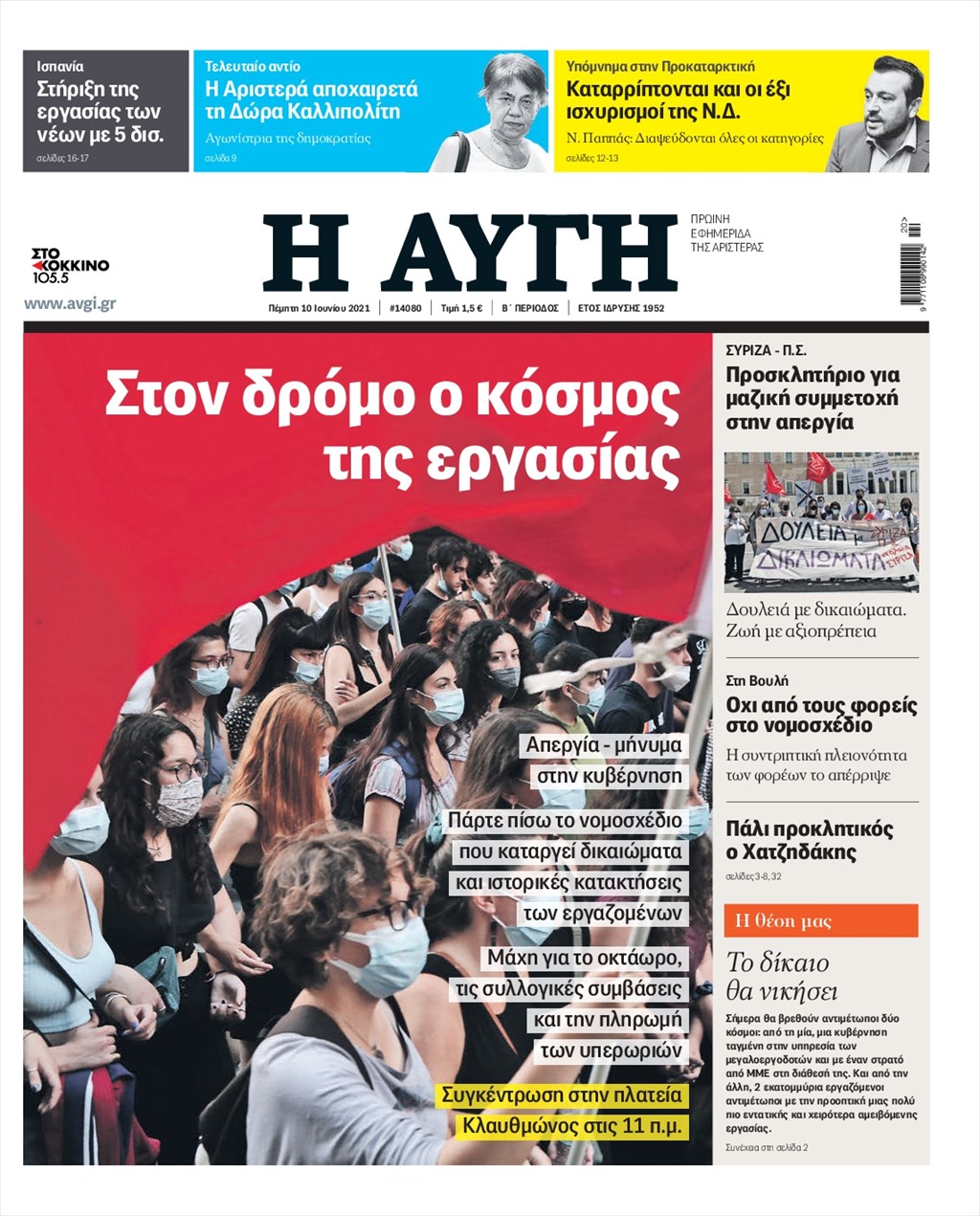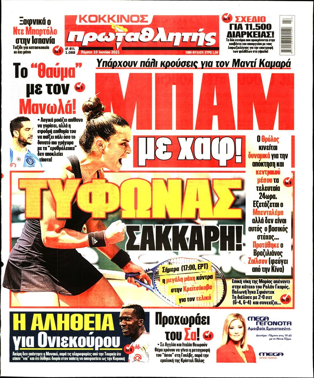Τα πρωτοσέλιδα των εφημερίδων 10 Ιουνίου