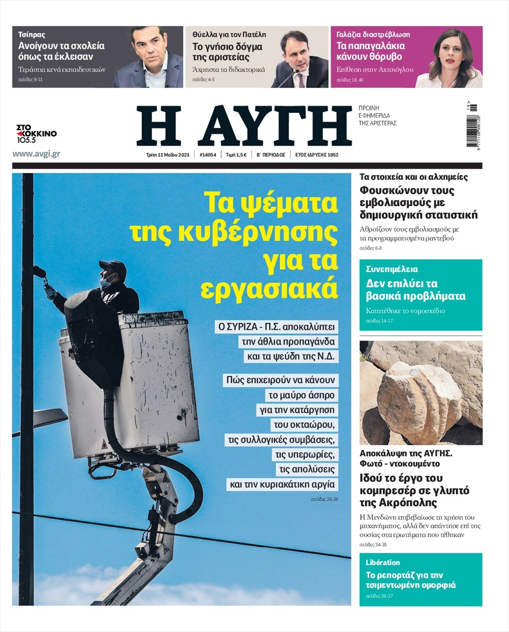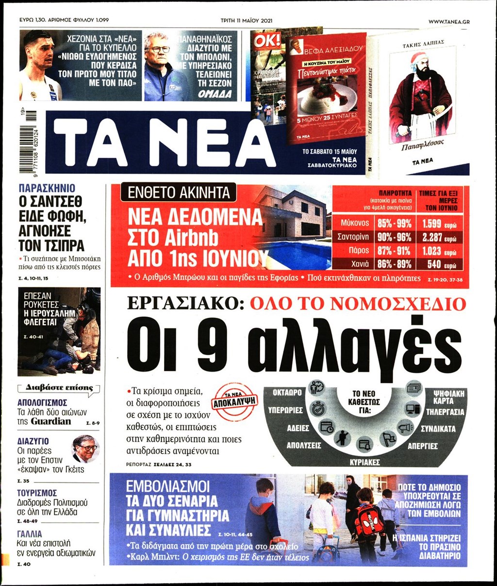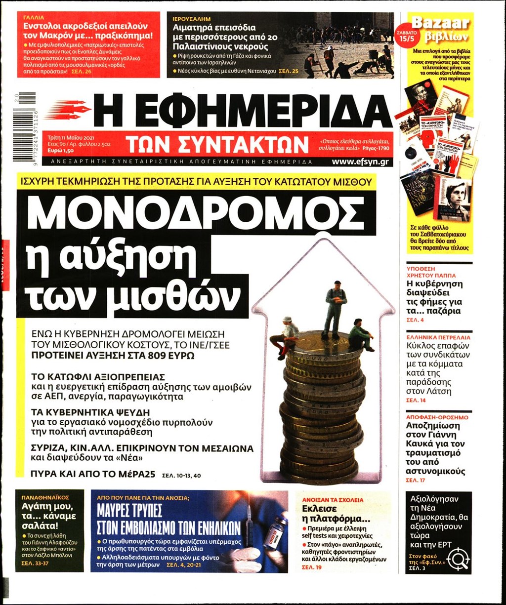 Τα πρωτοσέλιδα των εφημερίδων 11 Μαΐου