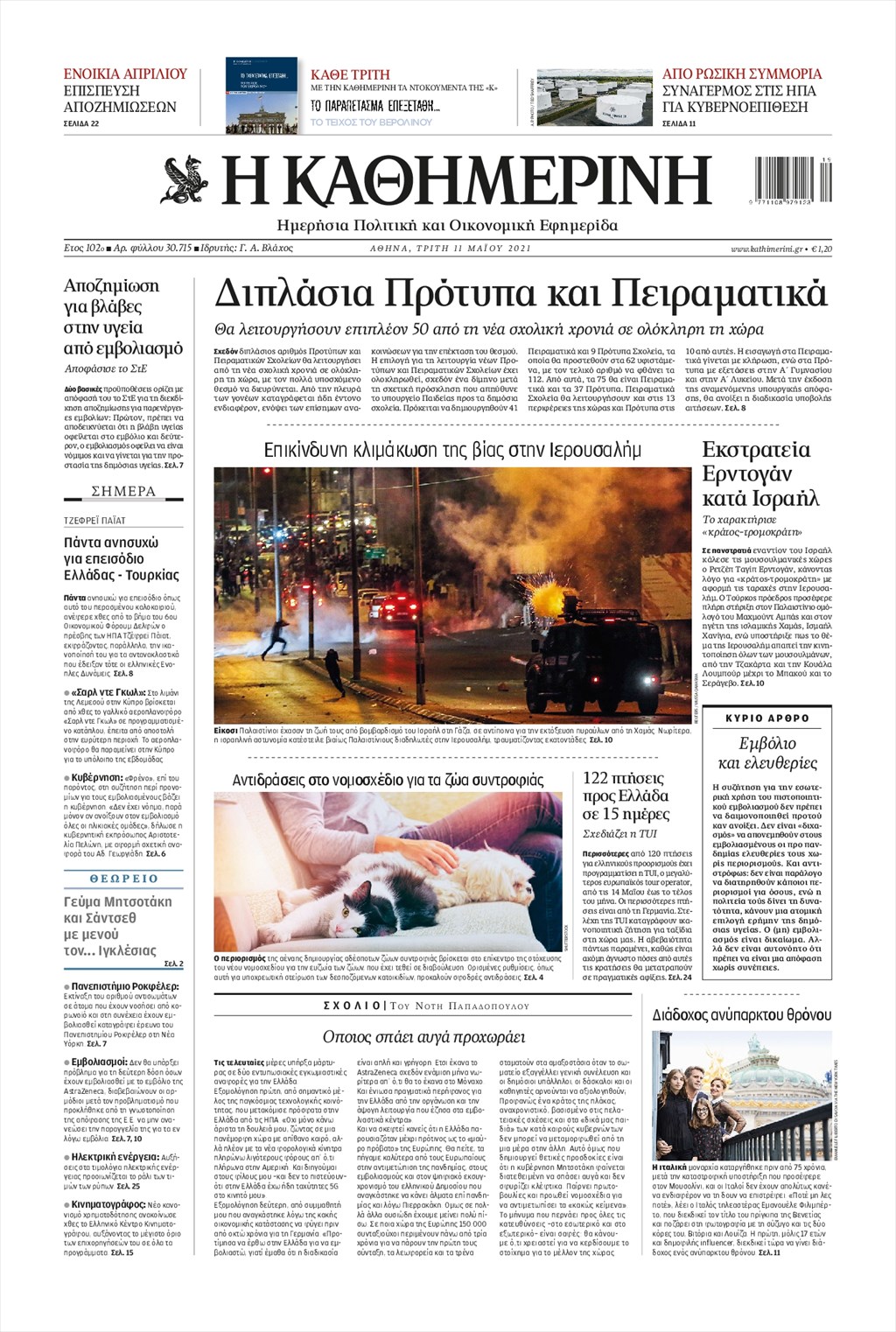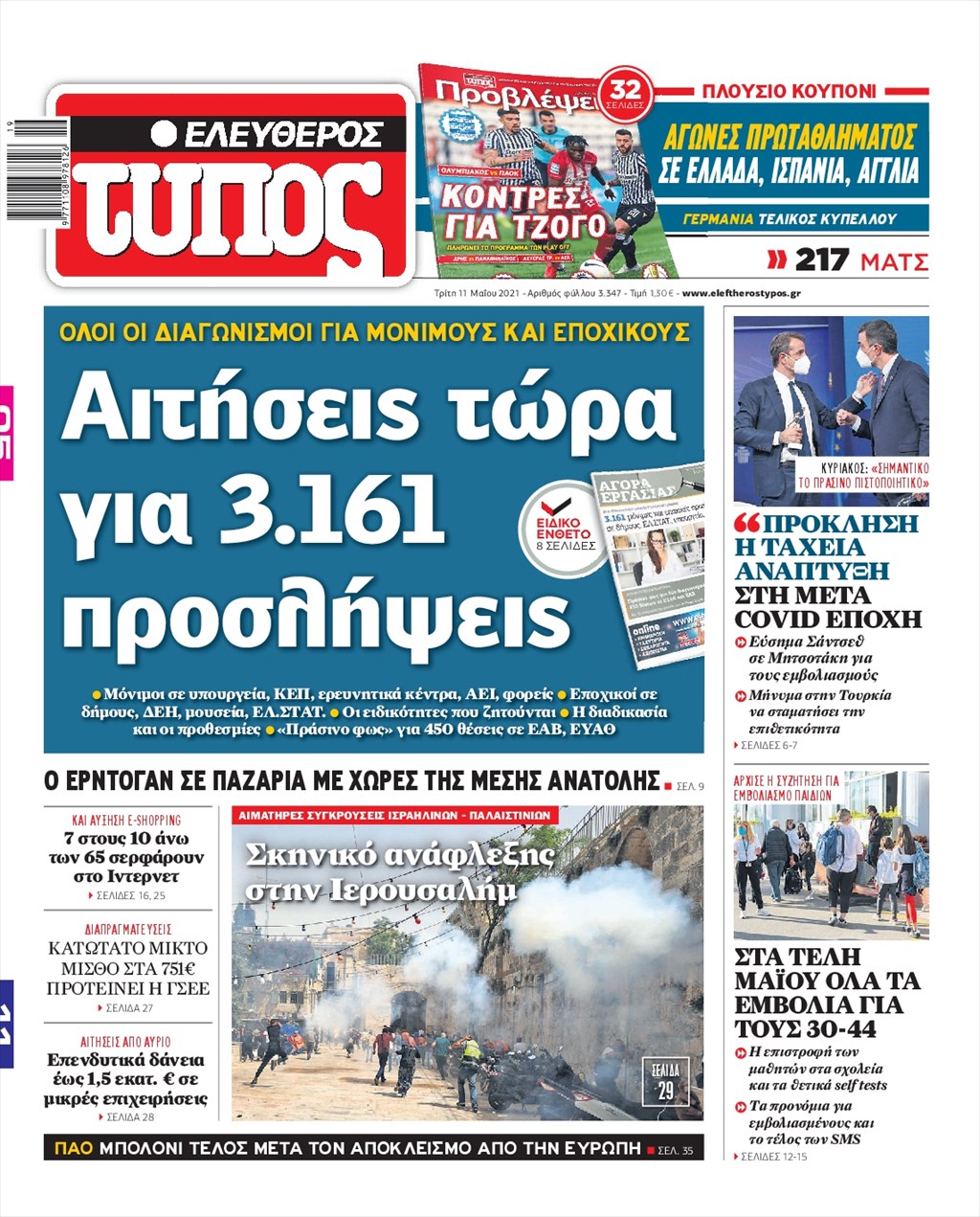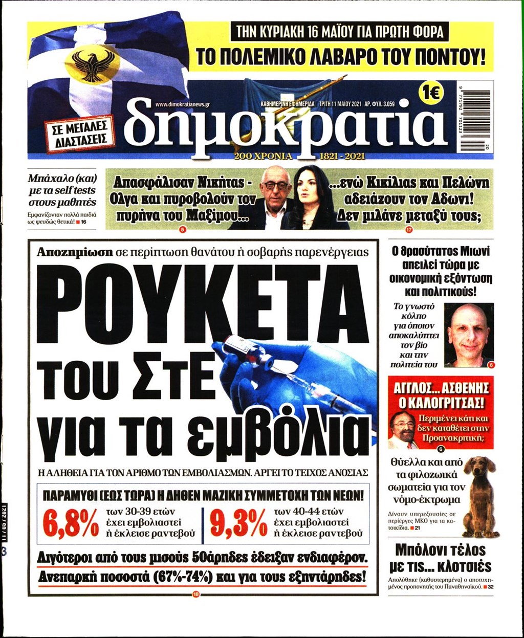 Τα πρωτοσέλιδα των εφημερίδων 11 Μαΐου