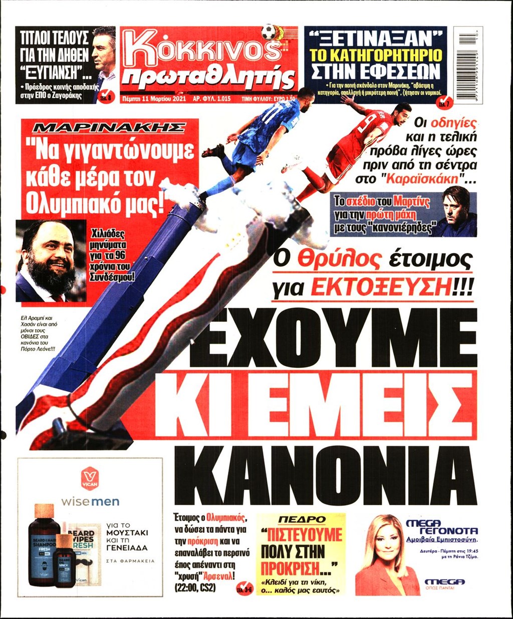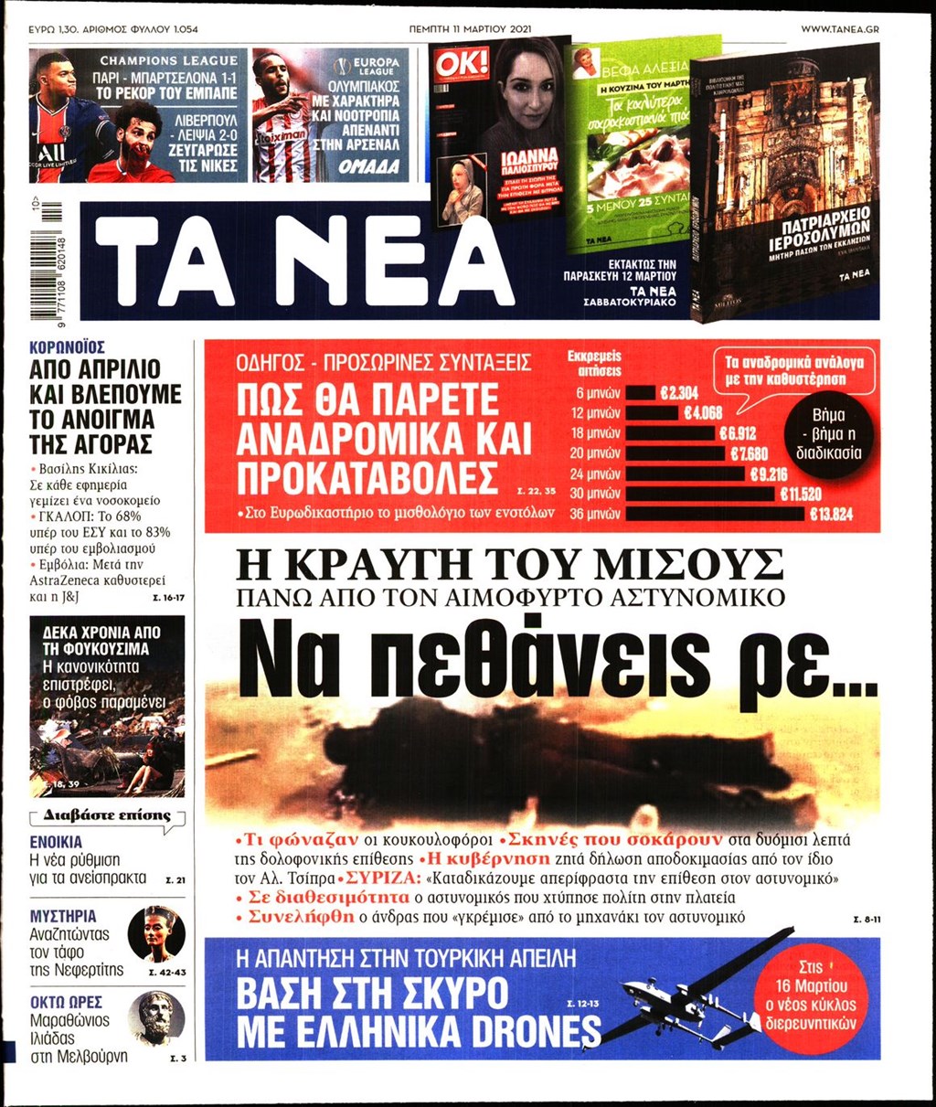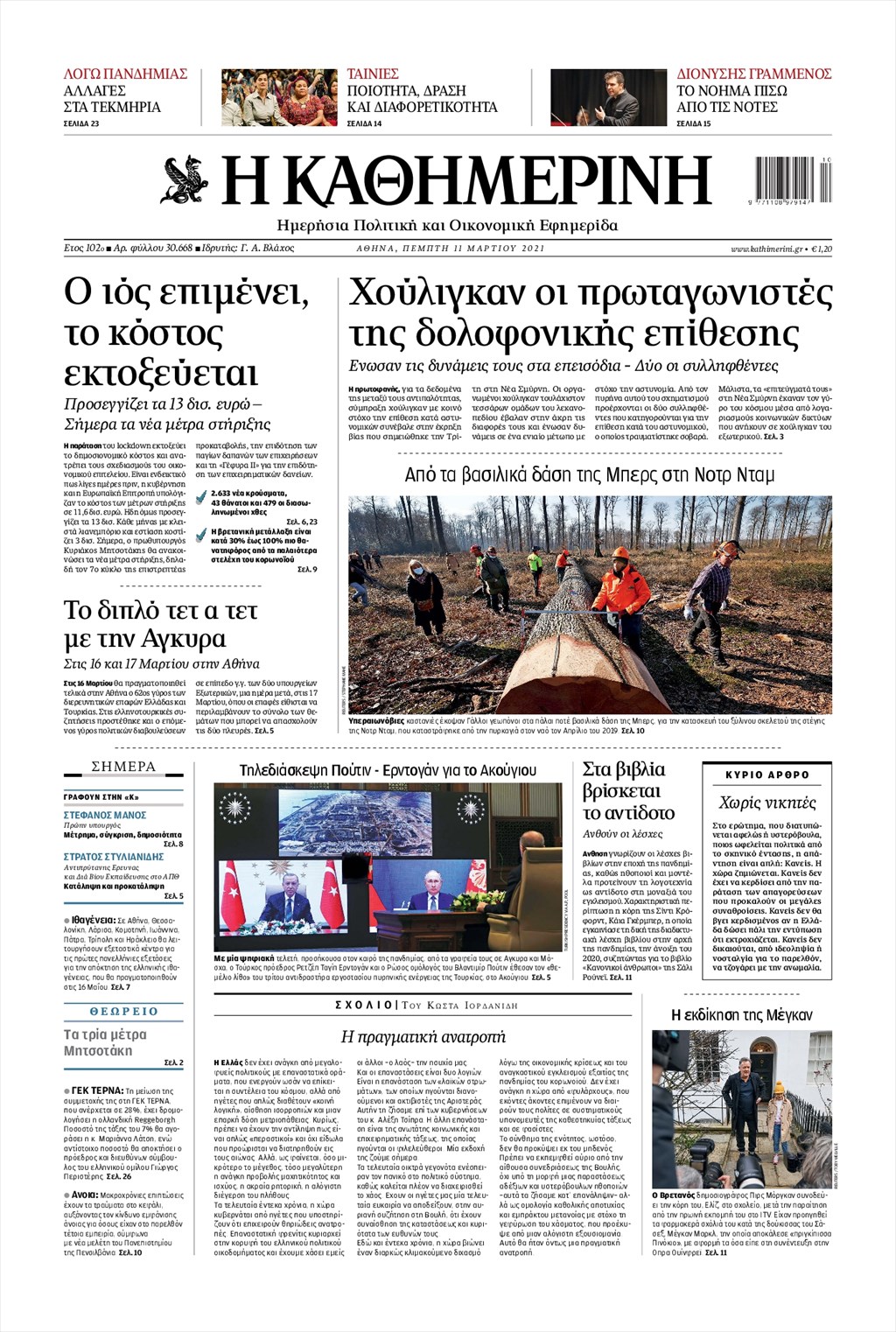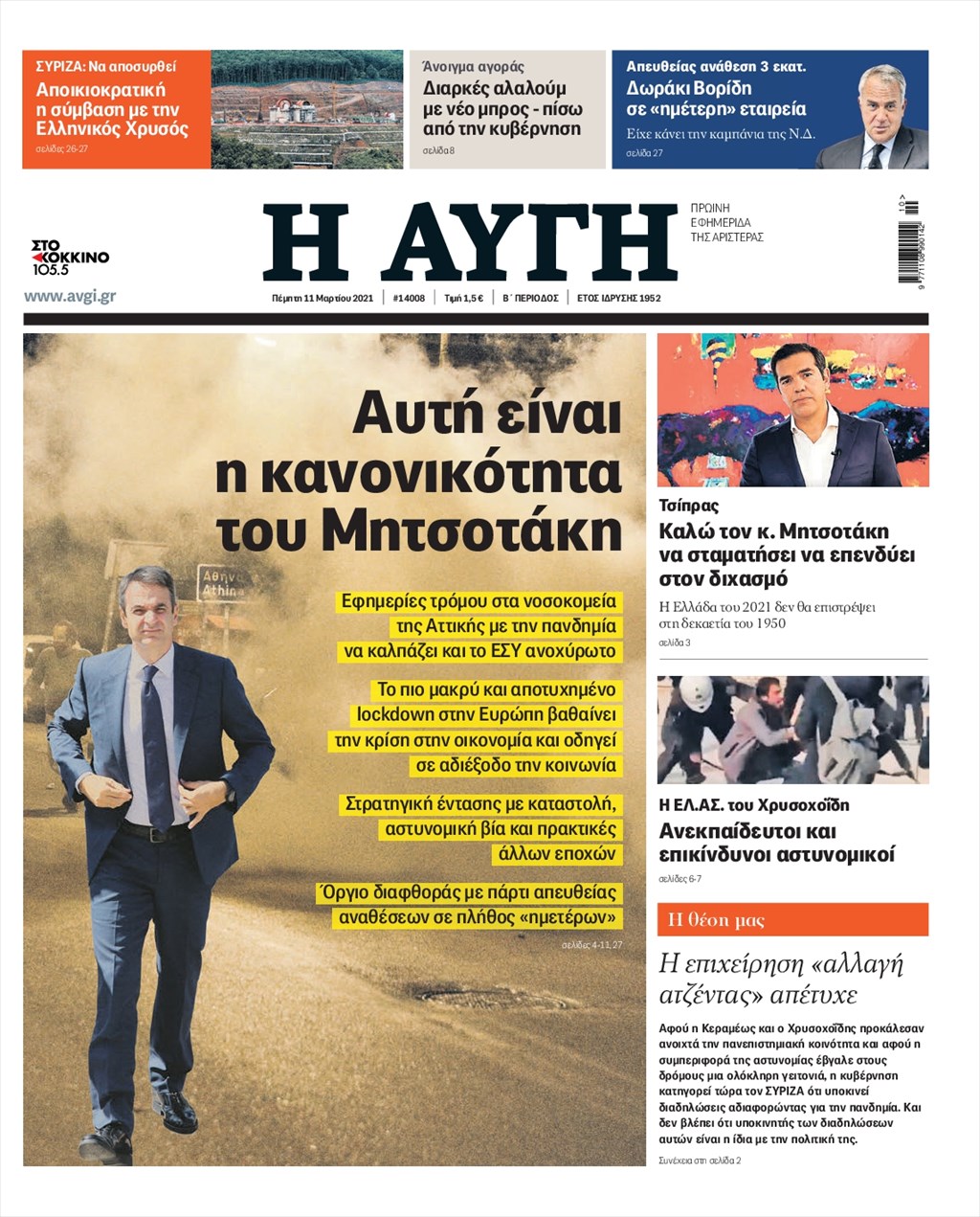 Τα πρωτοσέλιδα των εφημερίδων 11 Μαρτίου