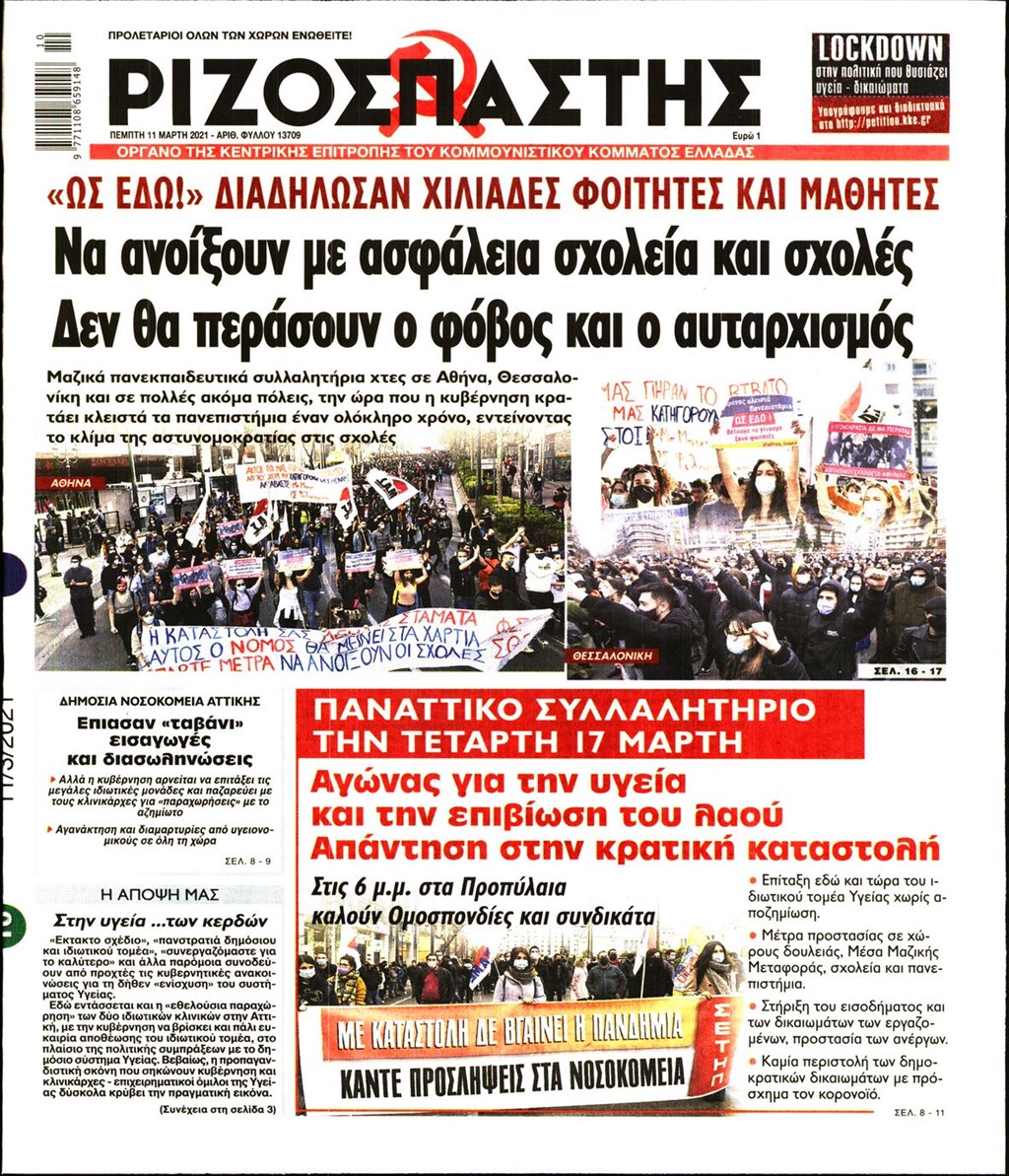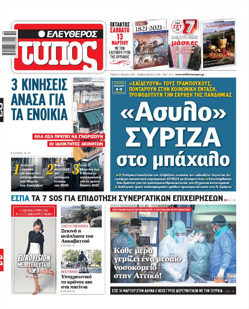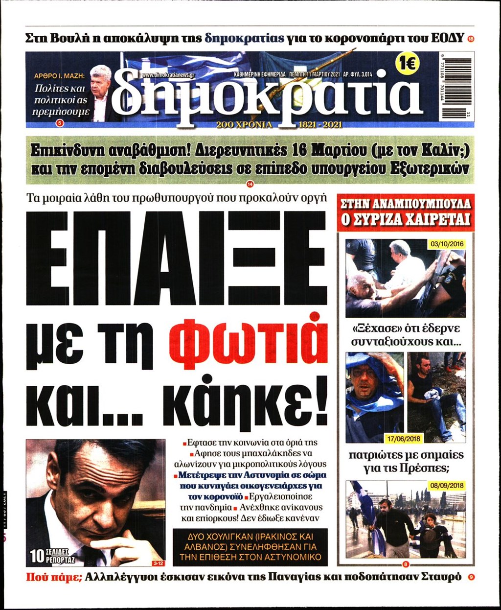 Τα πρωτοσέλιδα των εφημερίδων 11 Μαρτίου