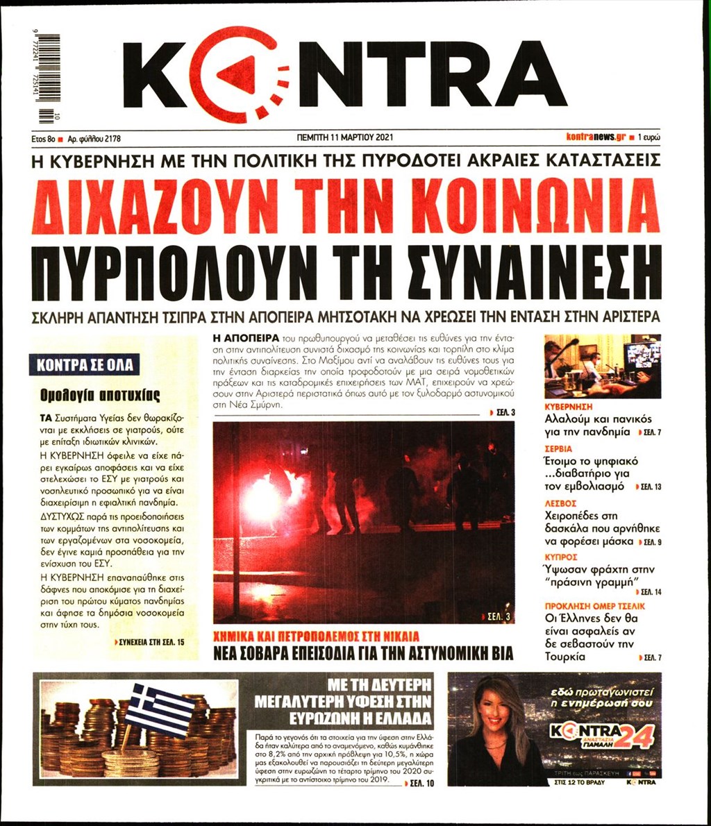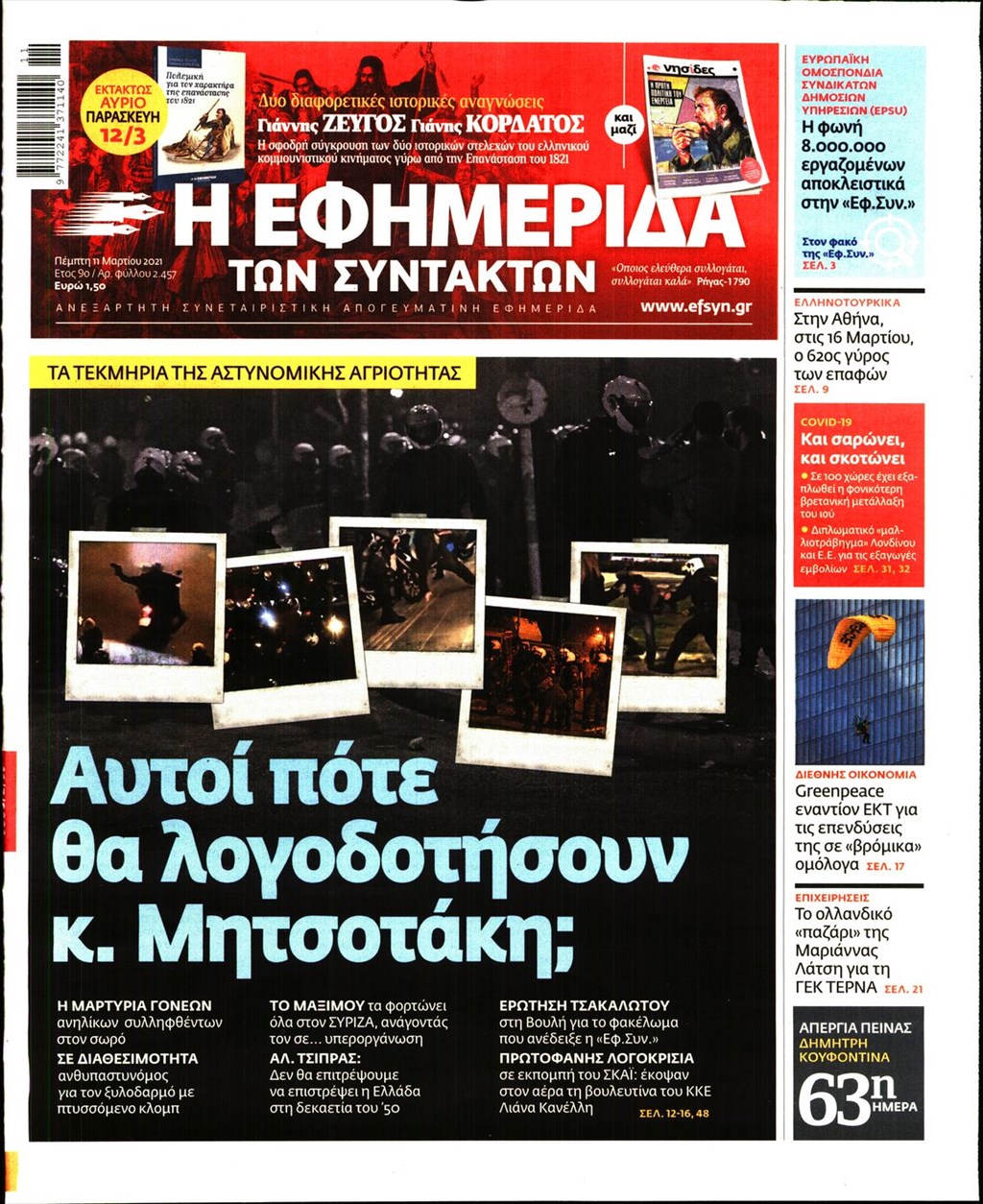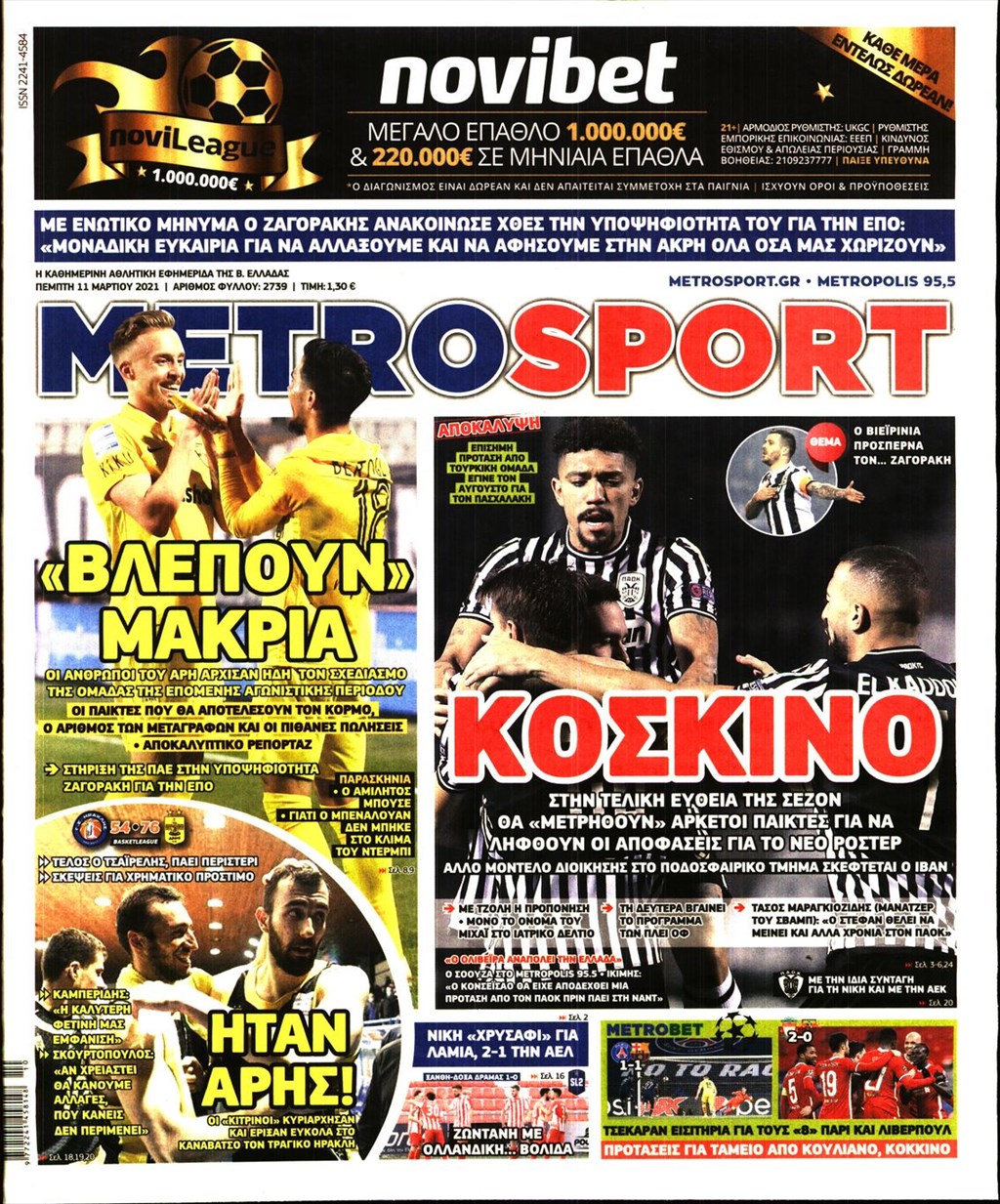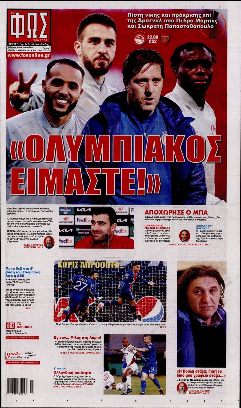 Τα πρωτοσέλιδα των εφημερίδων 11 Μαρτίου