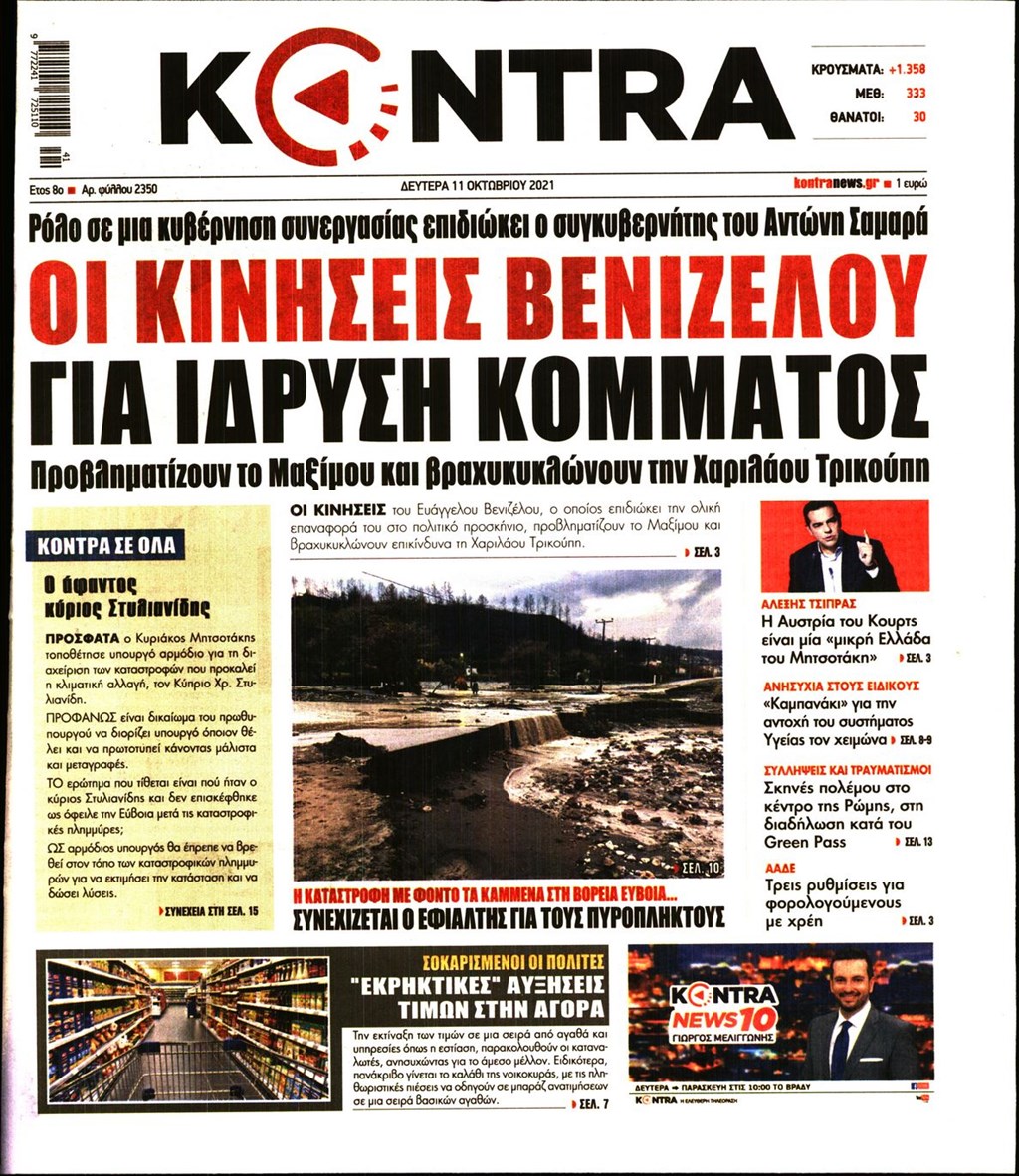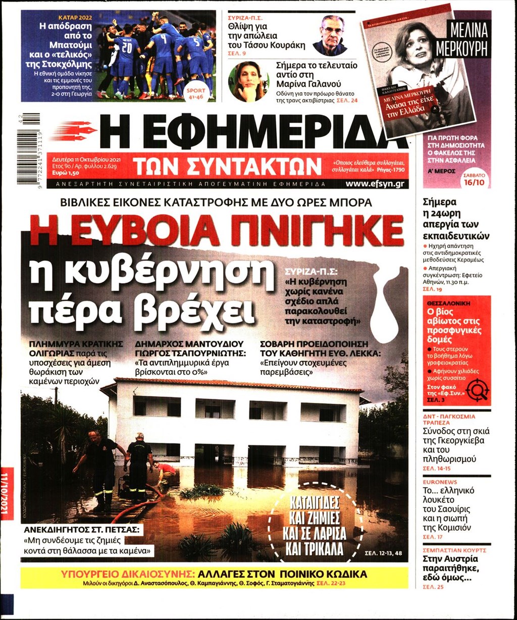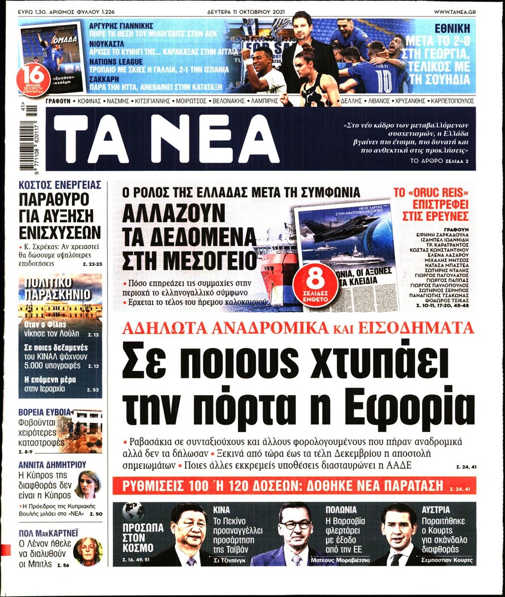 Τα πρωτοσέλιδα των εφημερίδων 11 Οκτωβρίου