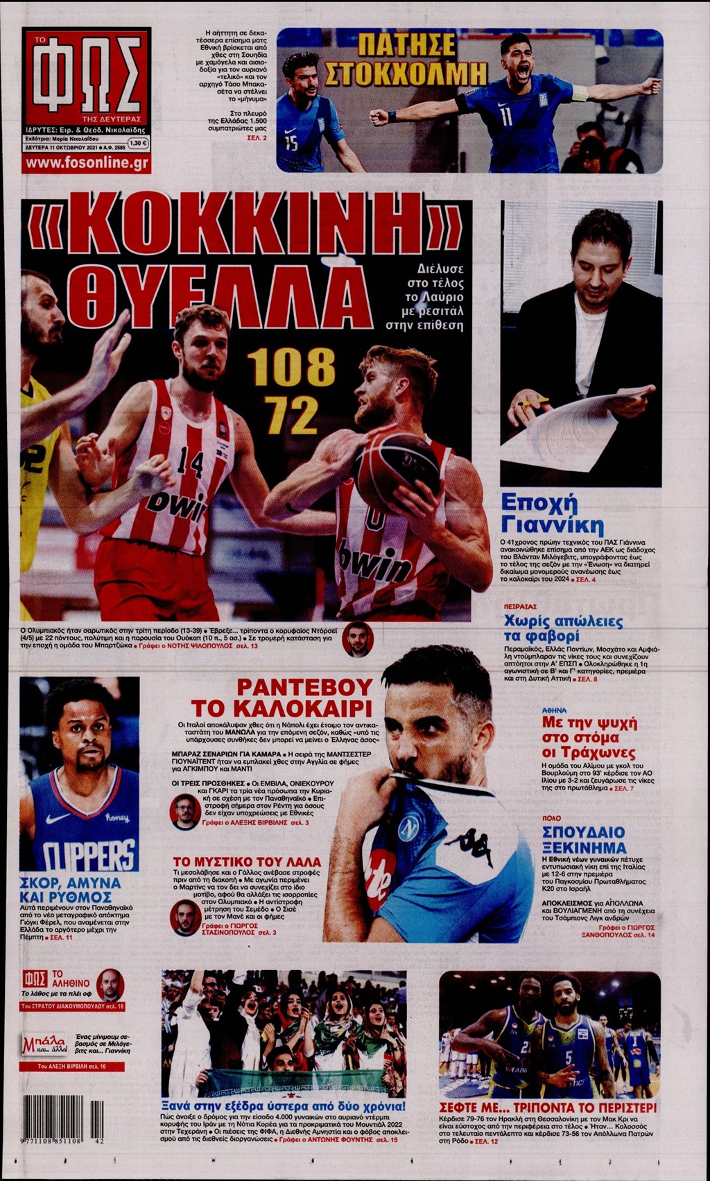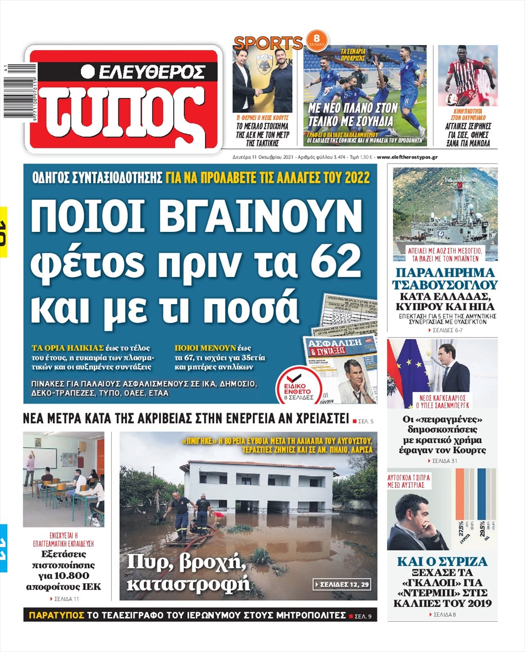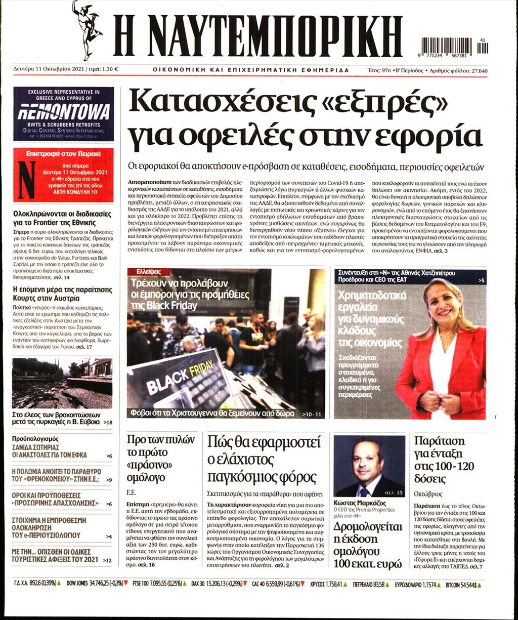 Τα πρωτοσέλιδα των εφημερίδων 11 Οκτωβρίου
