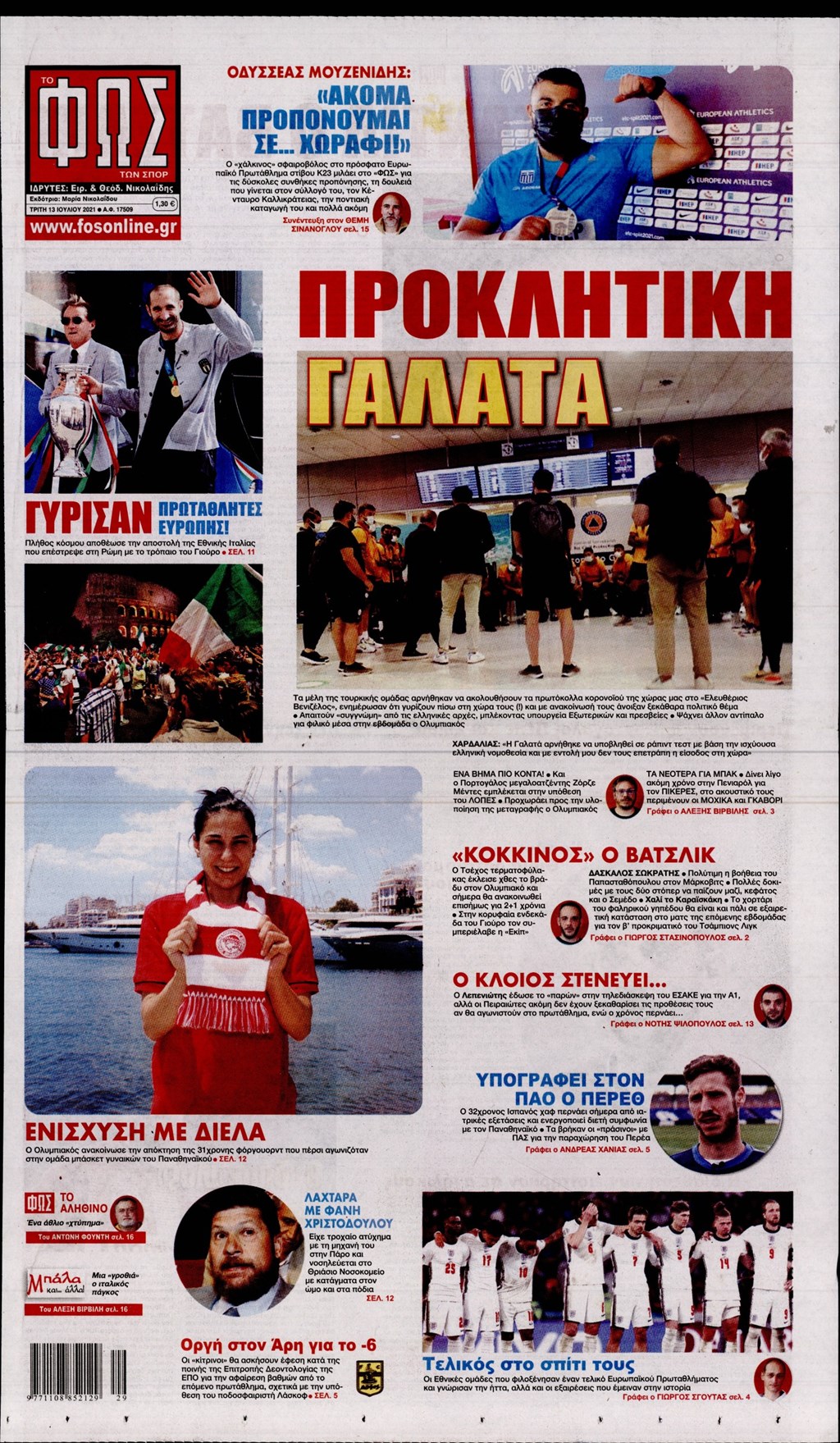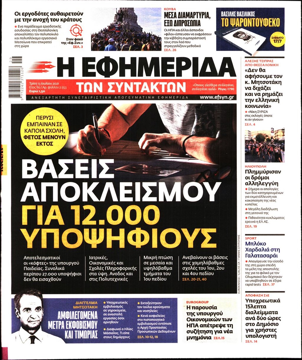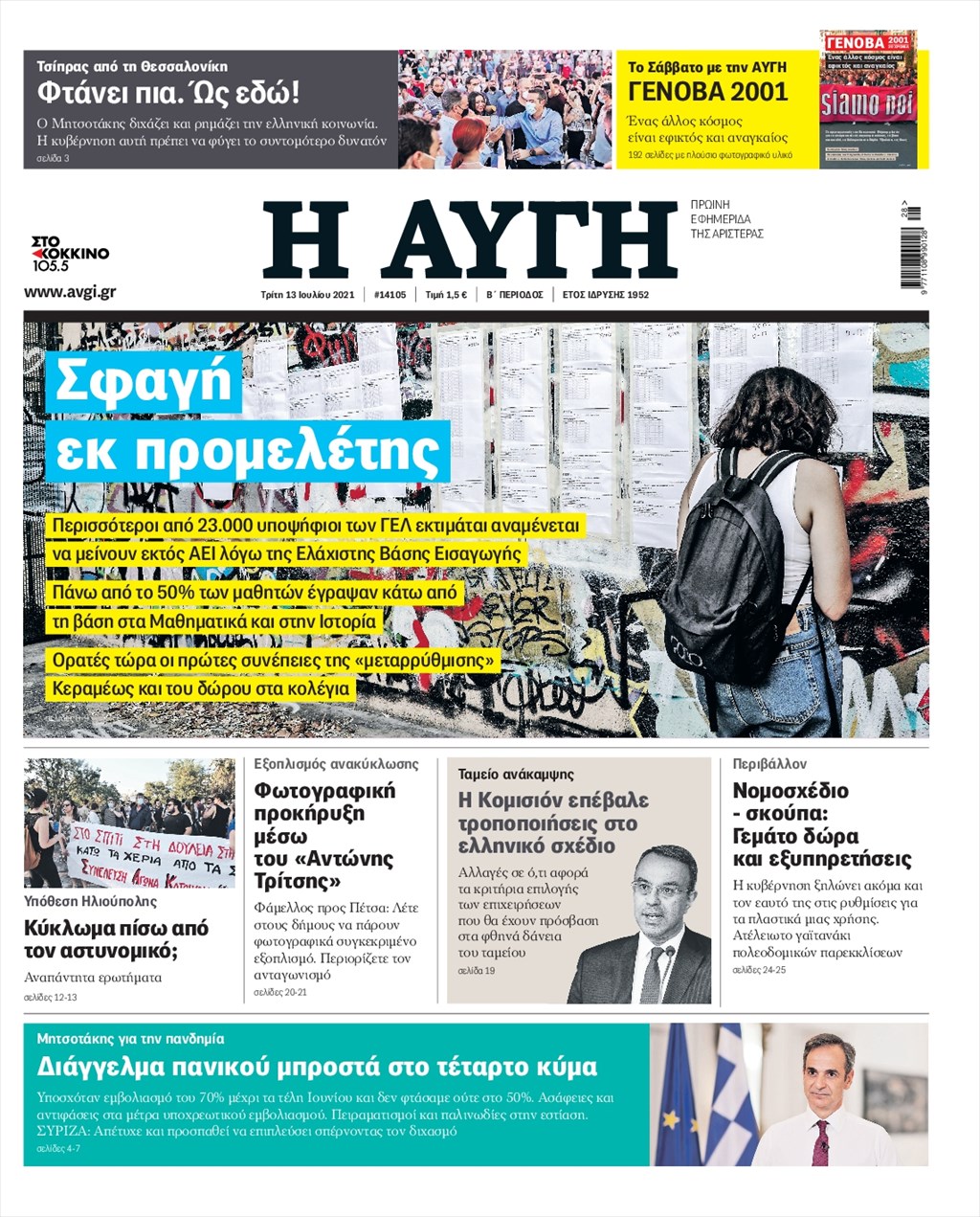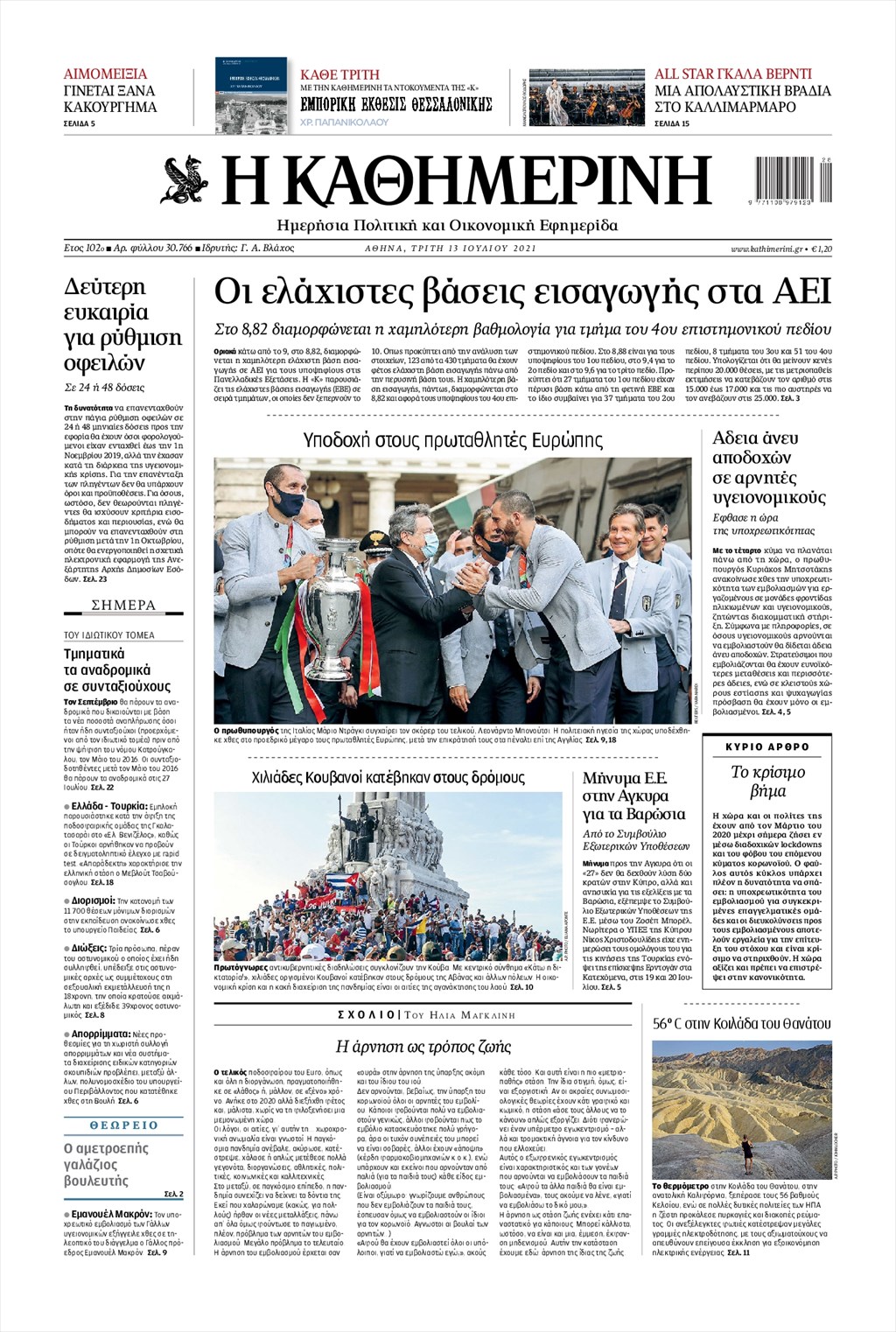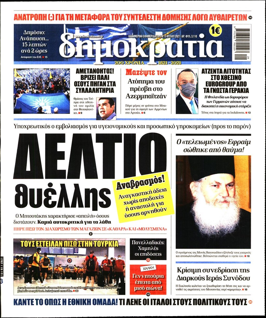 Τα πρωτοσέλιδα των εφημερίδων 13 Ιουλίου
