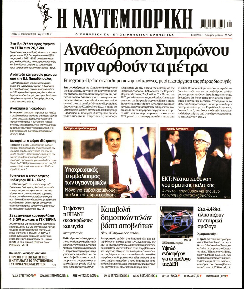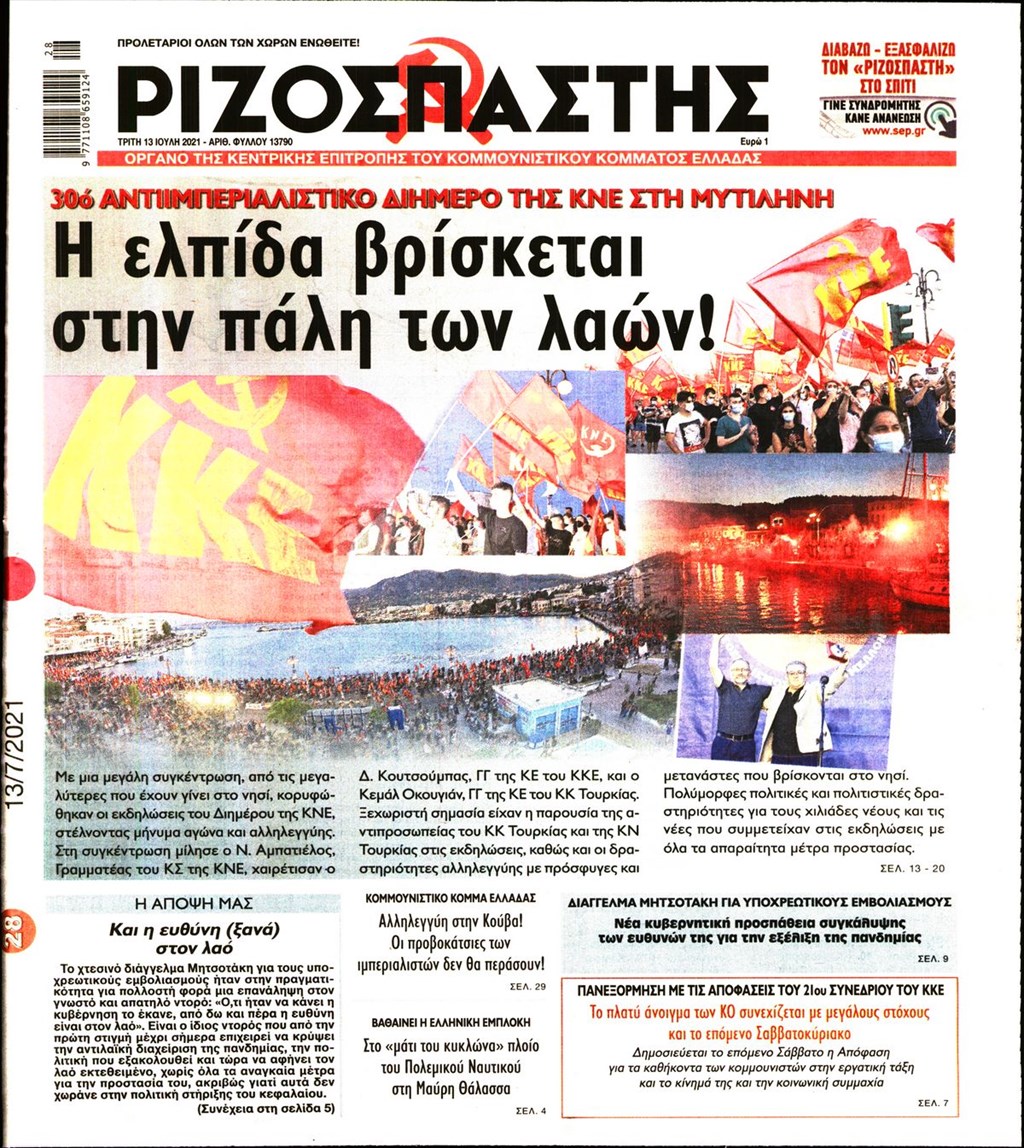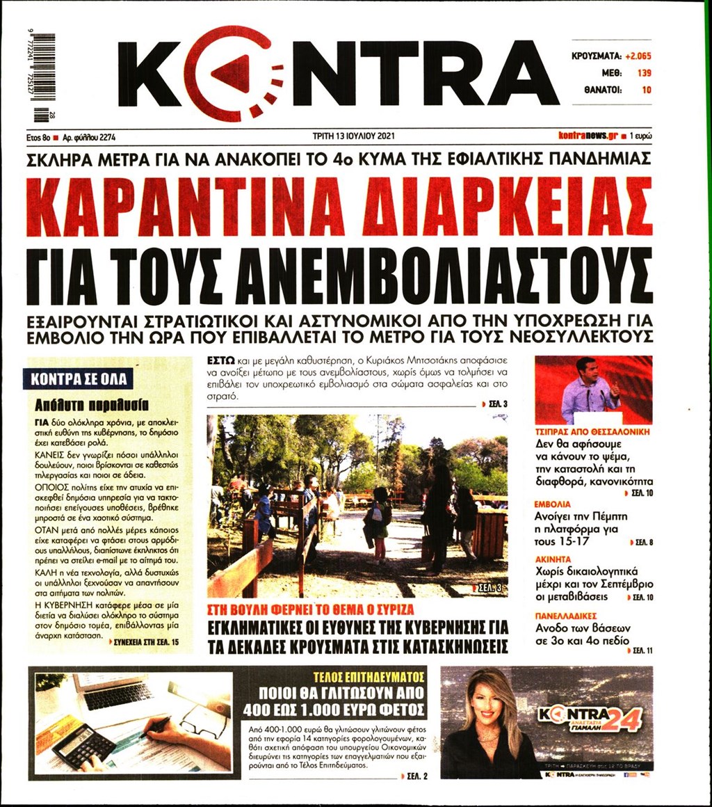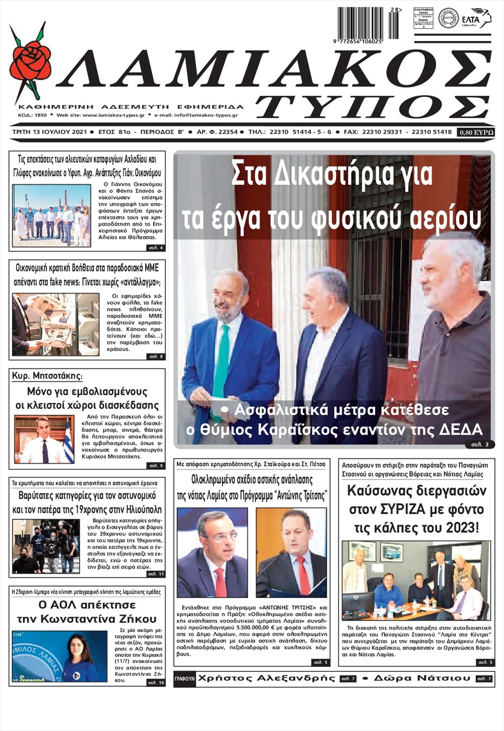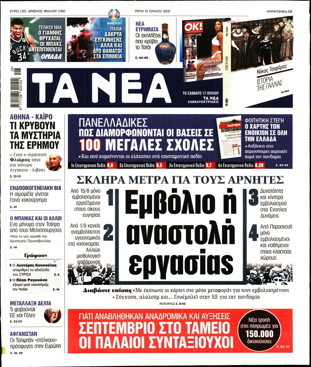 Τα πρωτοσέλιδα των εφημερίδων 13 Ιουλίου