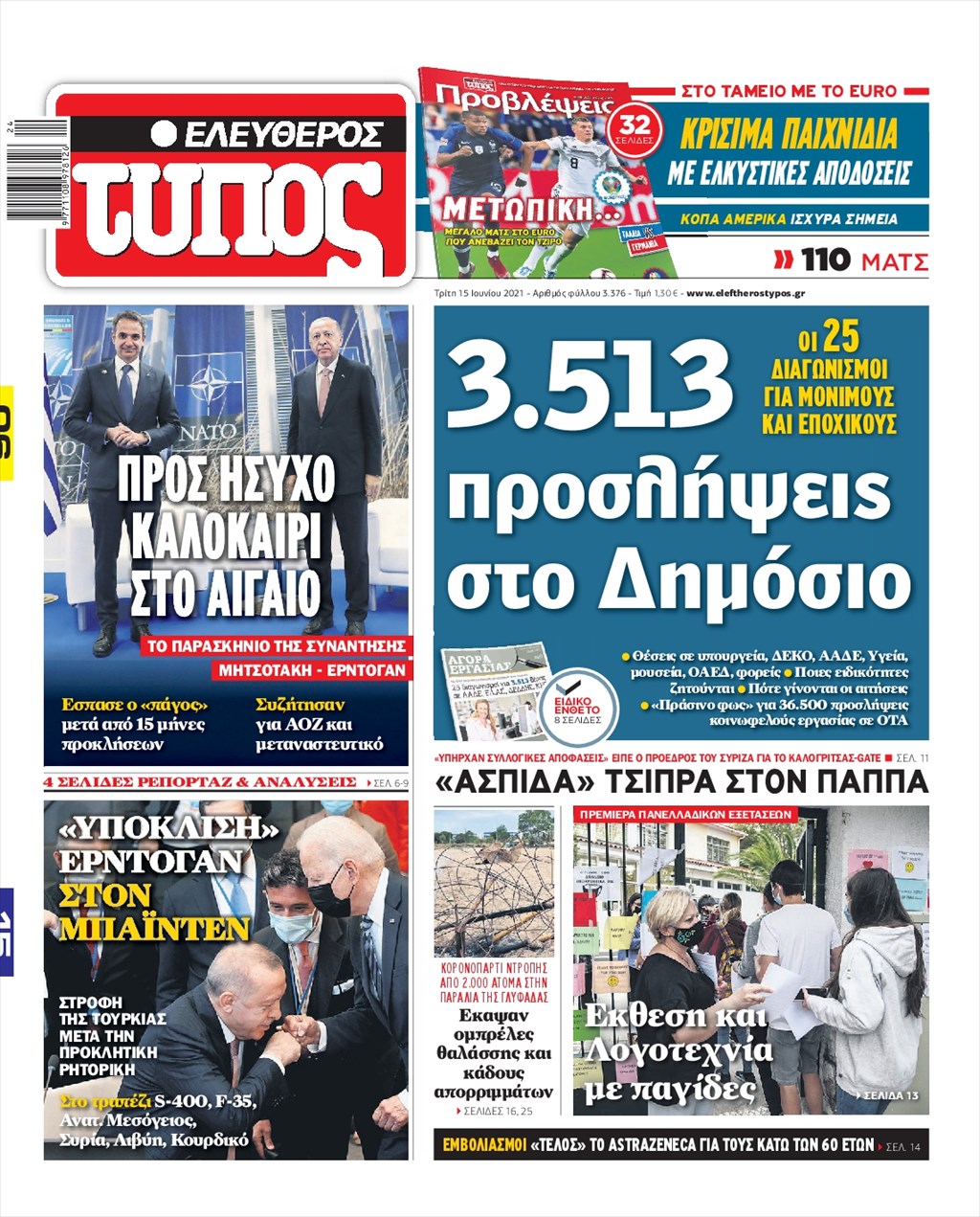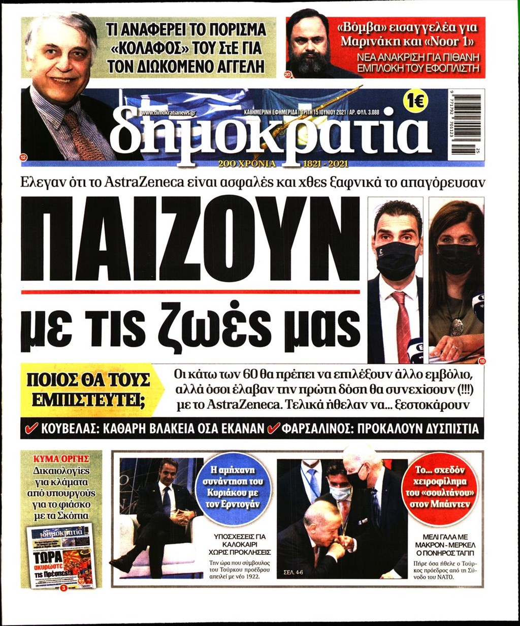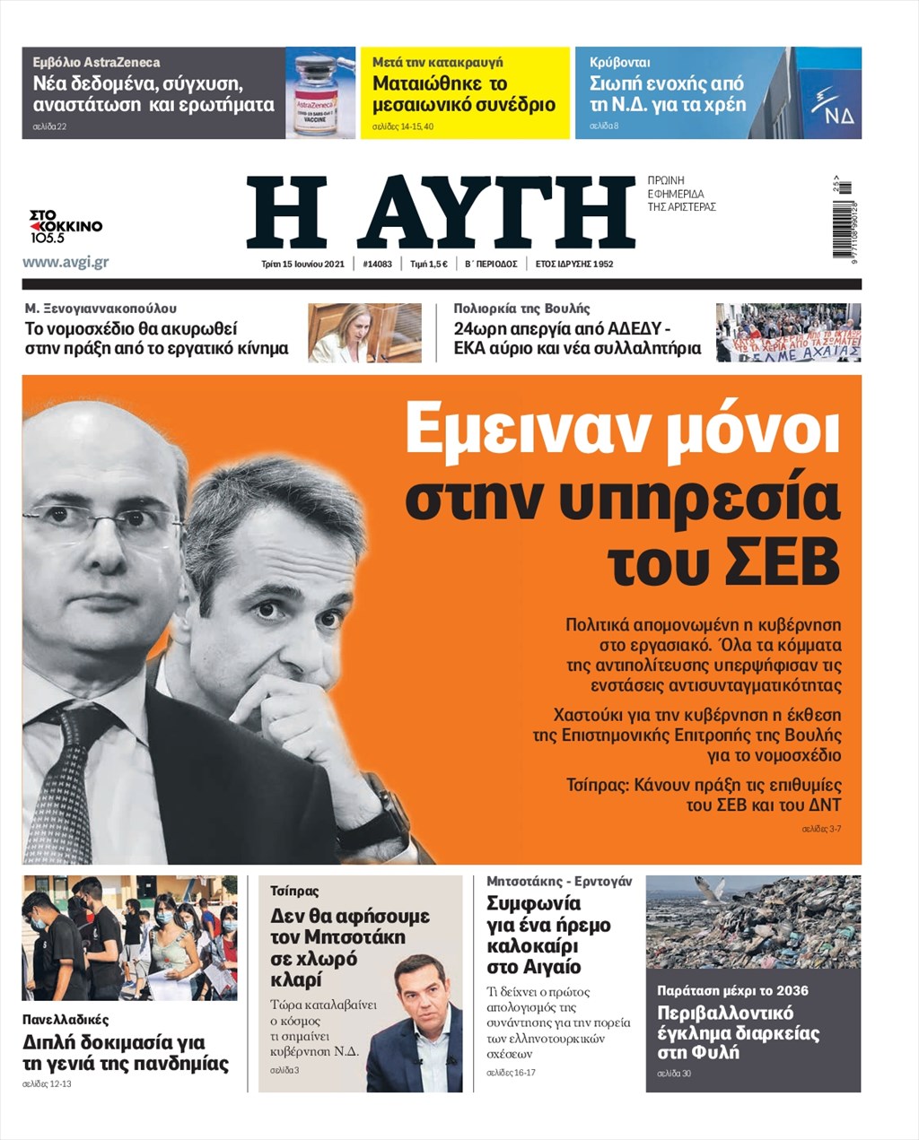 Τα πρωτοσέλιδα των εφημερίδων 15 Ιουνίου