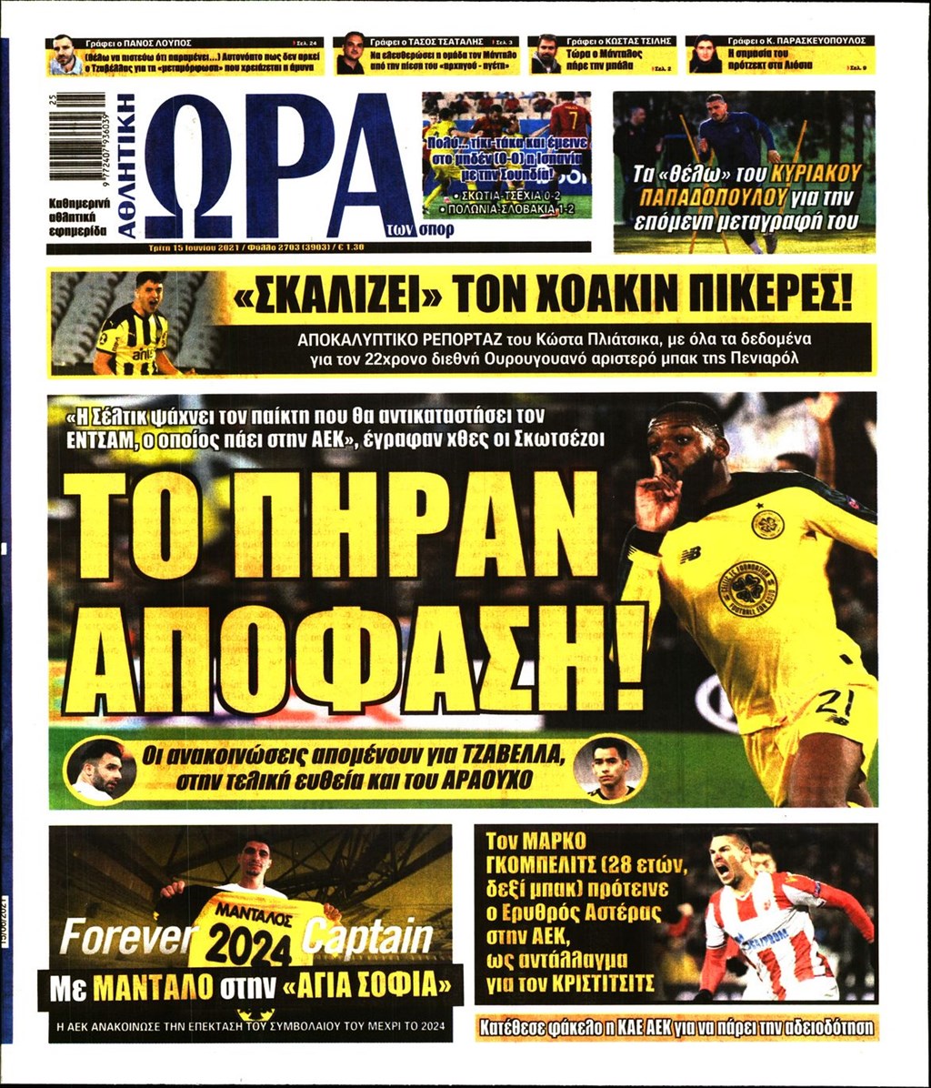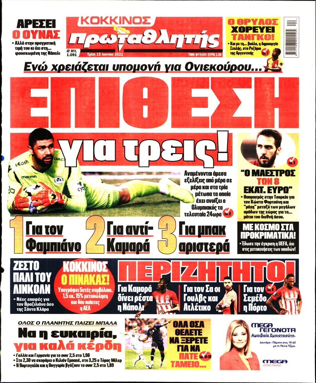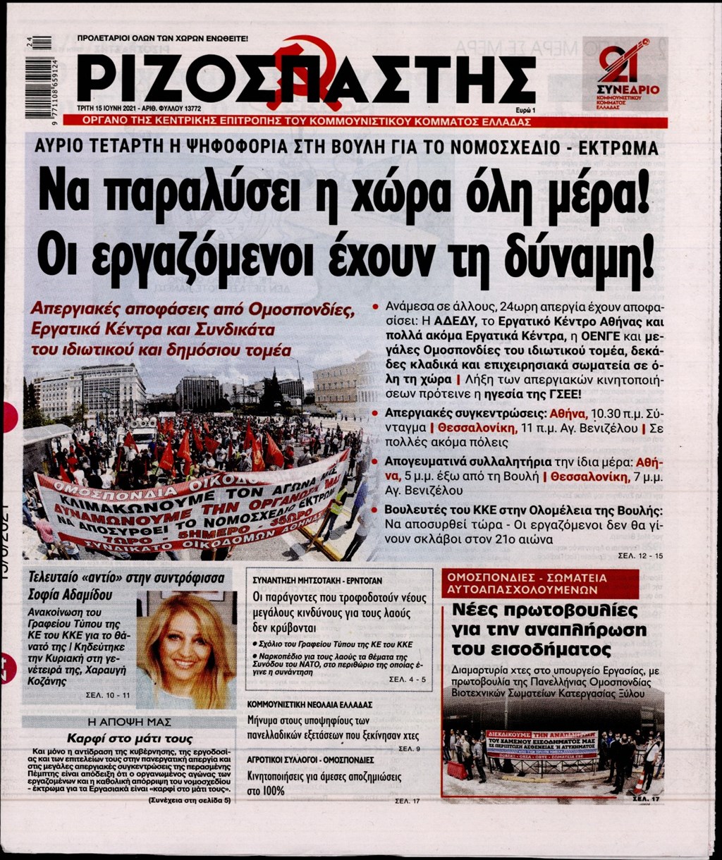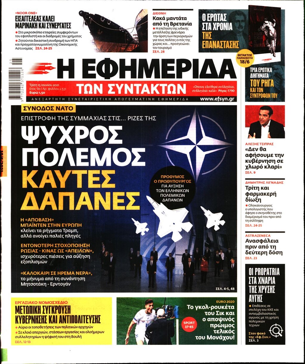 Τα πρωτοσέλιδα των εφημερίδων 15 Ιουνίου