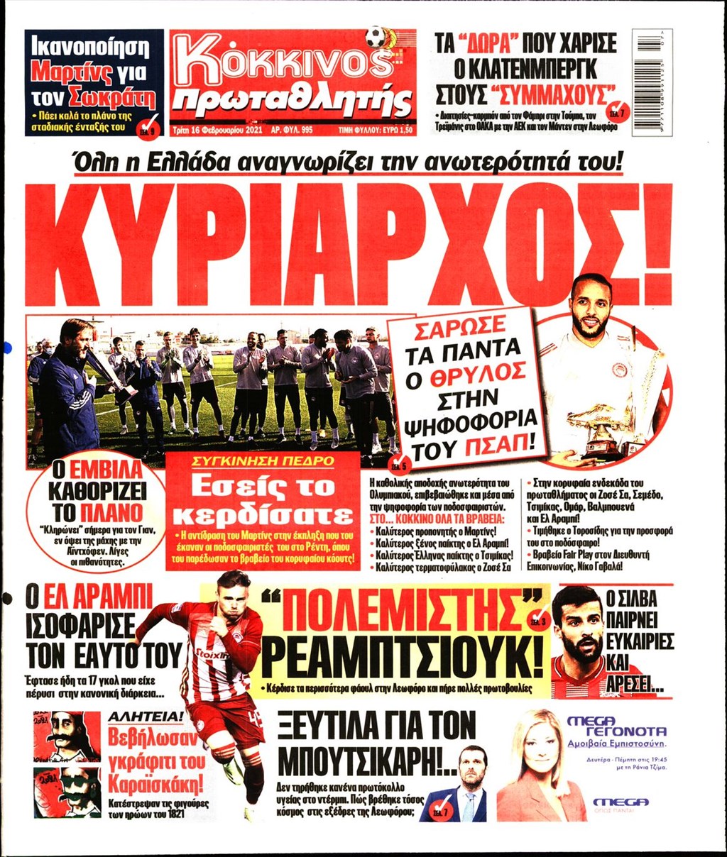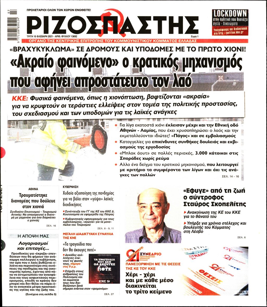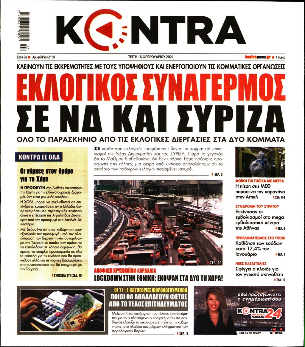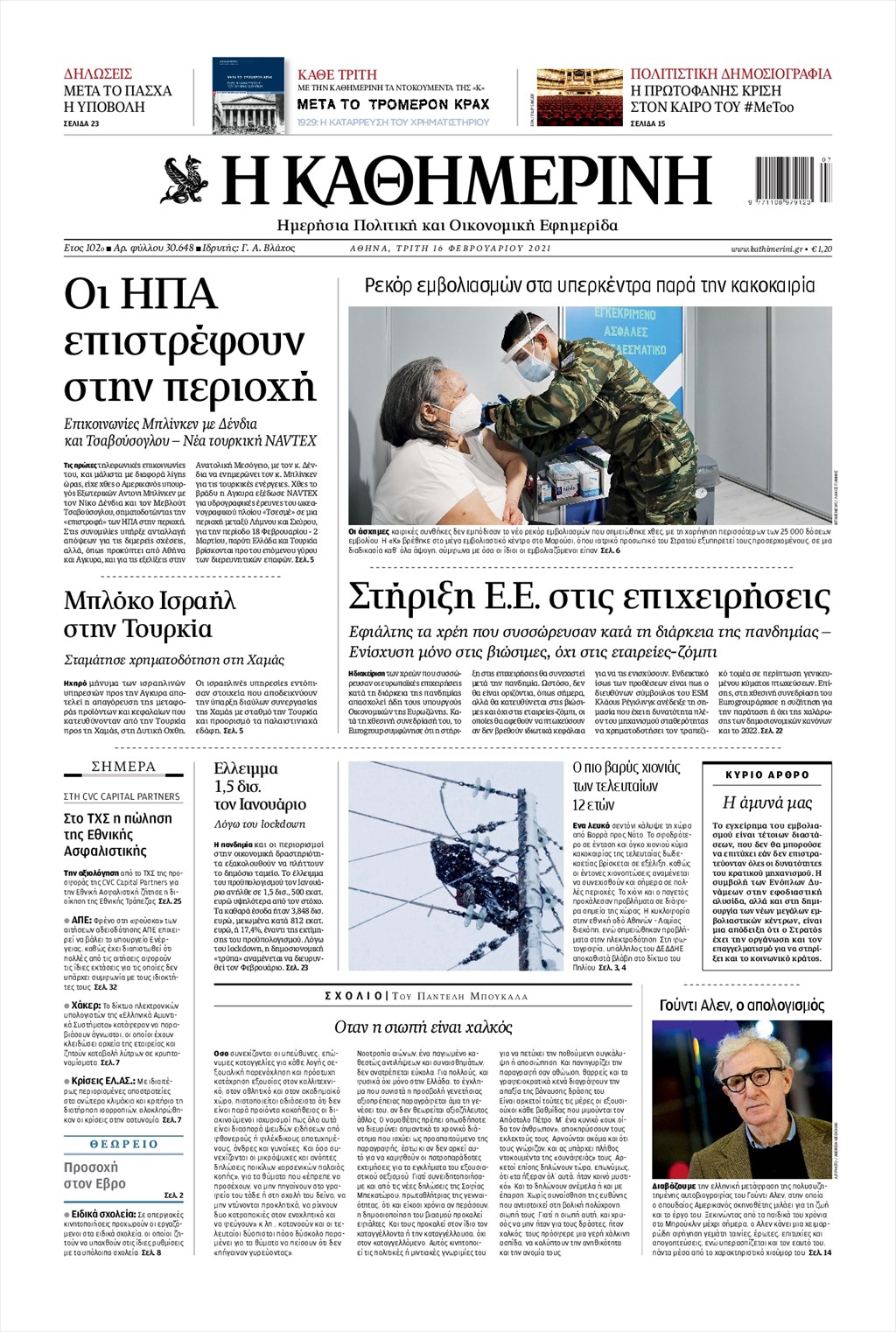 Τα πρωτοσέλιδα των εφημερίδων 16 Φεβρουαρίου