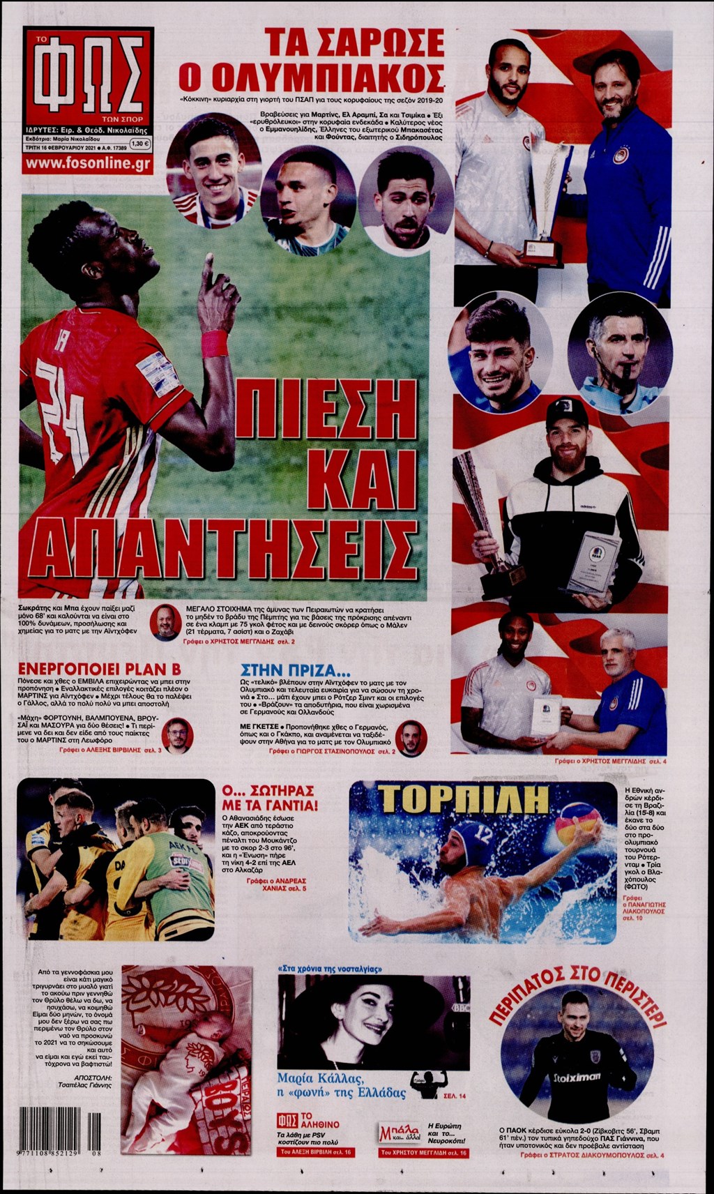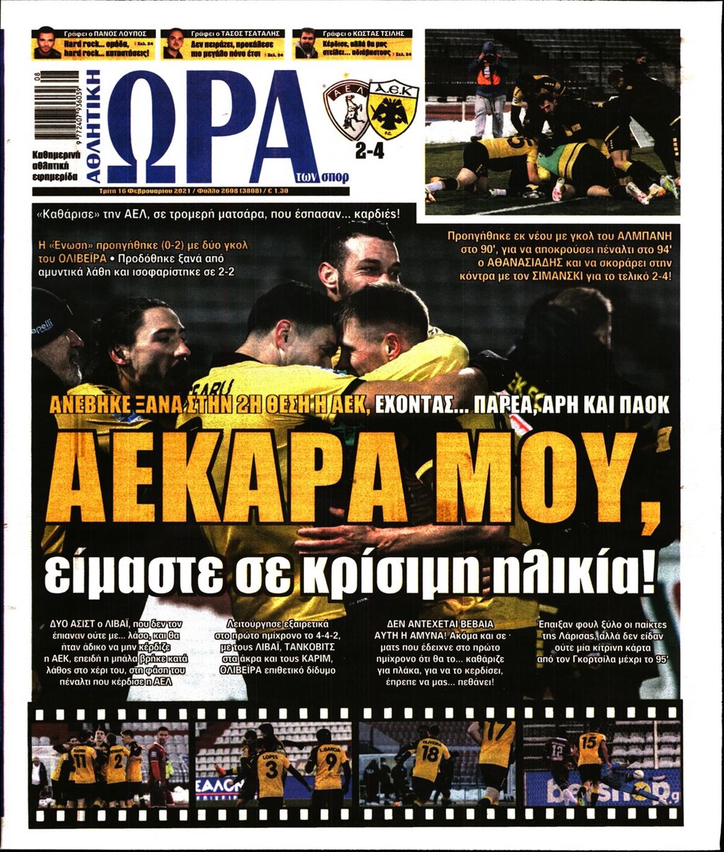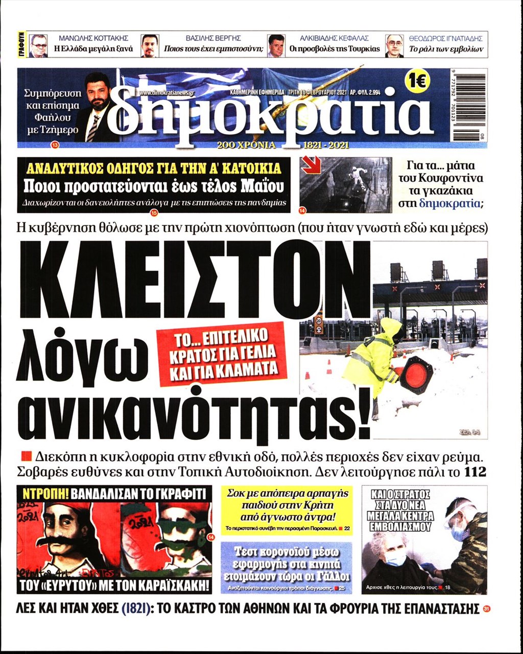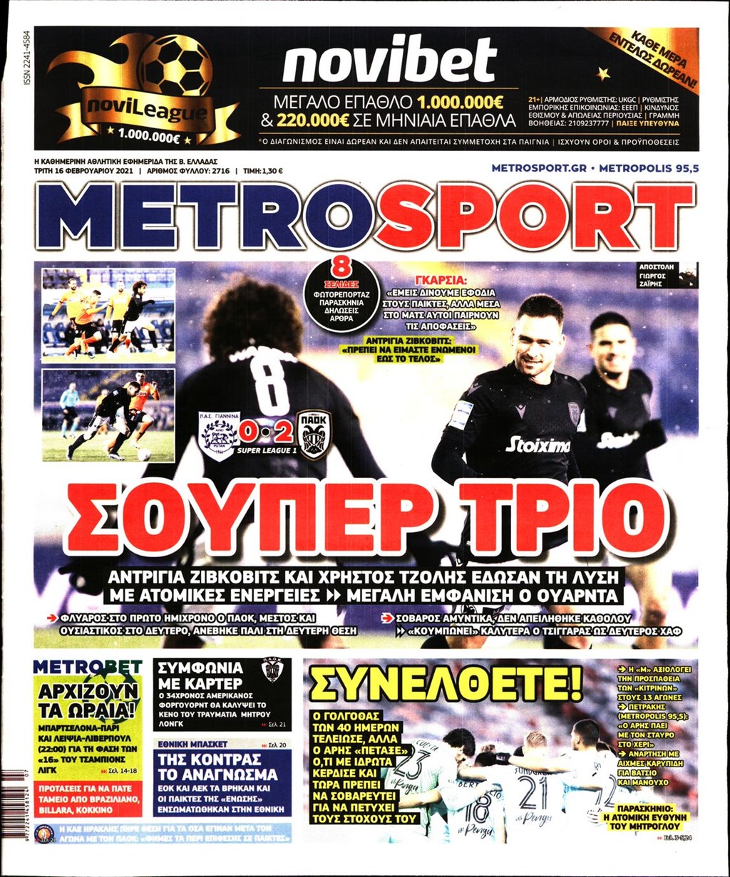Τα πρωτοσέλιδα των εφημερίδων 16 Φεβρουαρίου