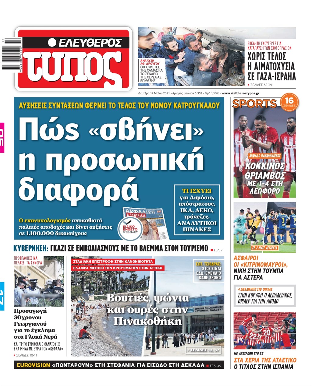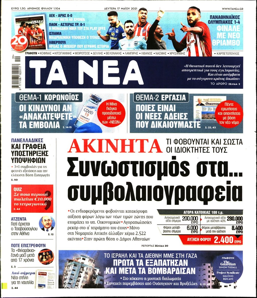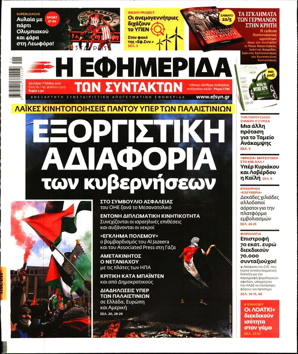 Τα πρωτοσέλιδα των εφημερίδων 17 Μαΐου