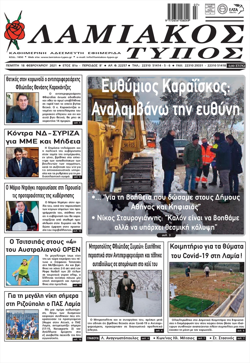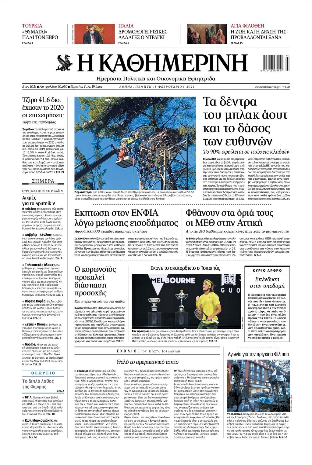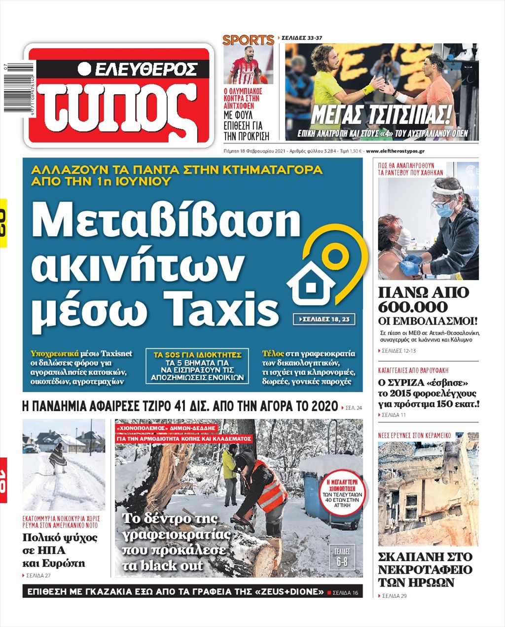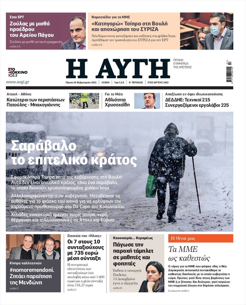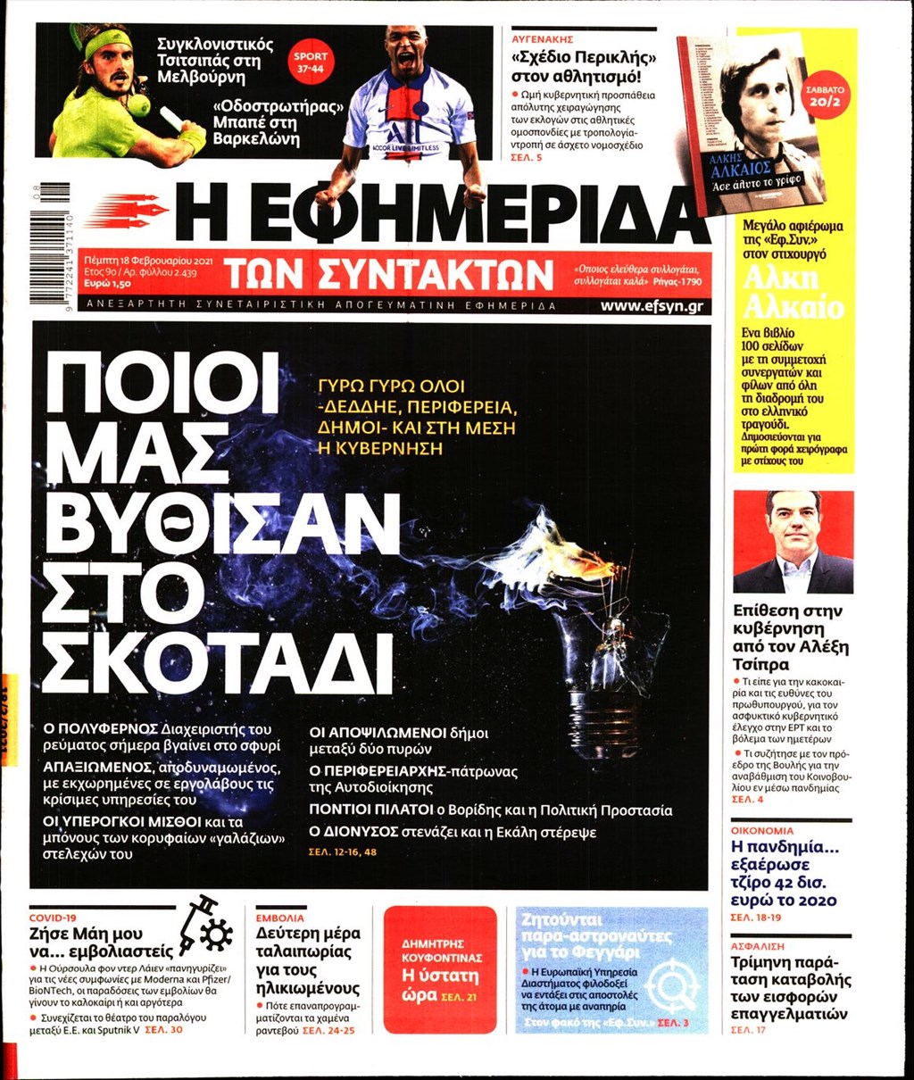 Τα πρωτοσέλιδα των εφημερίδων 18 Φεβρουαρίου