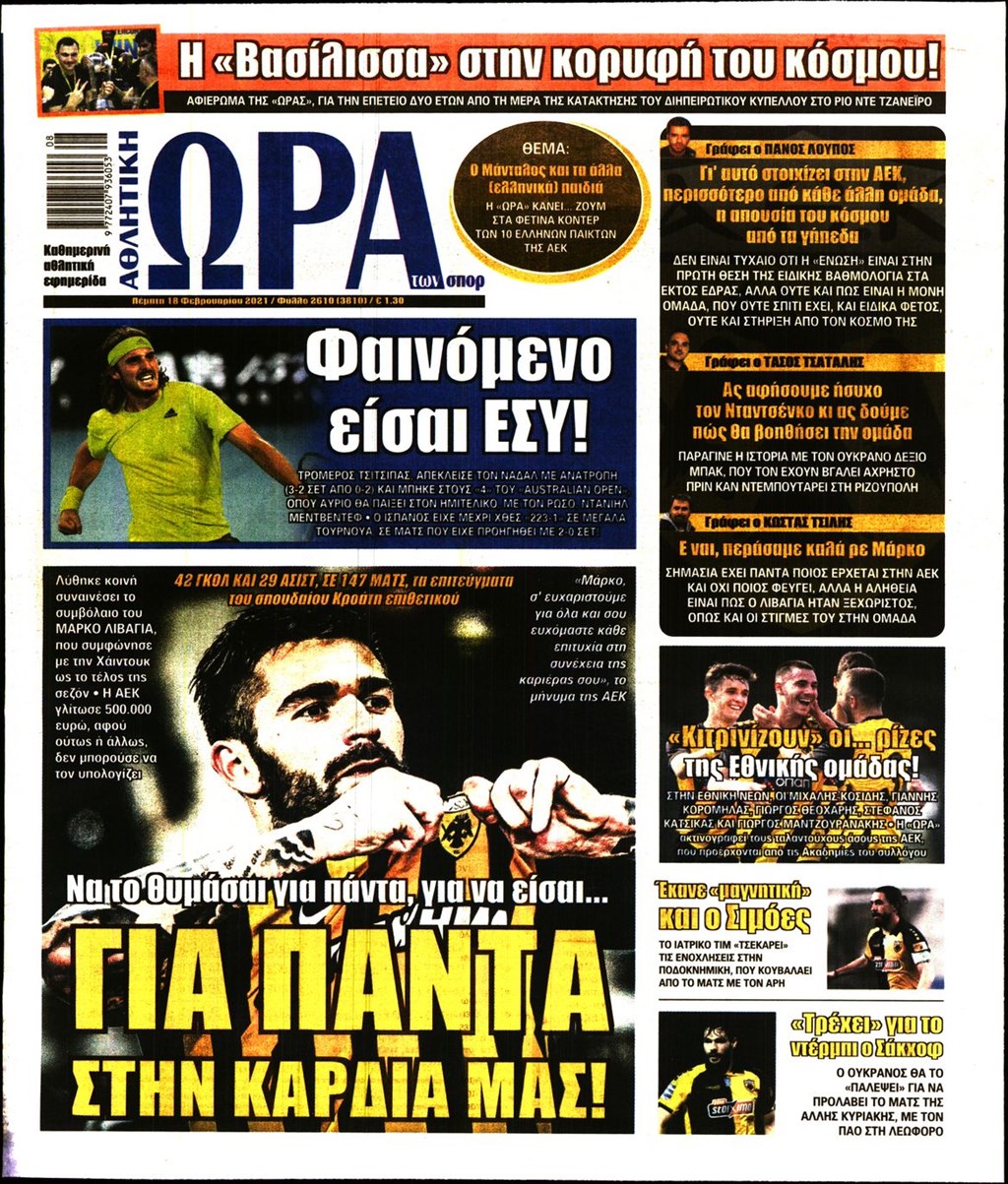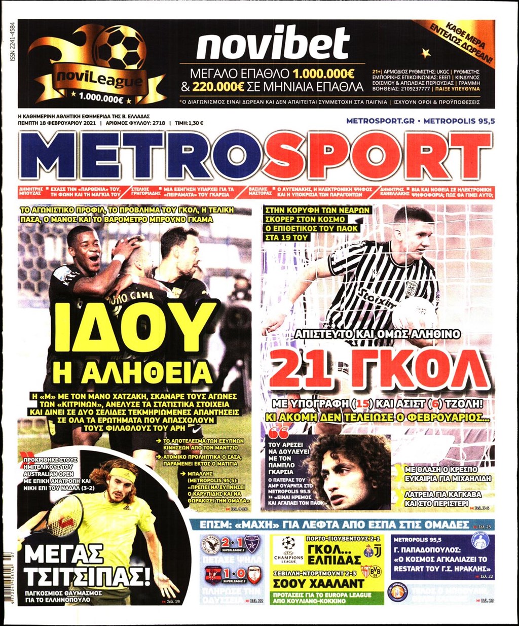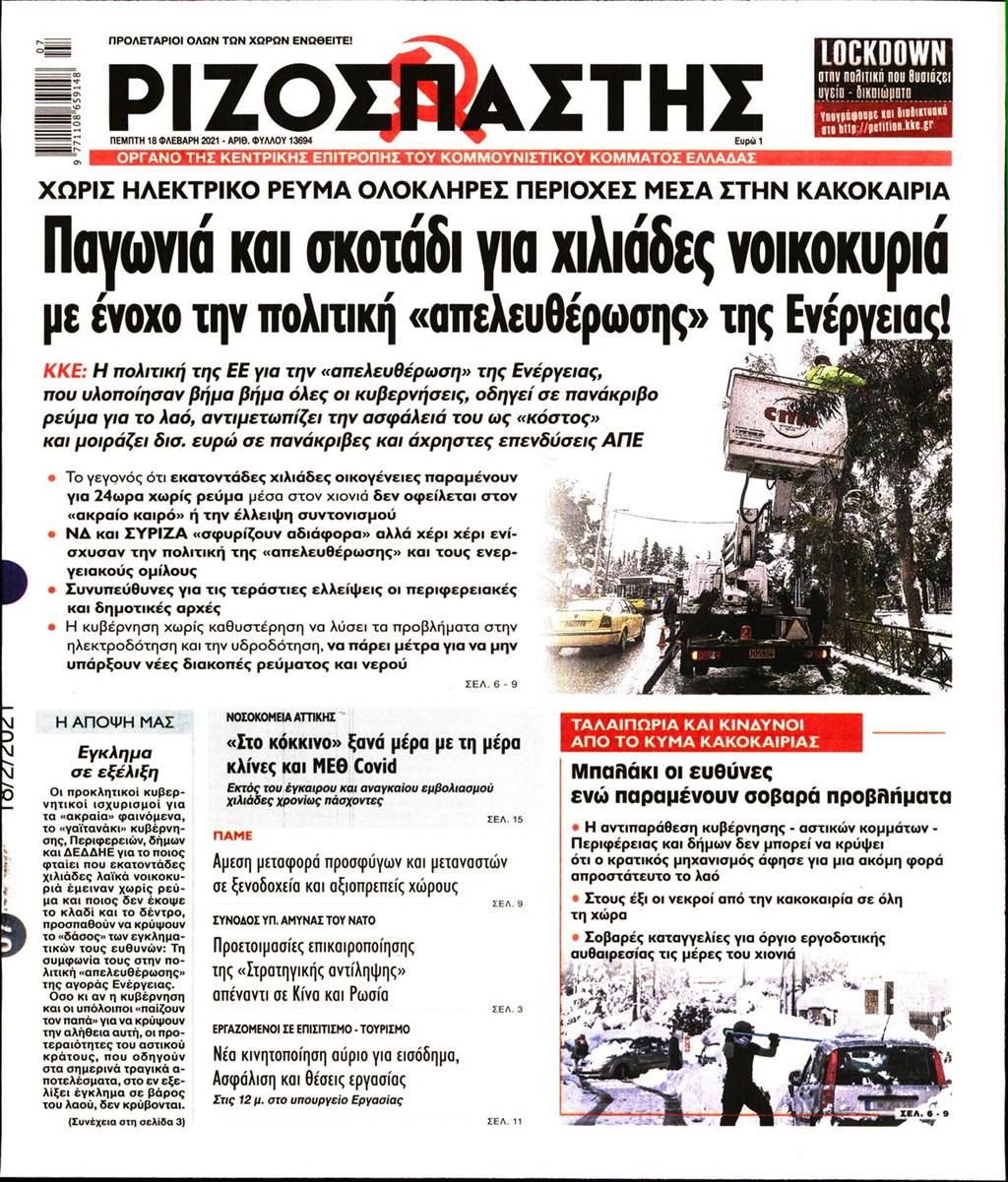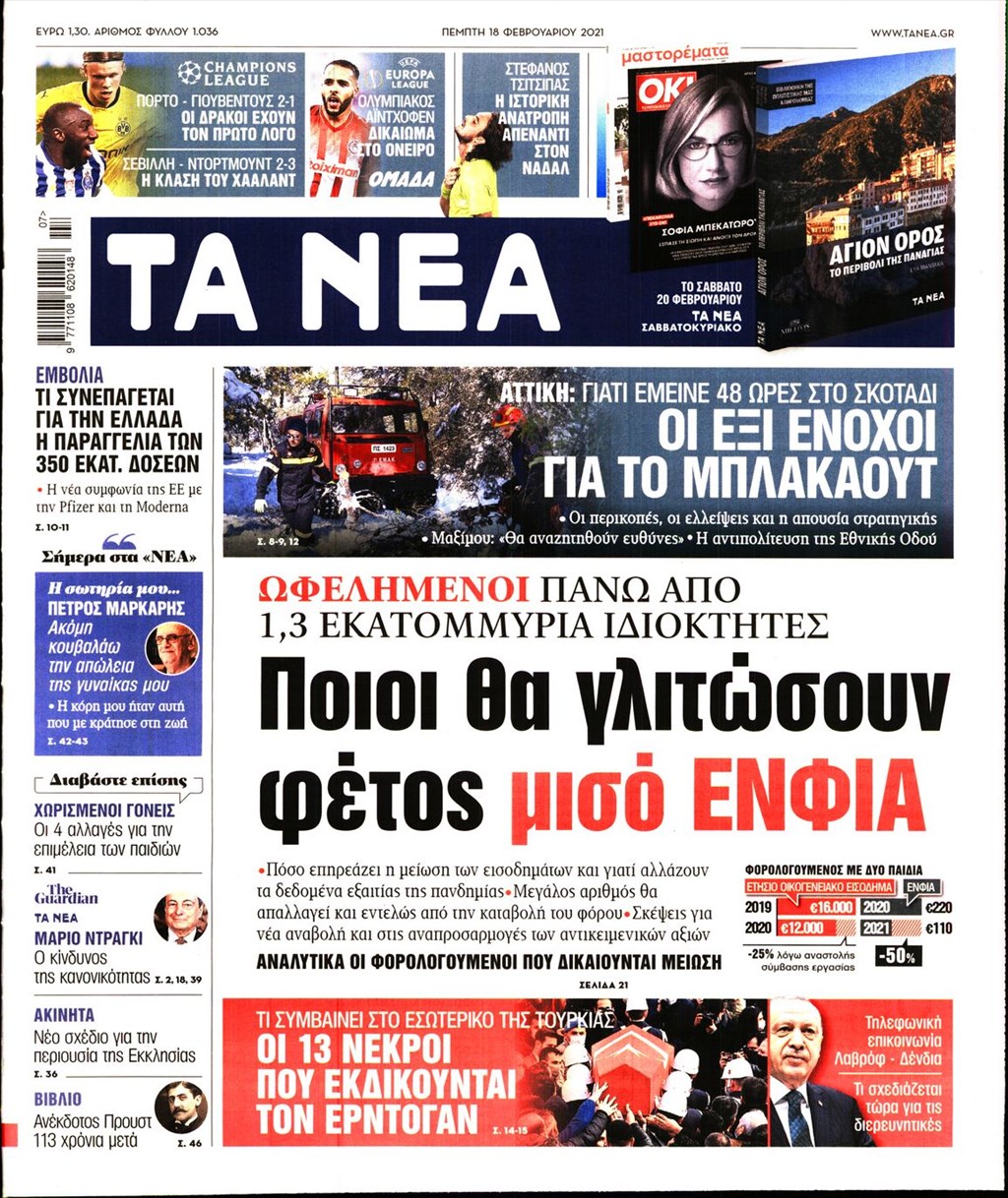 Τα πρωτοσέλιδα των εφημερίδων 18 Φεβρουαρίου