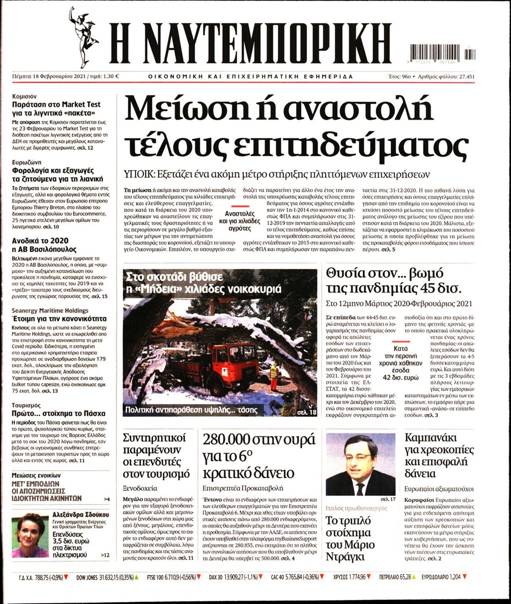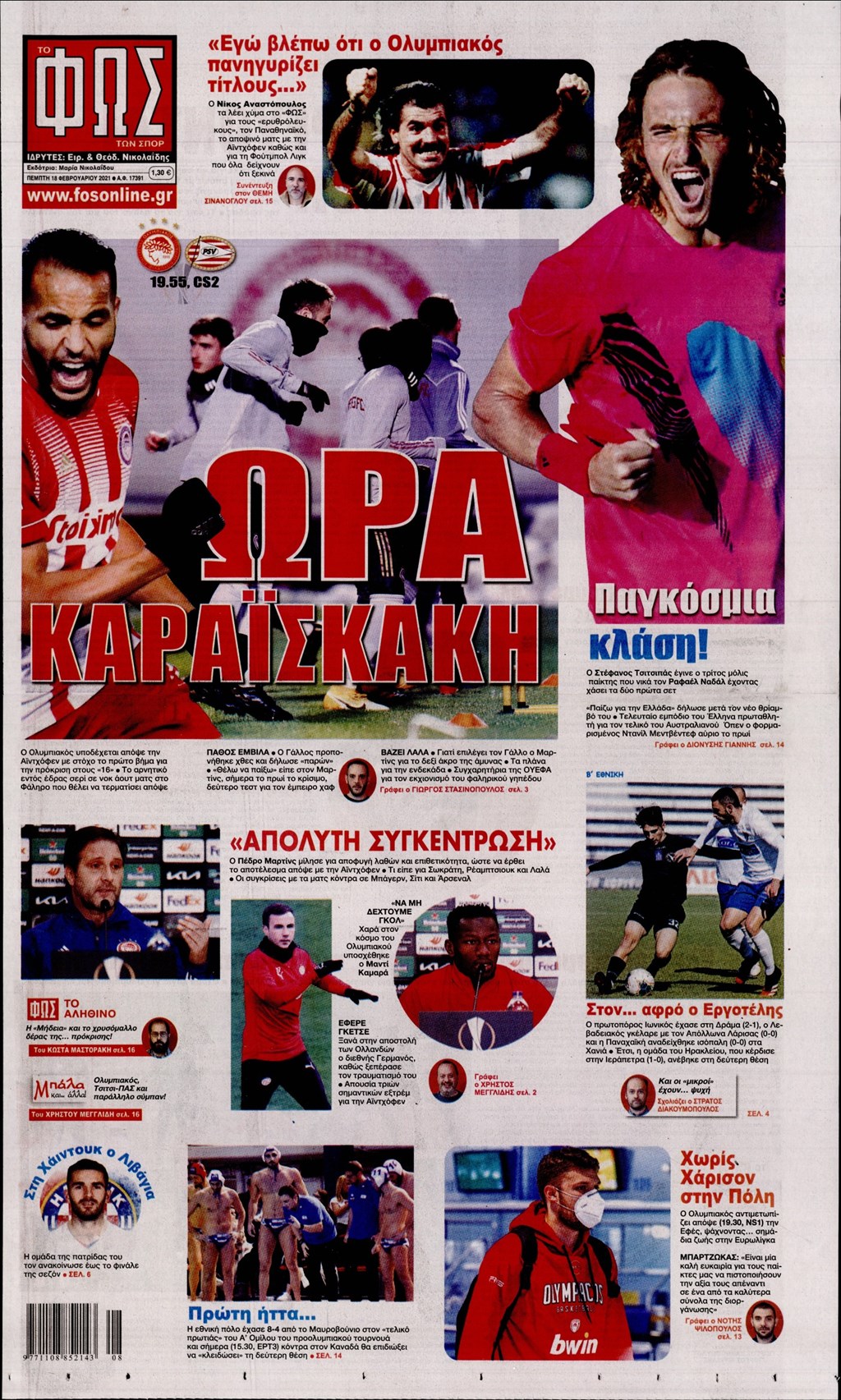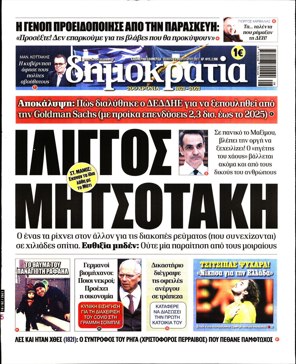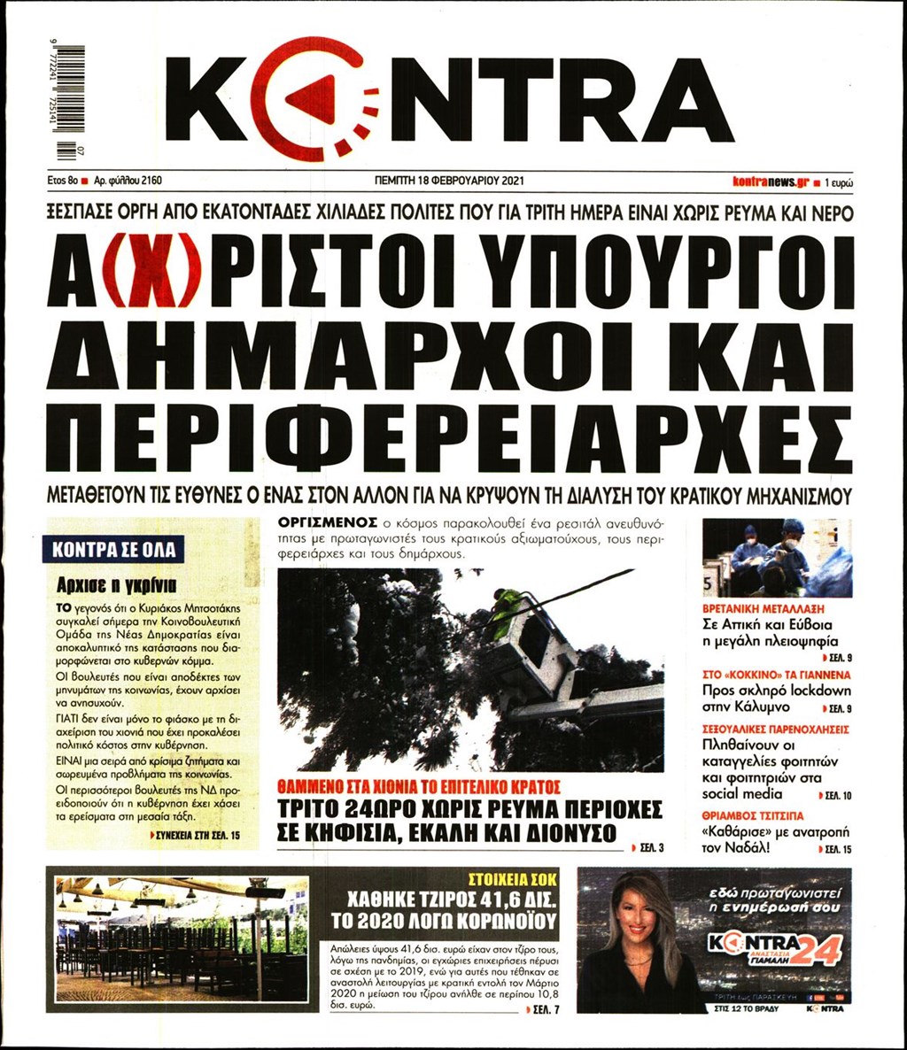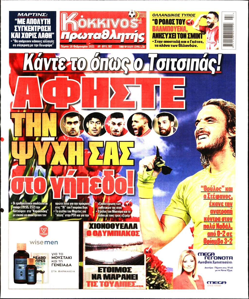 Τα πρωτοσέλιδα των εφημερίδων 18 Φεβρουαρίου