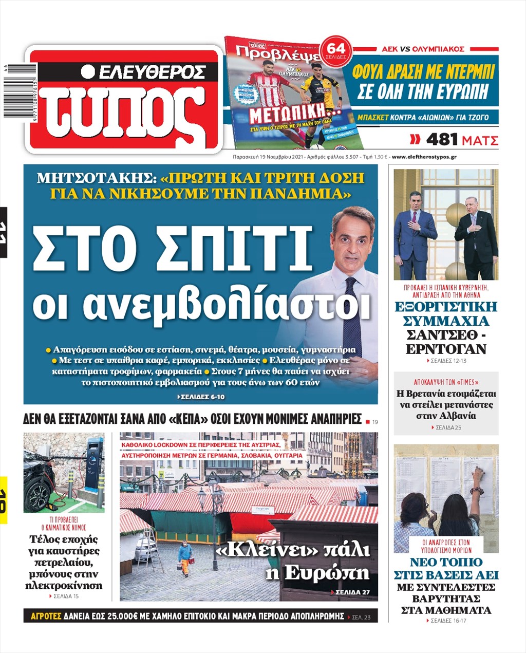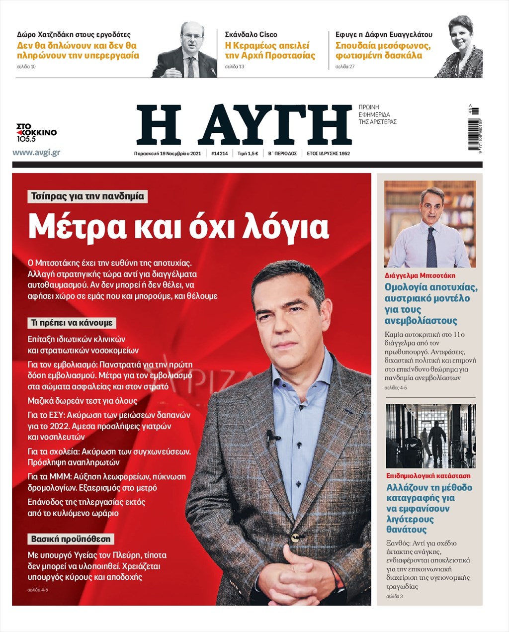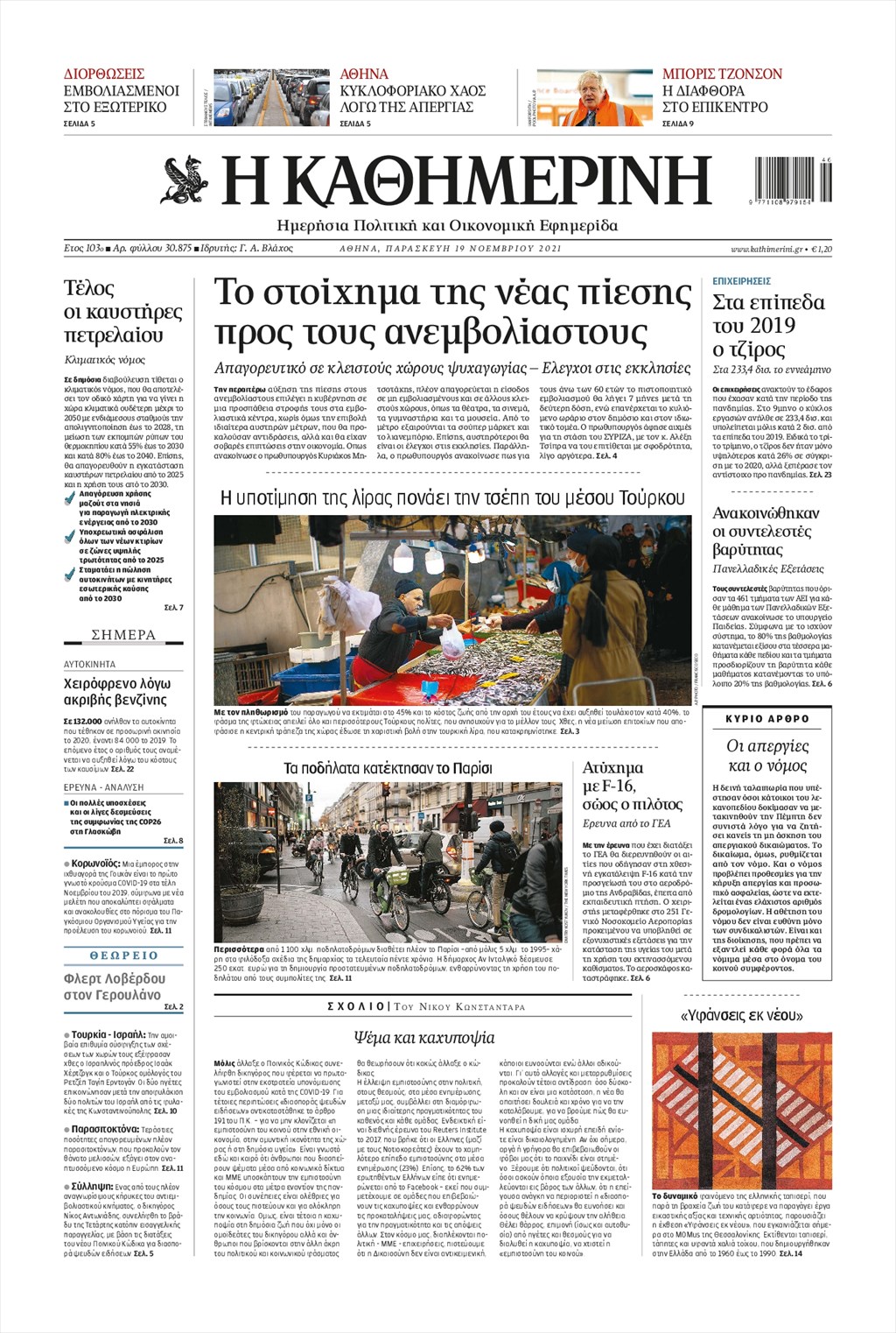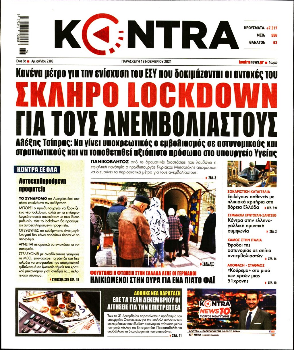Τα πρωτοσέλιδα των εφημερίδων 19 Νοεμβρίου