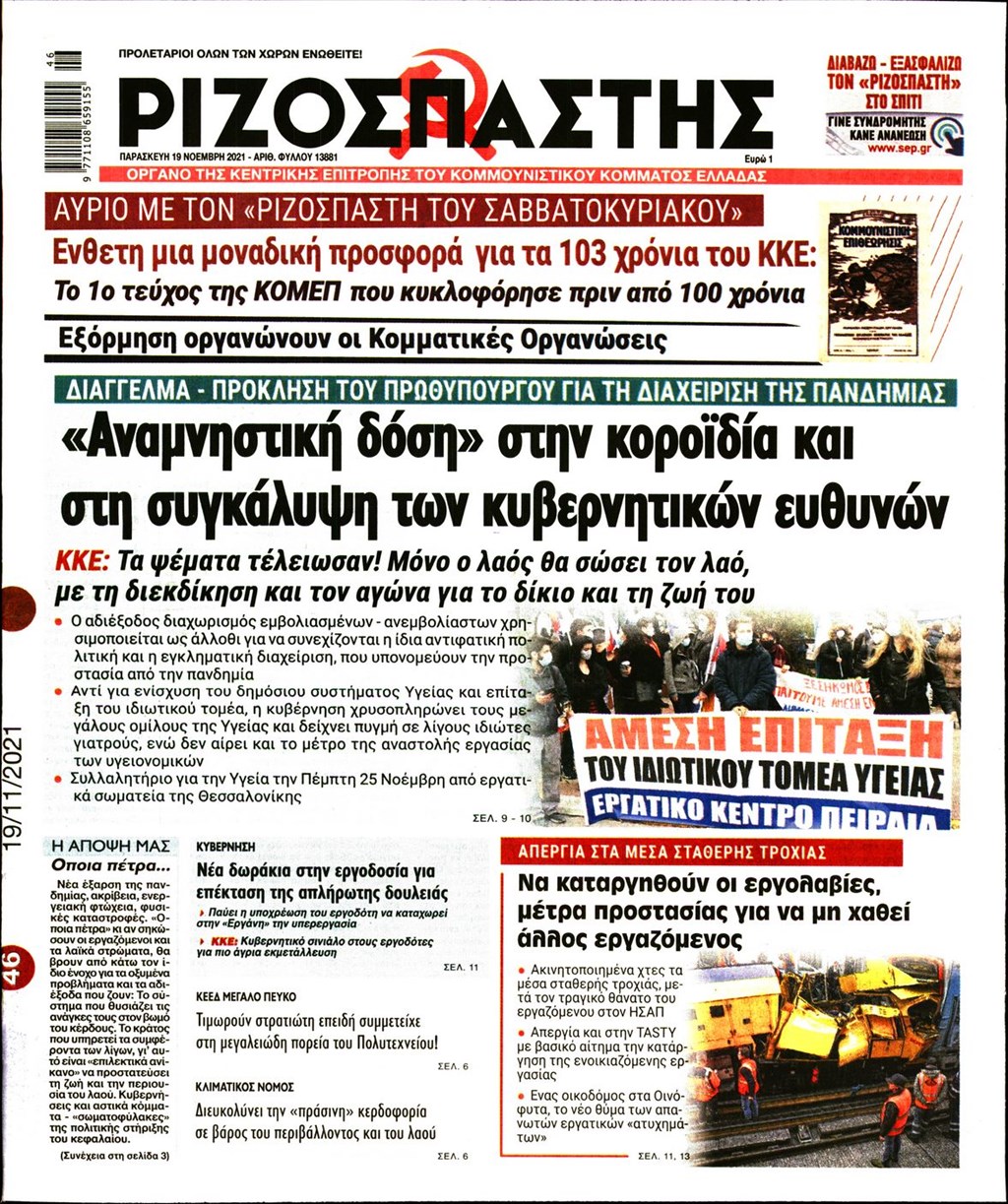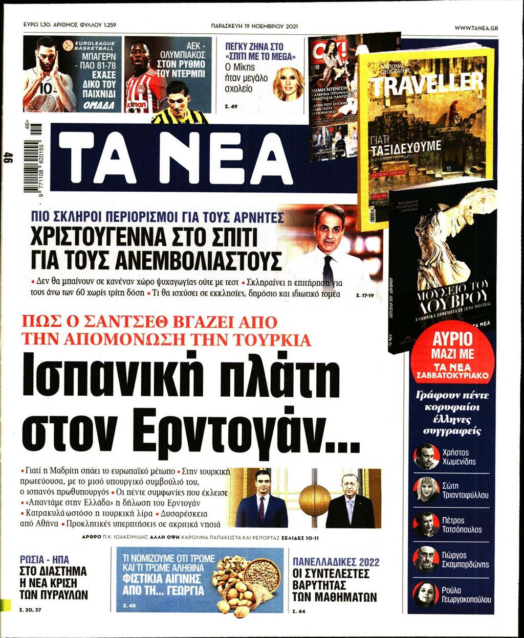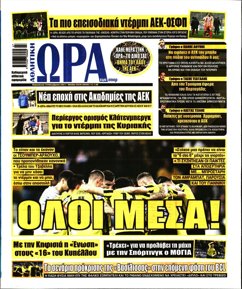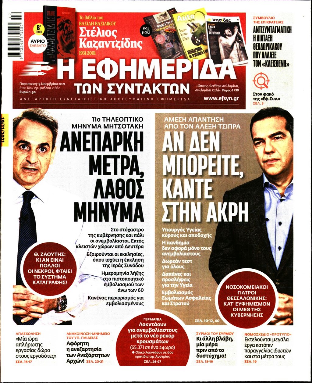 Τα πρωτοσέλιδα των εφημερίδων 19 Νοεμβρίου