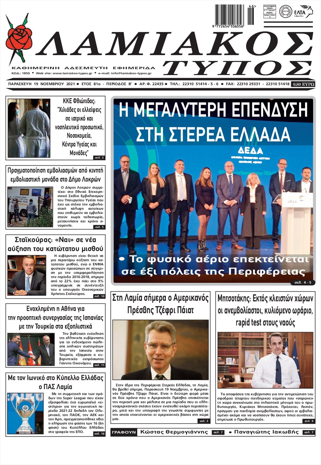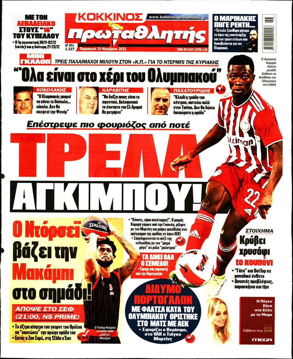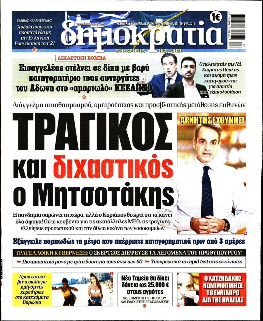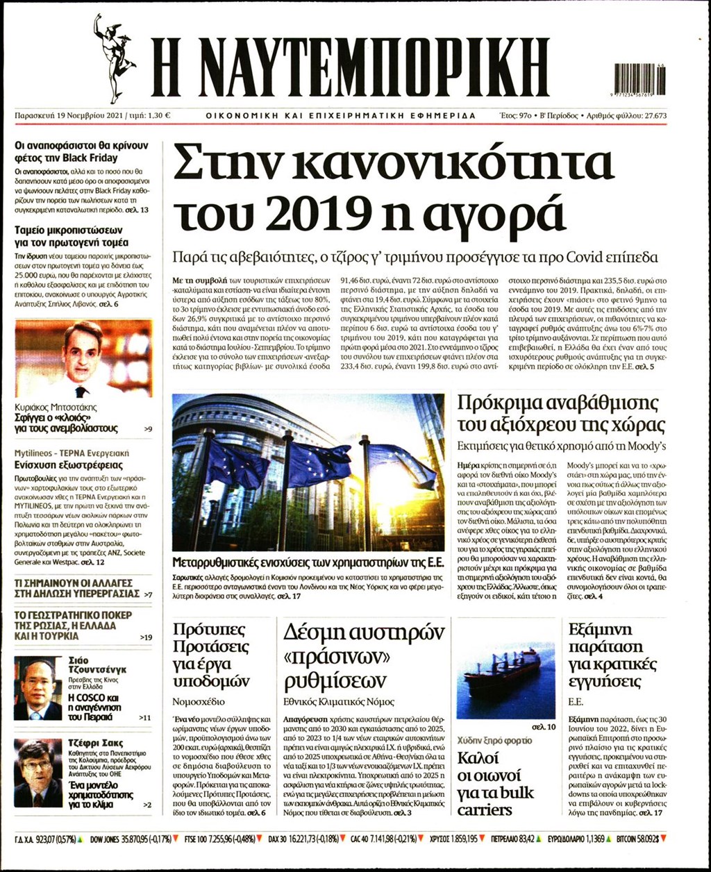 Τα πρωτοσέλιδα των εφημερίδων 19 Νοεμβρίου