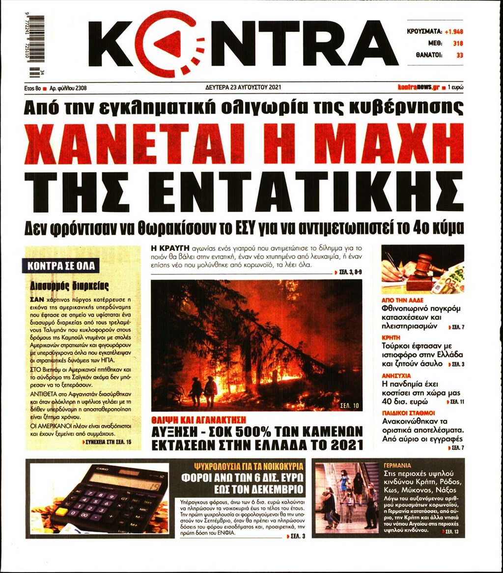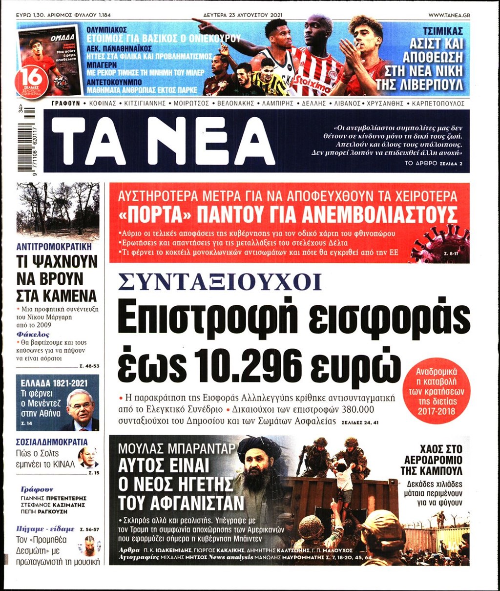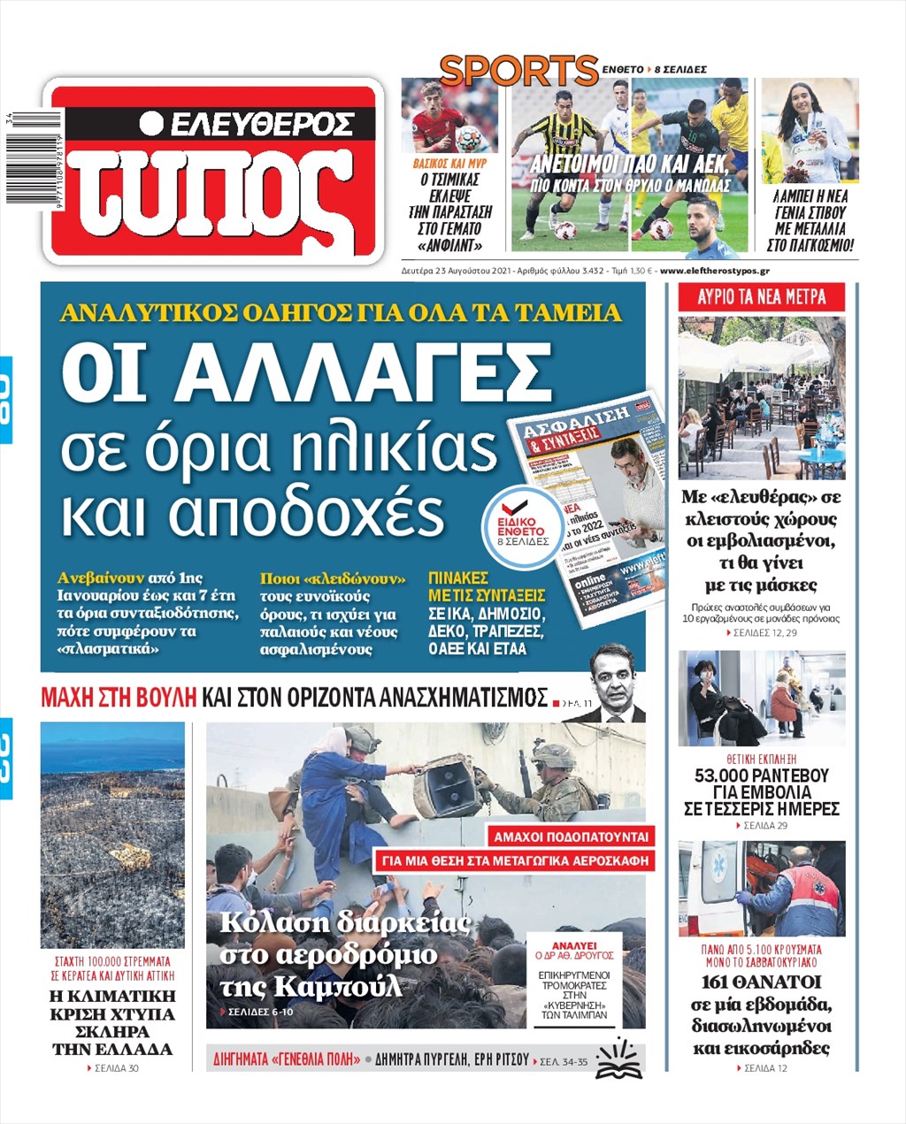 Τα πρωτοσέλιδα των εφημερίδων 23 Αυγούστου