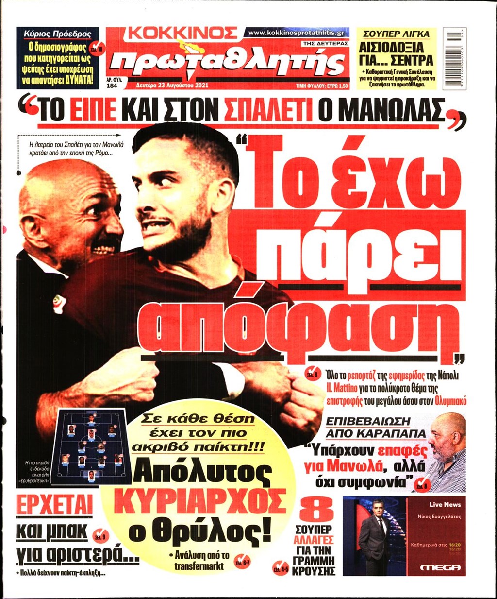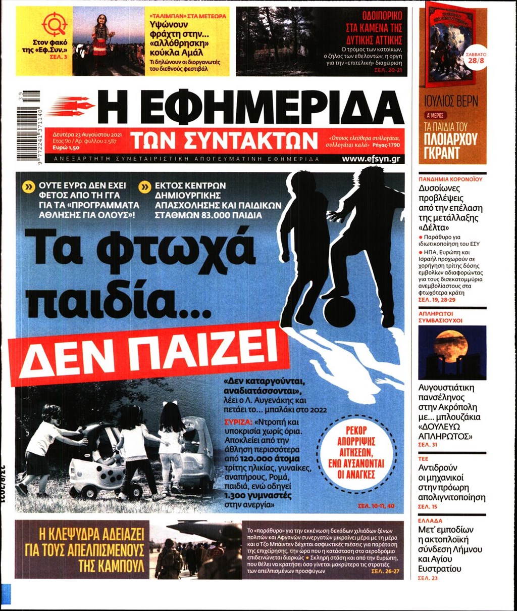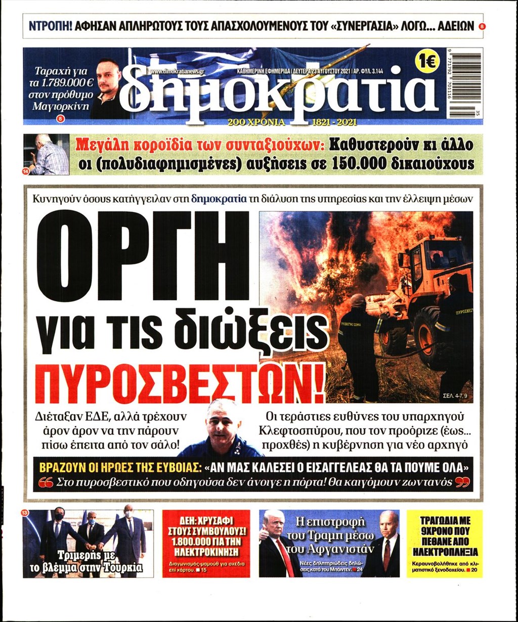 Τα πρωτοσέλιδα των εφημερίδων 23 Αυγούστου