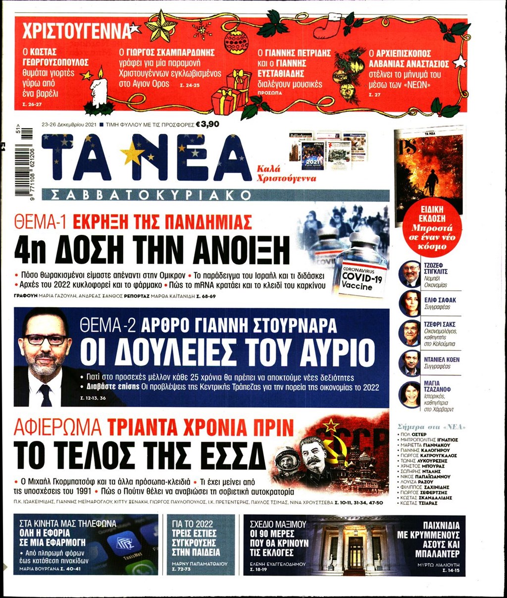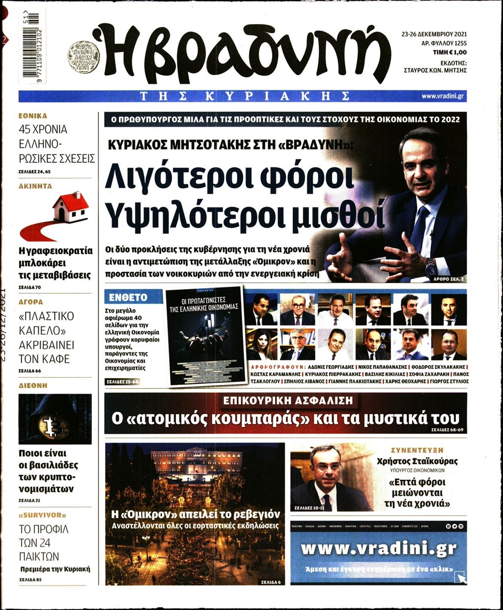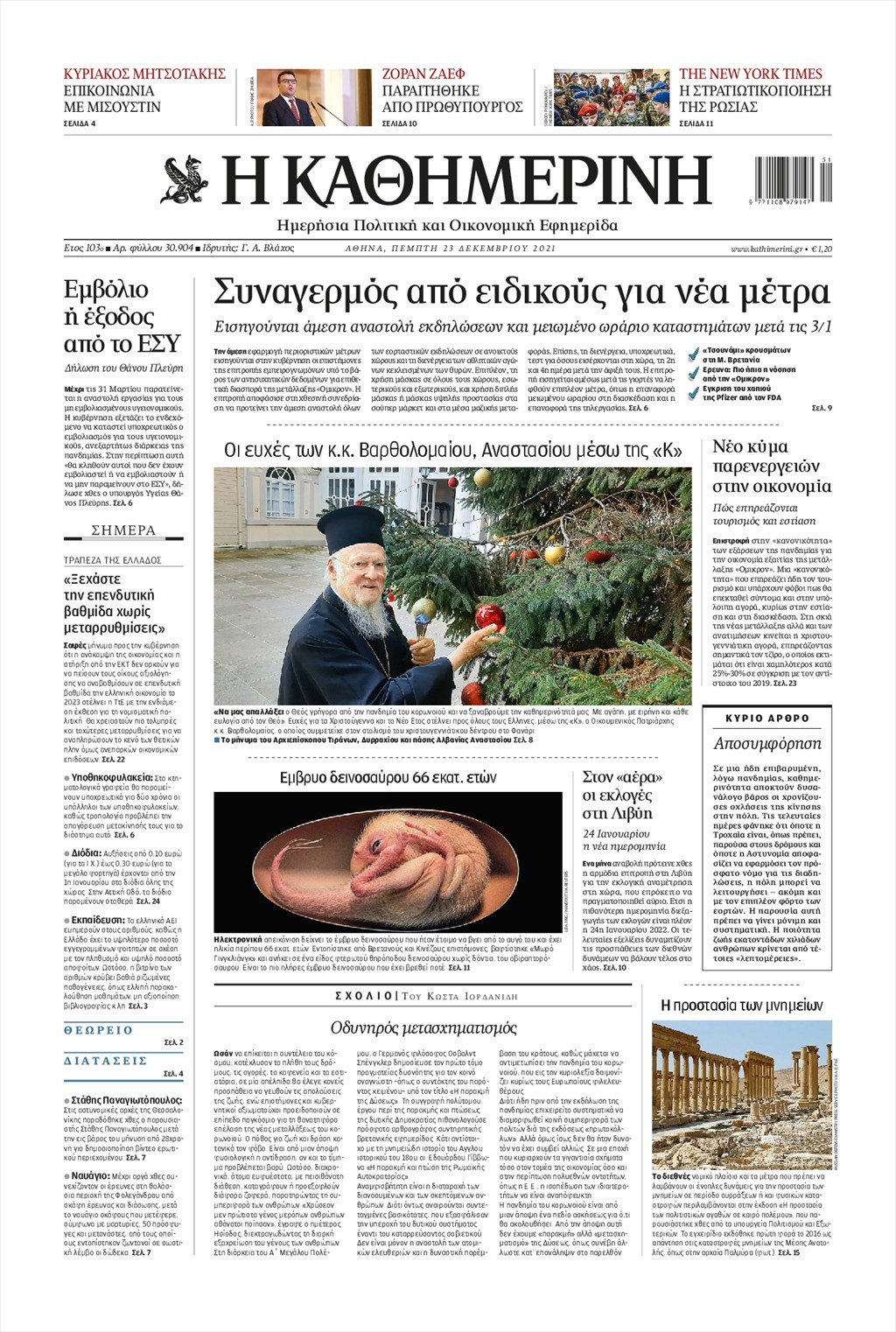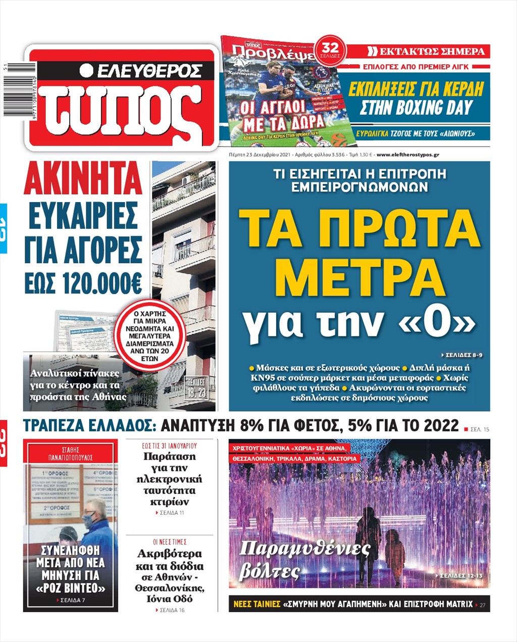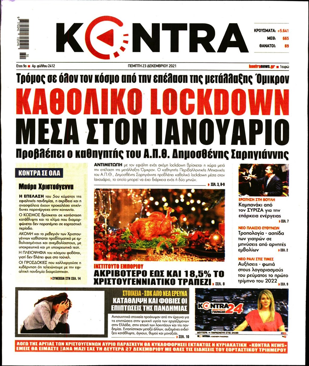 Τα πρωτοσέλιδα των εφημερίδων 23 Δεκεμβρίου