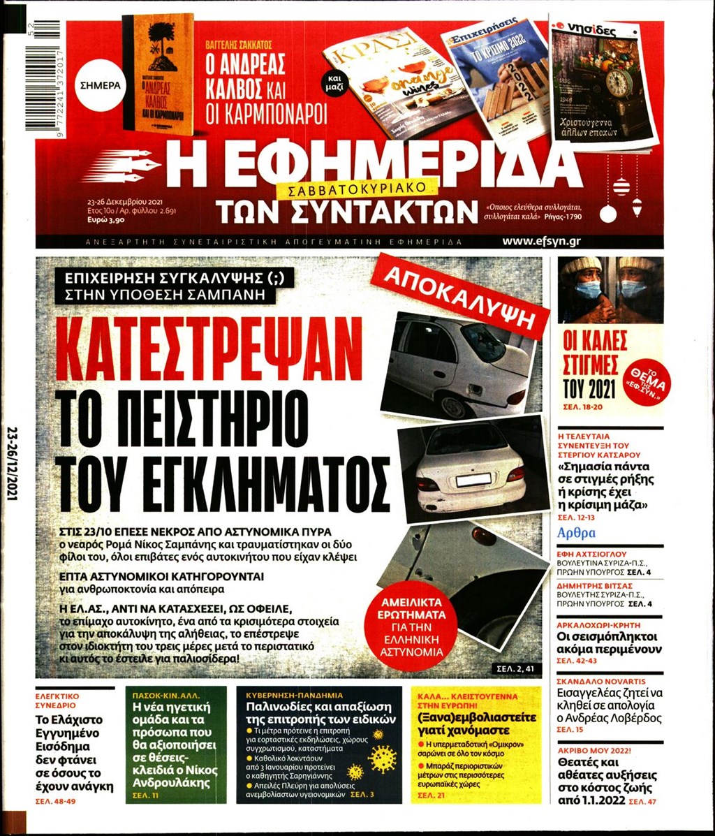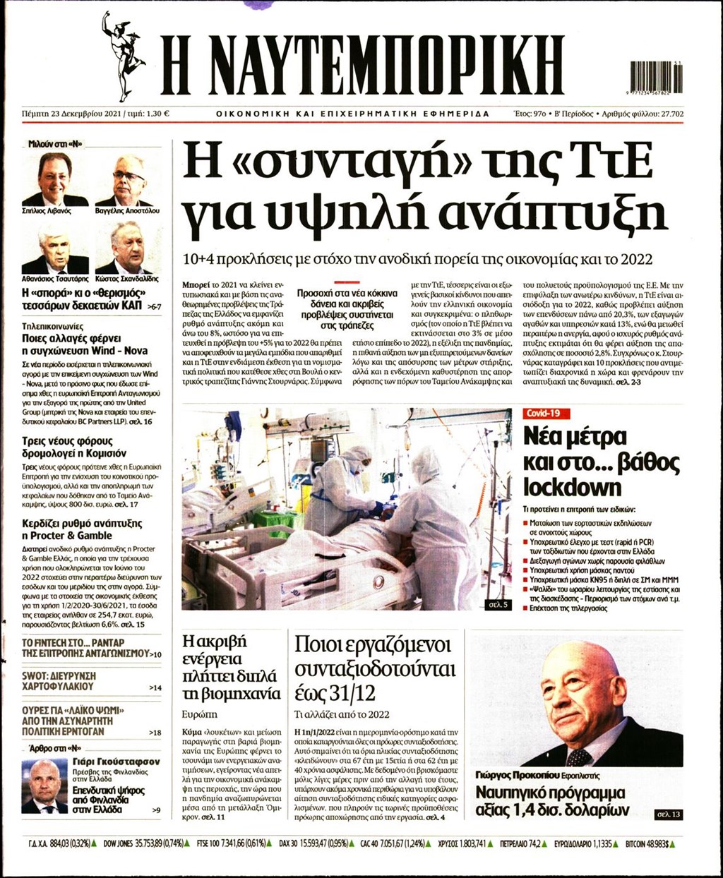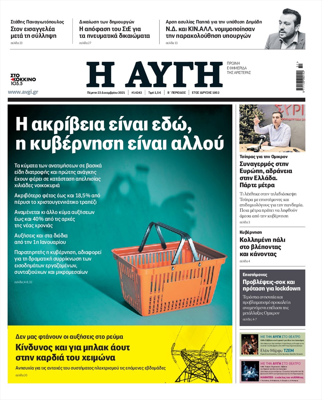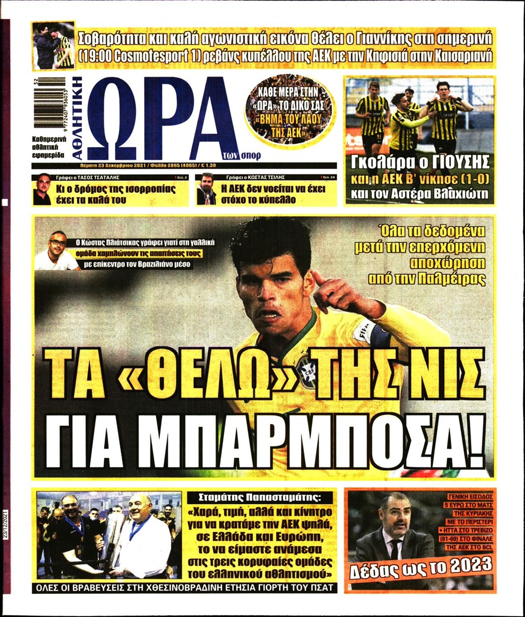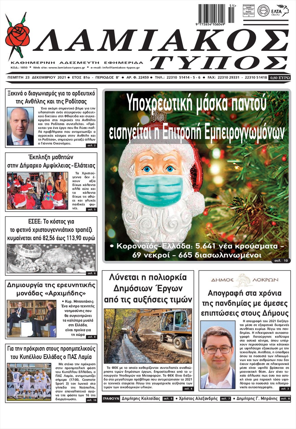 Τα πρωτοσέλιδα των εφημερίδων 23 Δεκεμβρίου