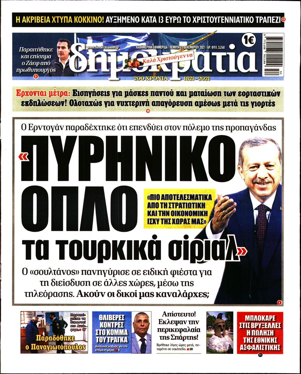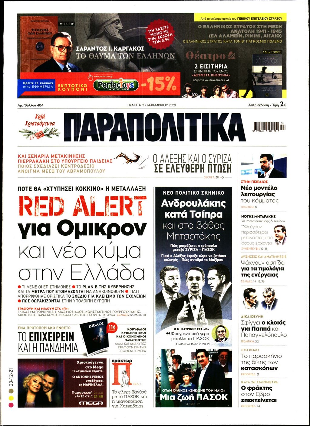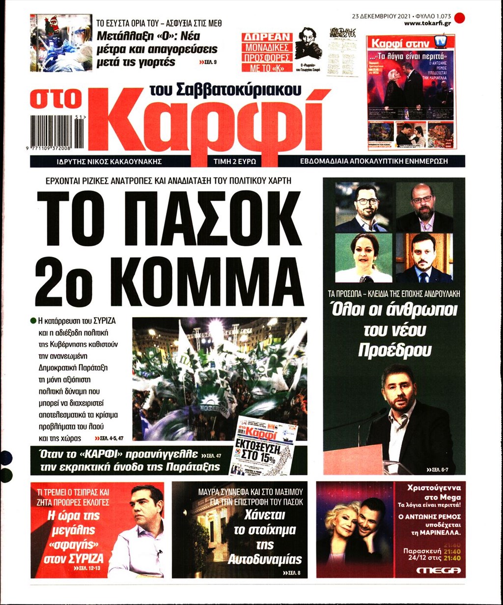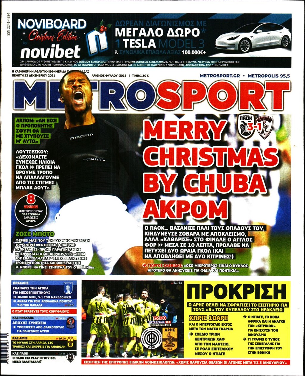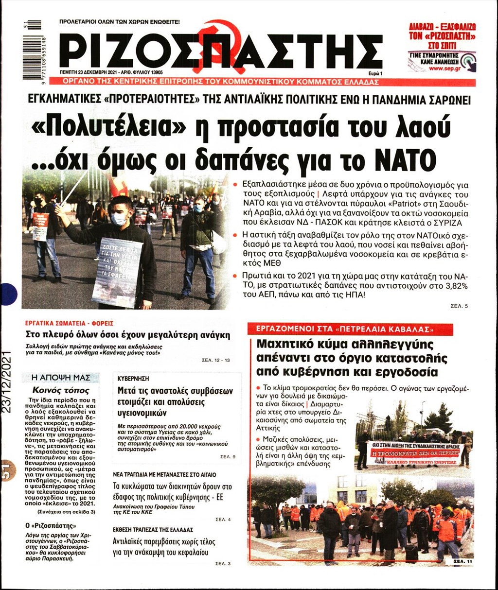 Τα πρωτοσέλιδα των εφημερίδων 23 Δεκεμβρίου