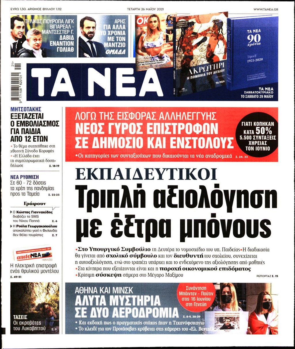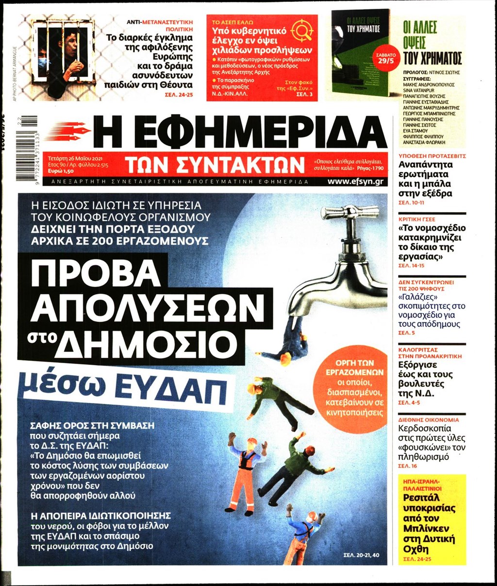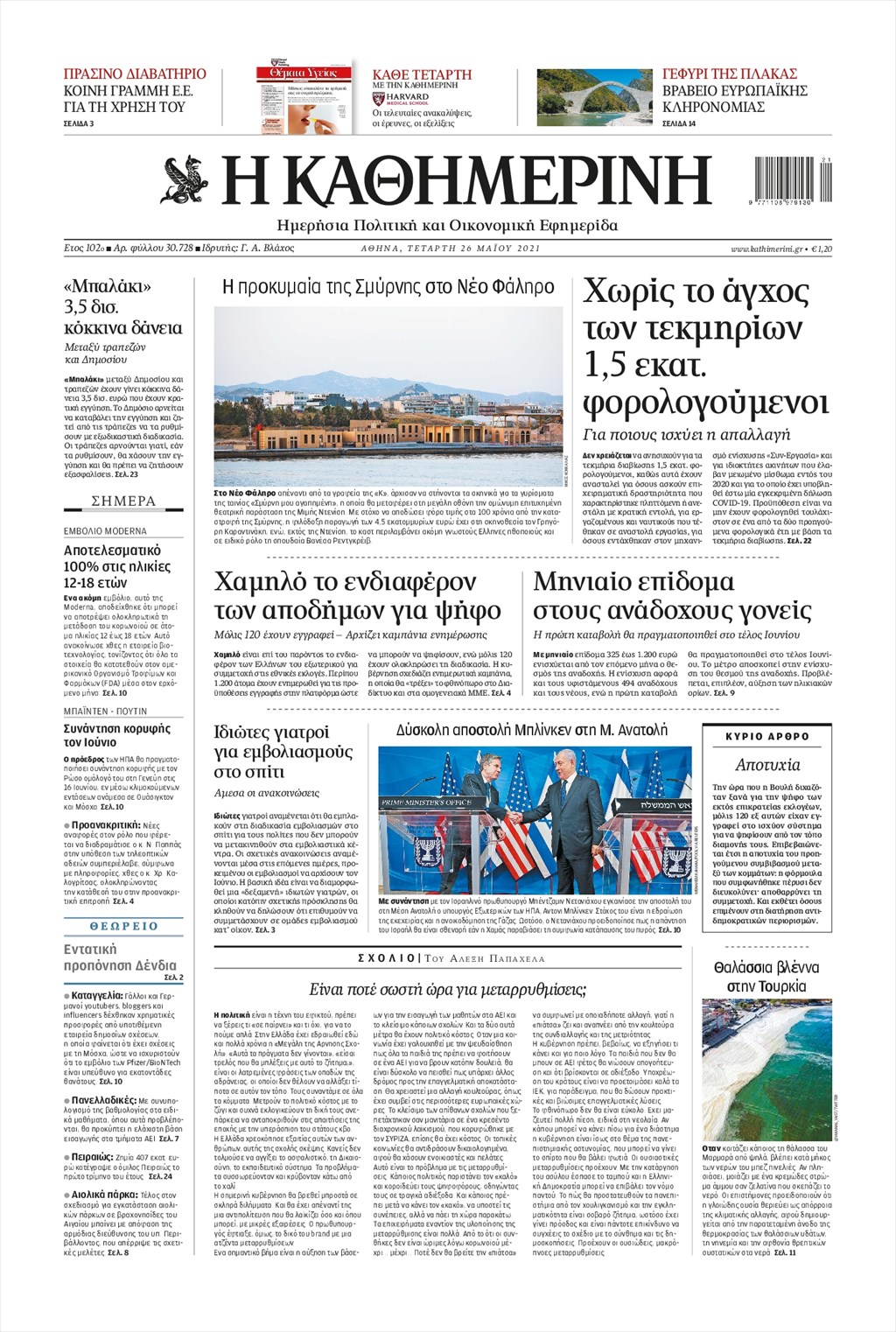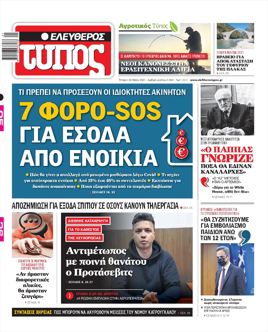 Τα πρωτοσέλιδα των εφημερίδων 26 Μαΐου
